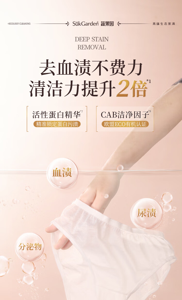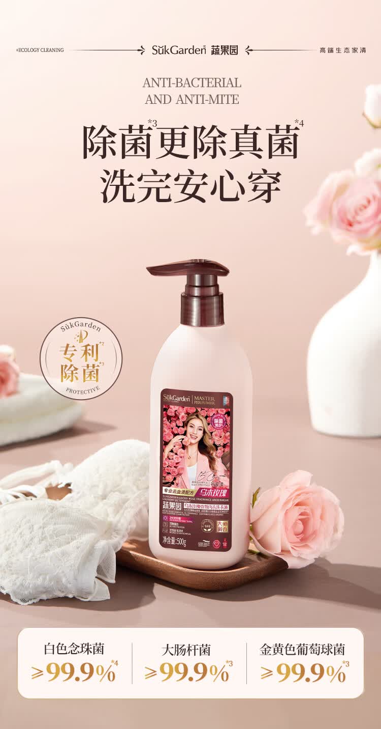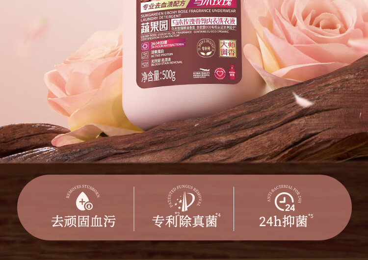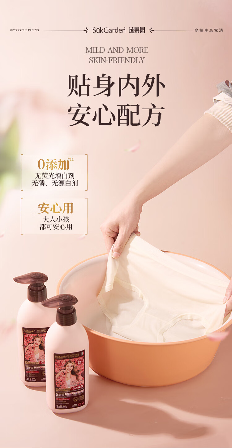 蔬果园内衣裤洗衣液500g 除菌99%内衣洗衣液内裤去血渍黄渍清洗剂