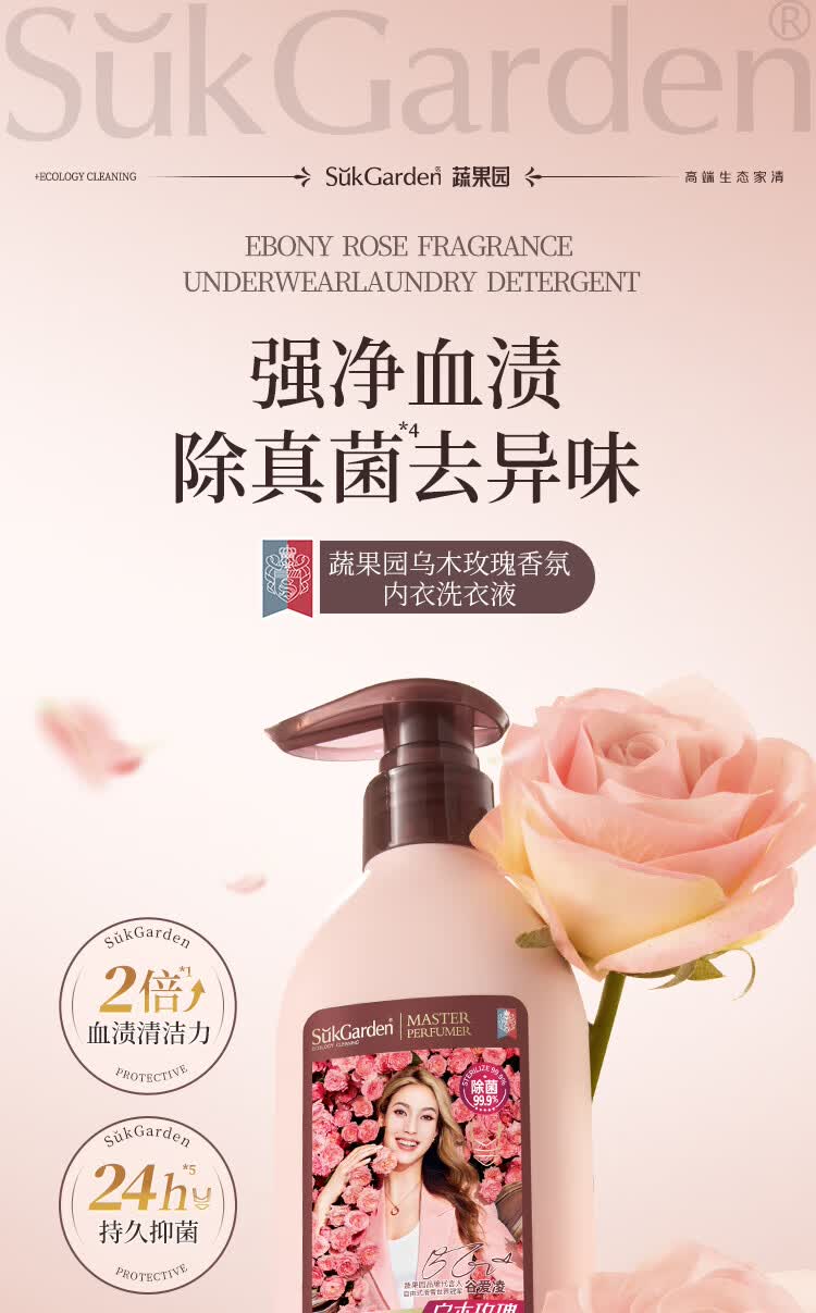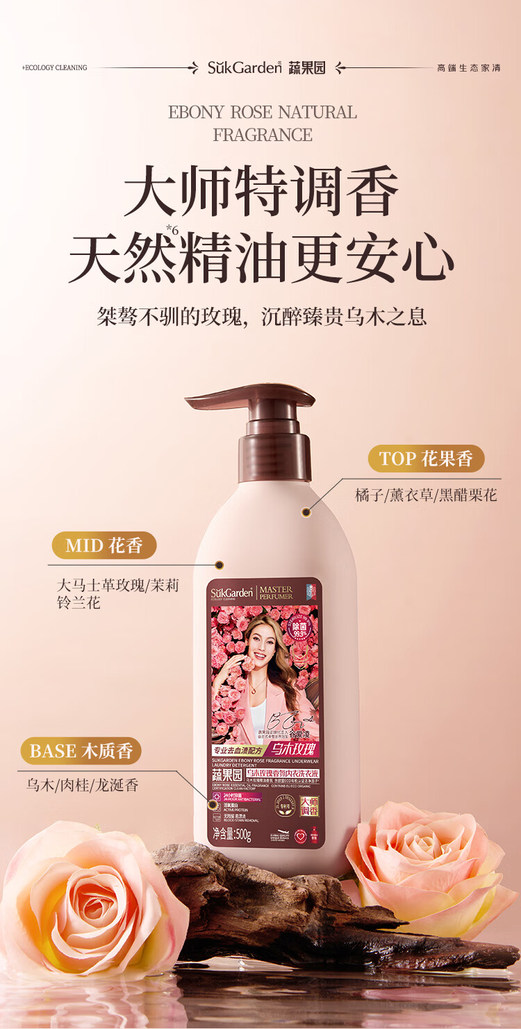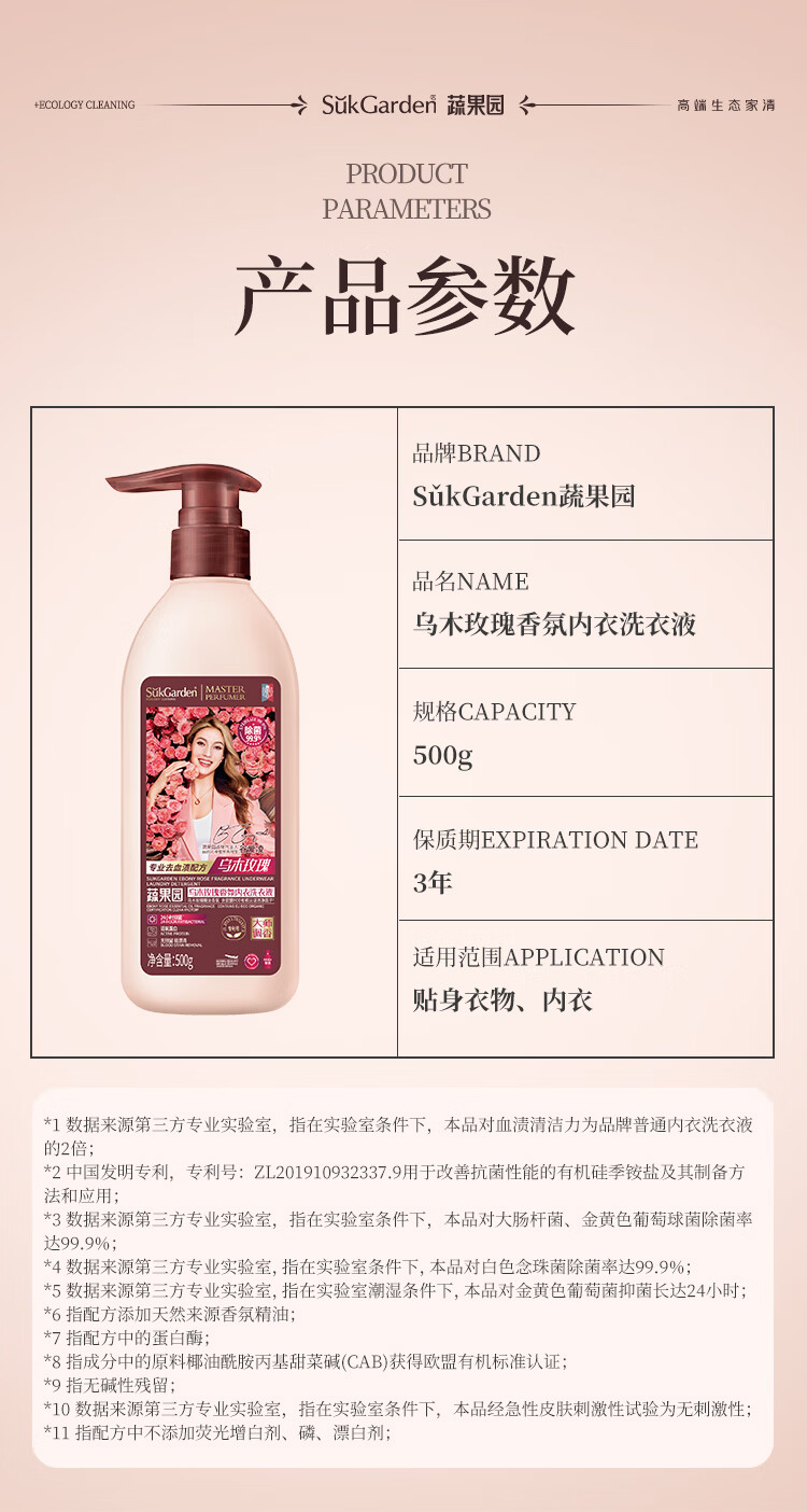 蔬果园内衣裤洗衣液500g 除菌99%内衣洗衣液内裤去血渍黄渍清洗剂