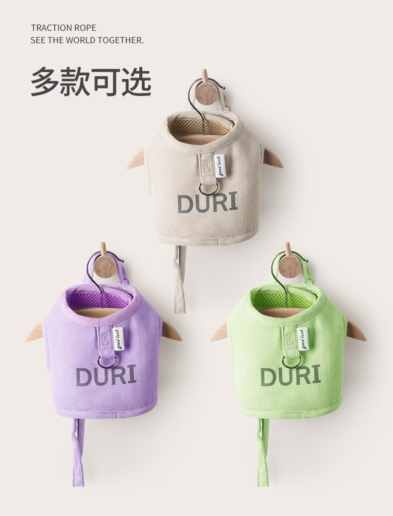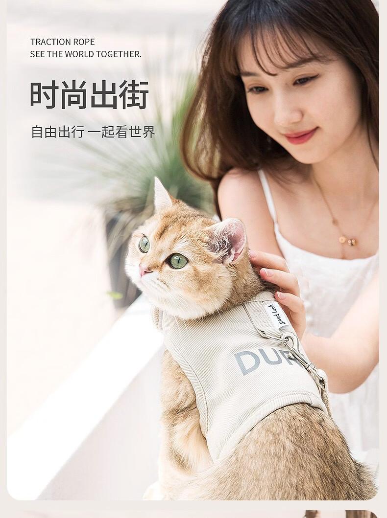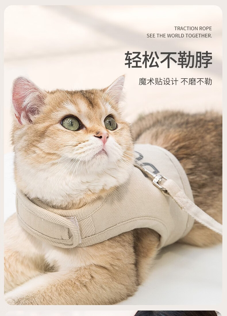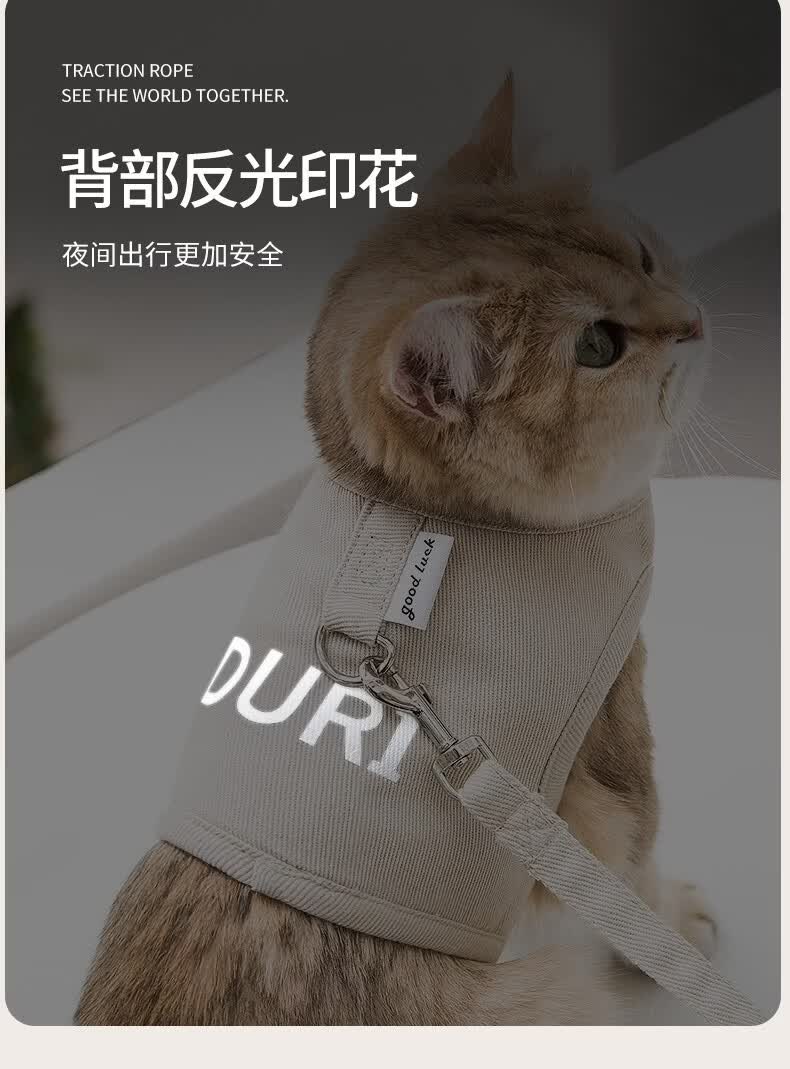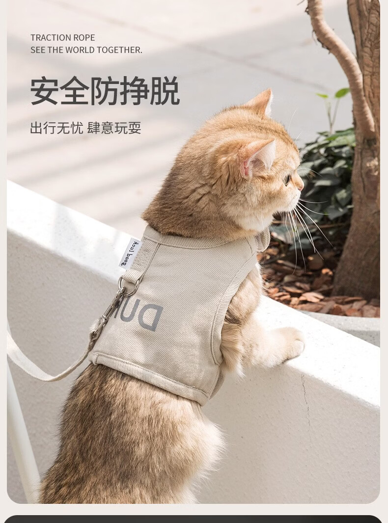 嬉皮狗猫咪防挣脱猫背带四季通用透气宠物胸背带遛猫绳遛狗绳外出牵引绳 松霜绿 S(建议5斤内)