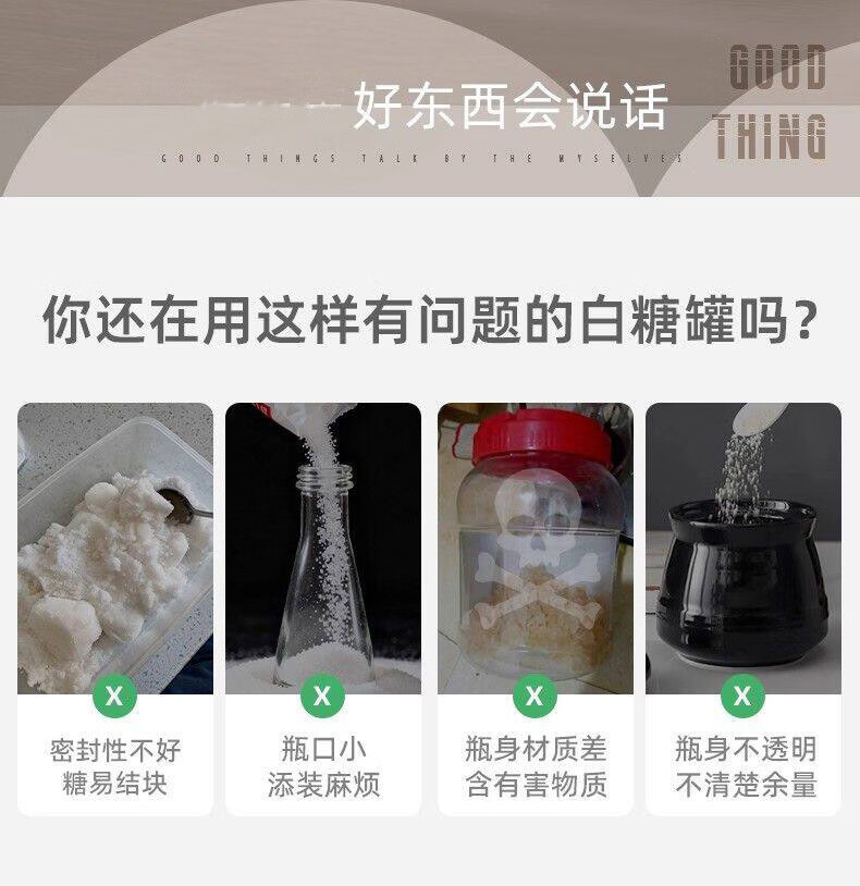洋臣白糖分装瓶密封罐塑料密封储罐子厨房家用红糖白砂糖食级防潮纳罐 白糖密封罐450ml【2个】