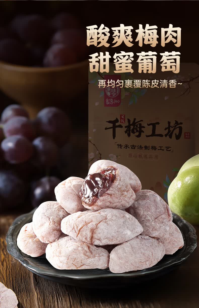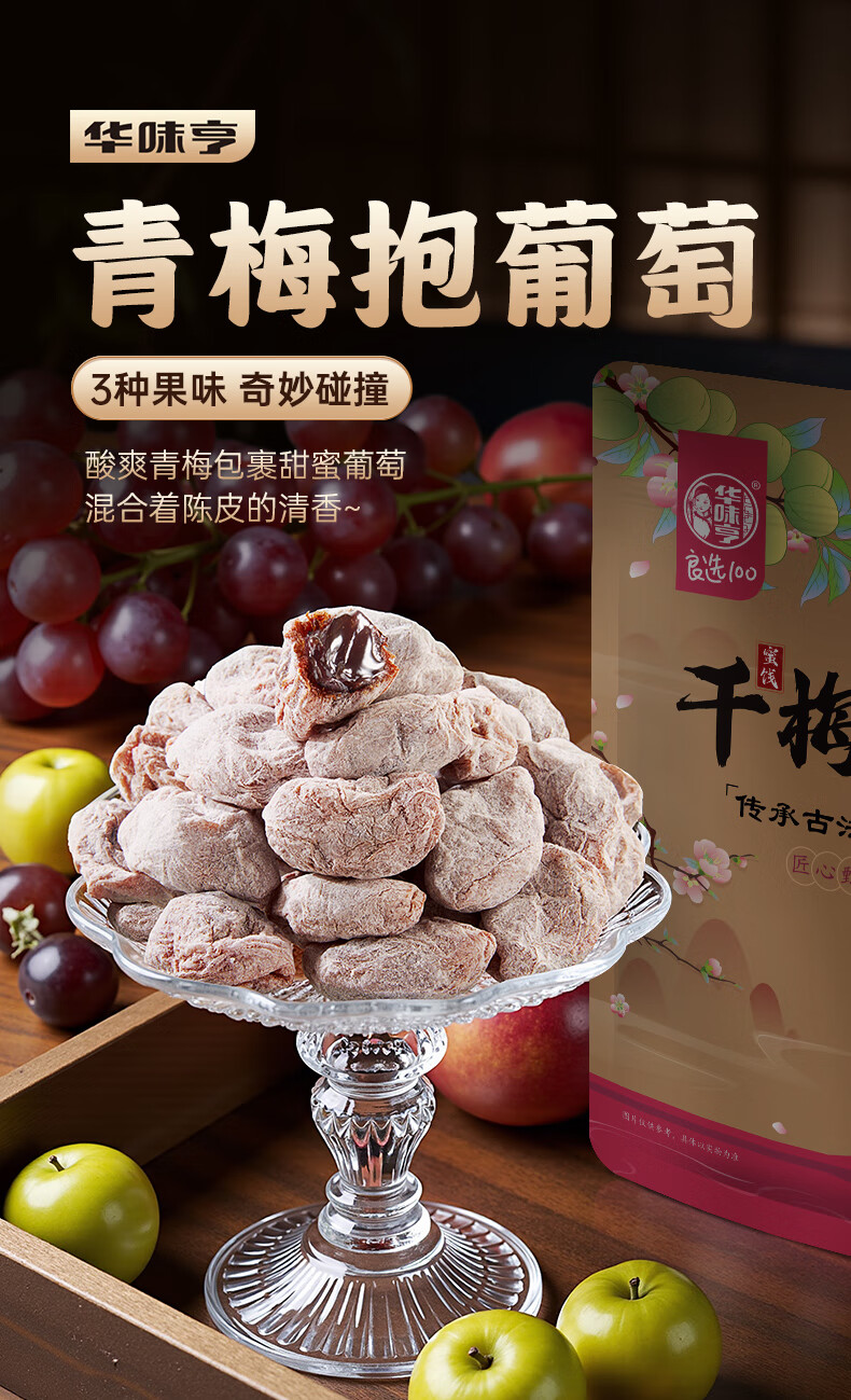 华味亨陈皮葡萄梅子100g话梅干梅子干爆浆夹心无核梅饼蜜饯休闲零食