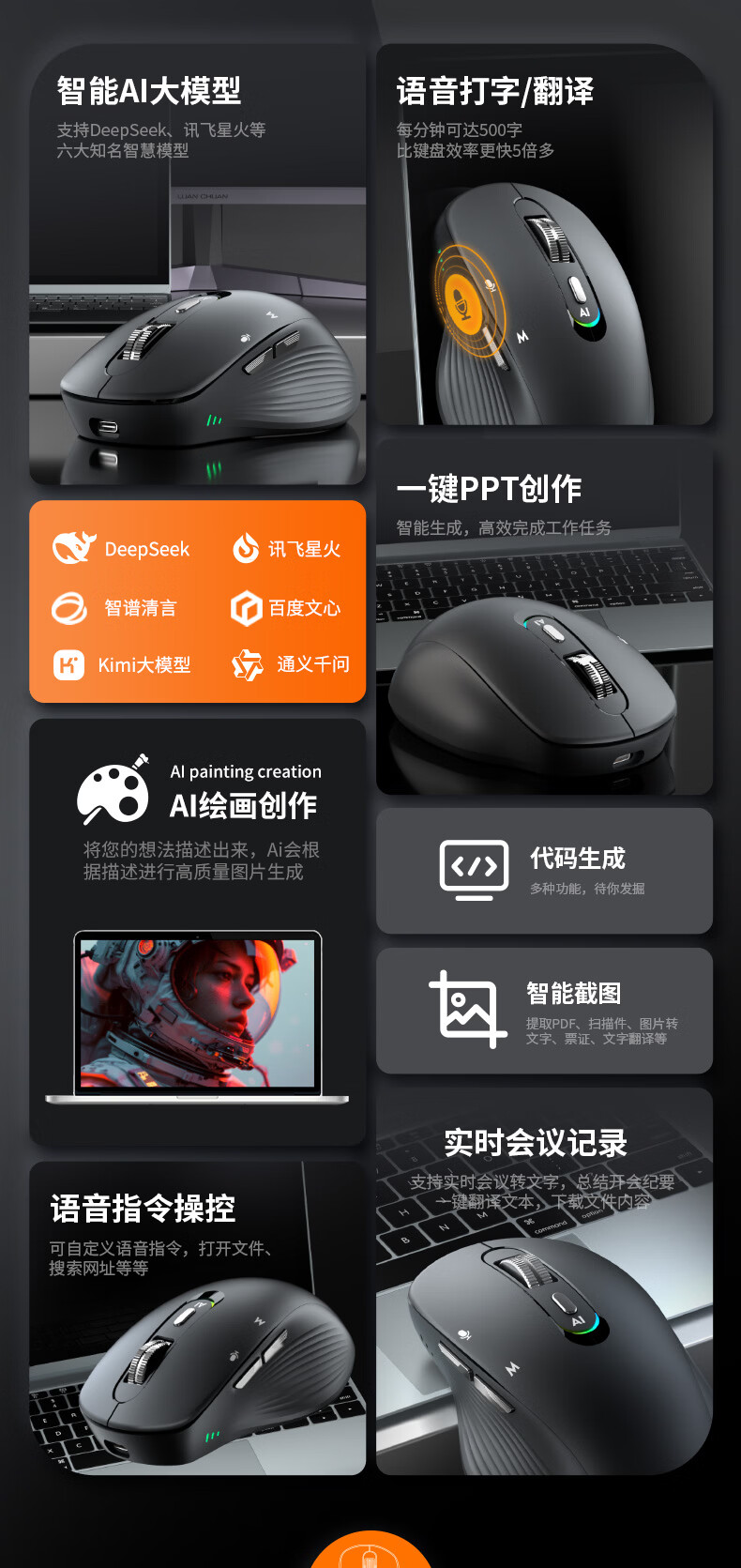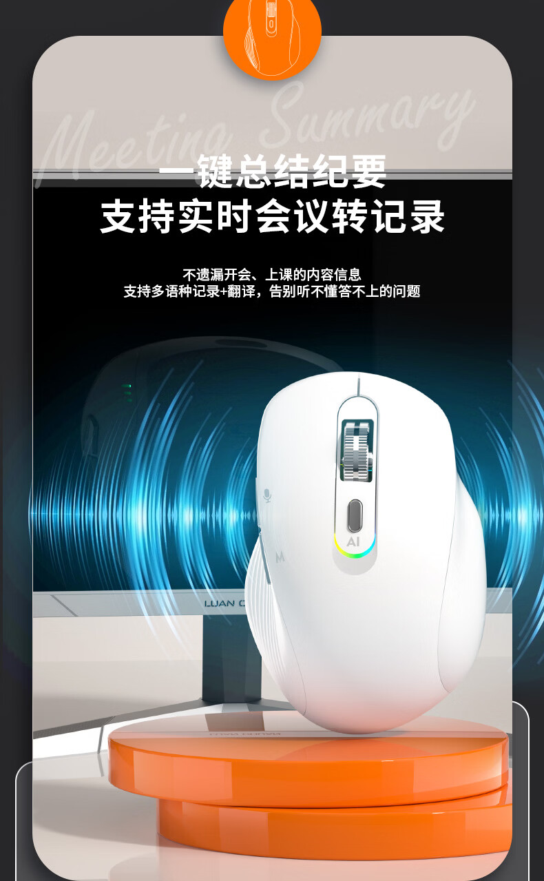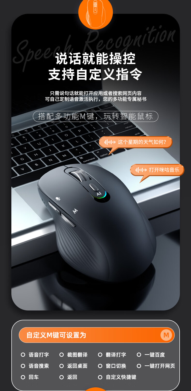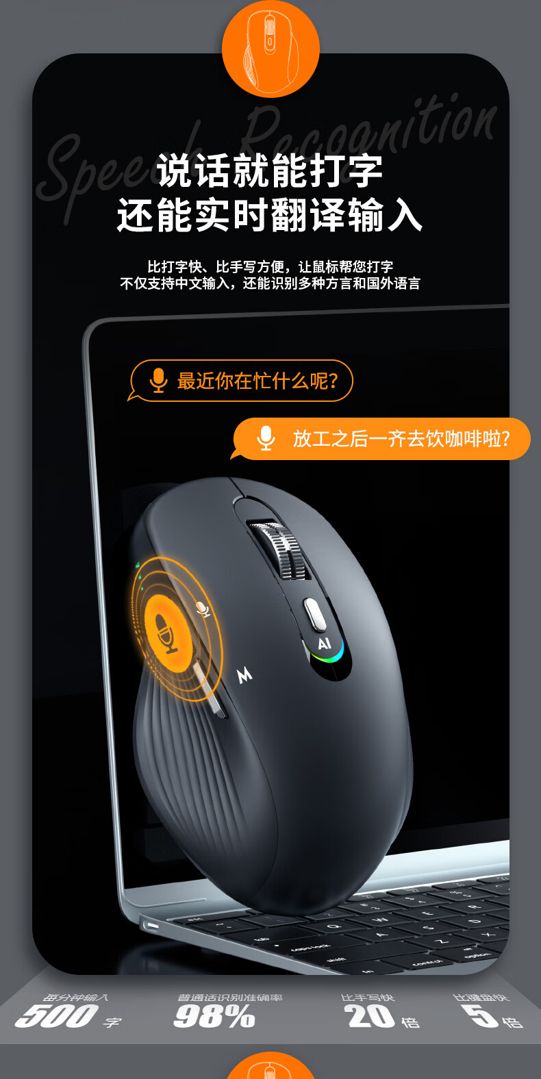 剑圣一族智能无线AI鼠标 语音鼠标无线蓝牙双模 可充电轻音人体工学 AI智能声控打字翻译识别 办公鼠标 高阶智能AI鼠标