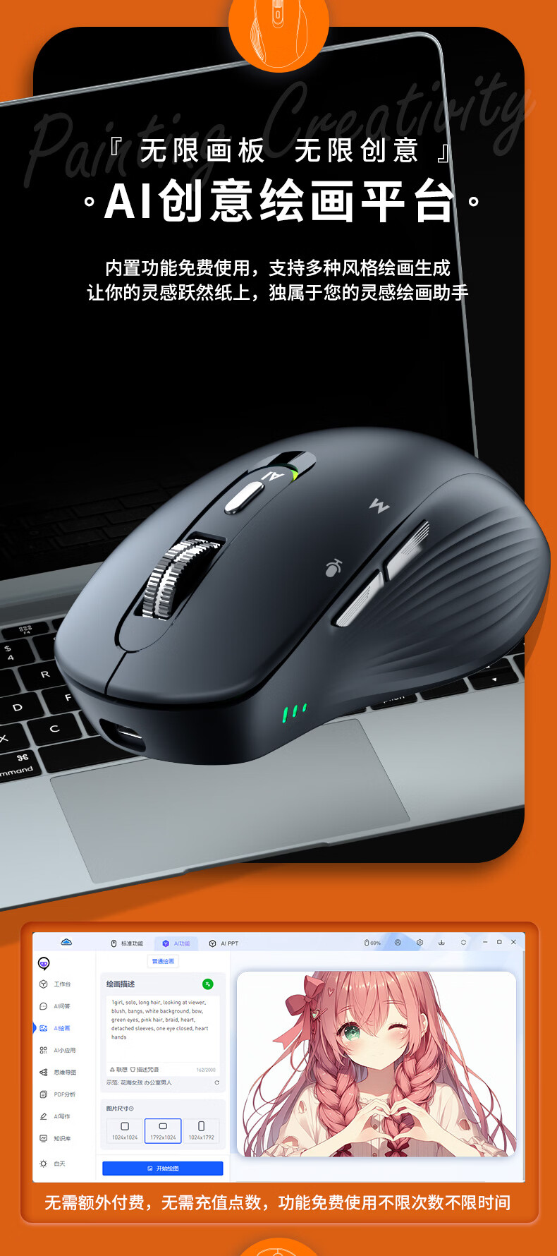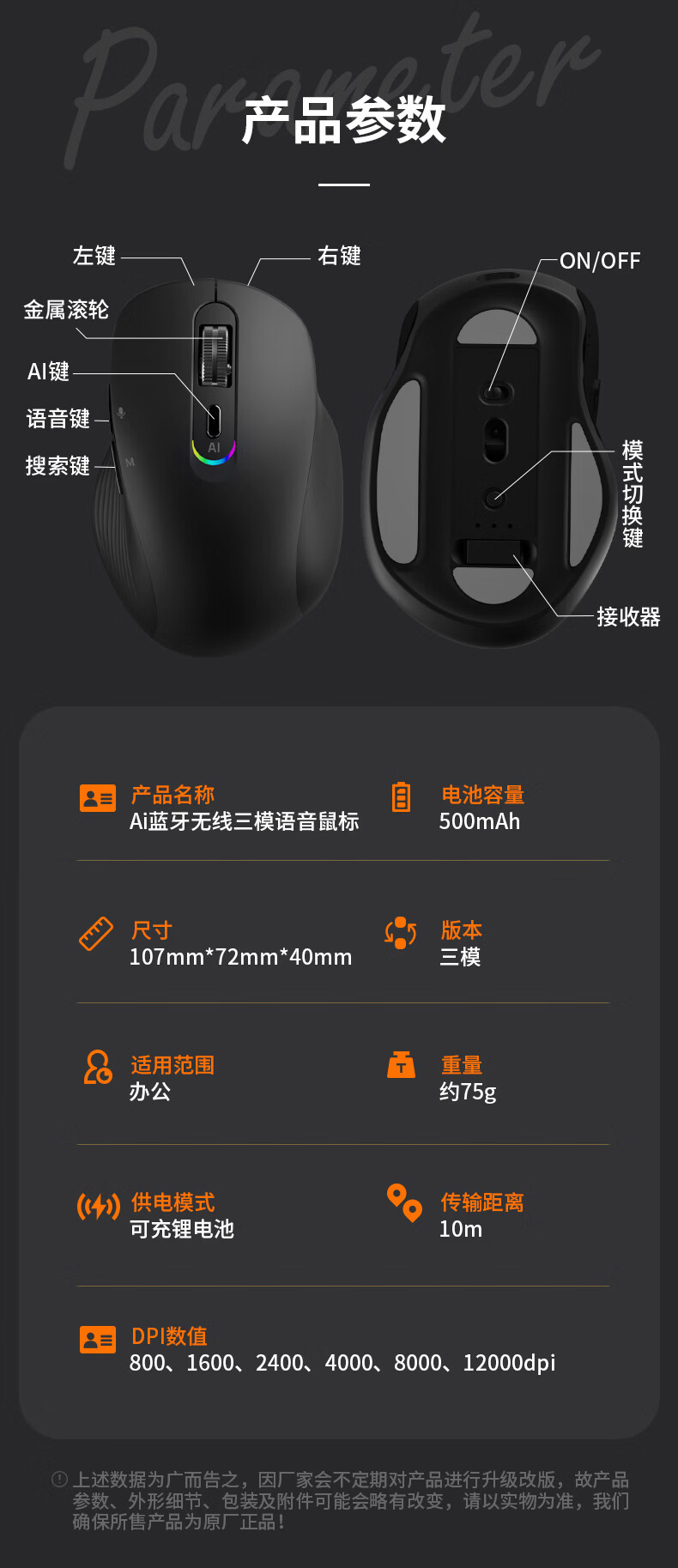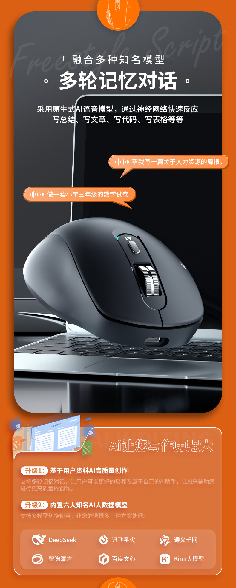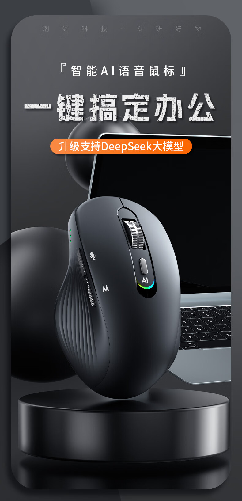 剑圣一族智能无线AI鼠标 语音鼠标无线蓝牙双模 可充电轻音人体工学 AI智能声控打字翻译识别 办公鼠标 高阶智能AI鼠标