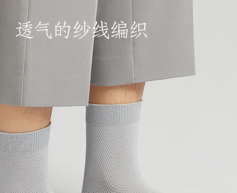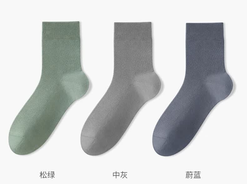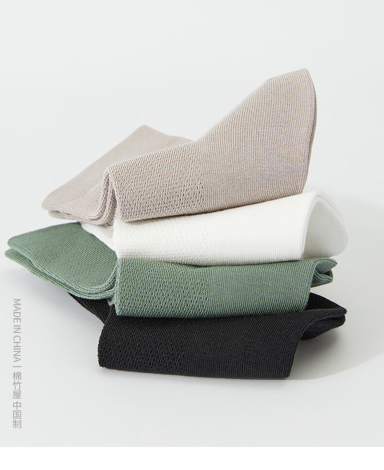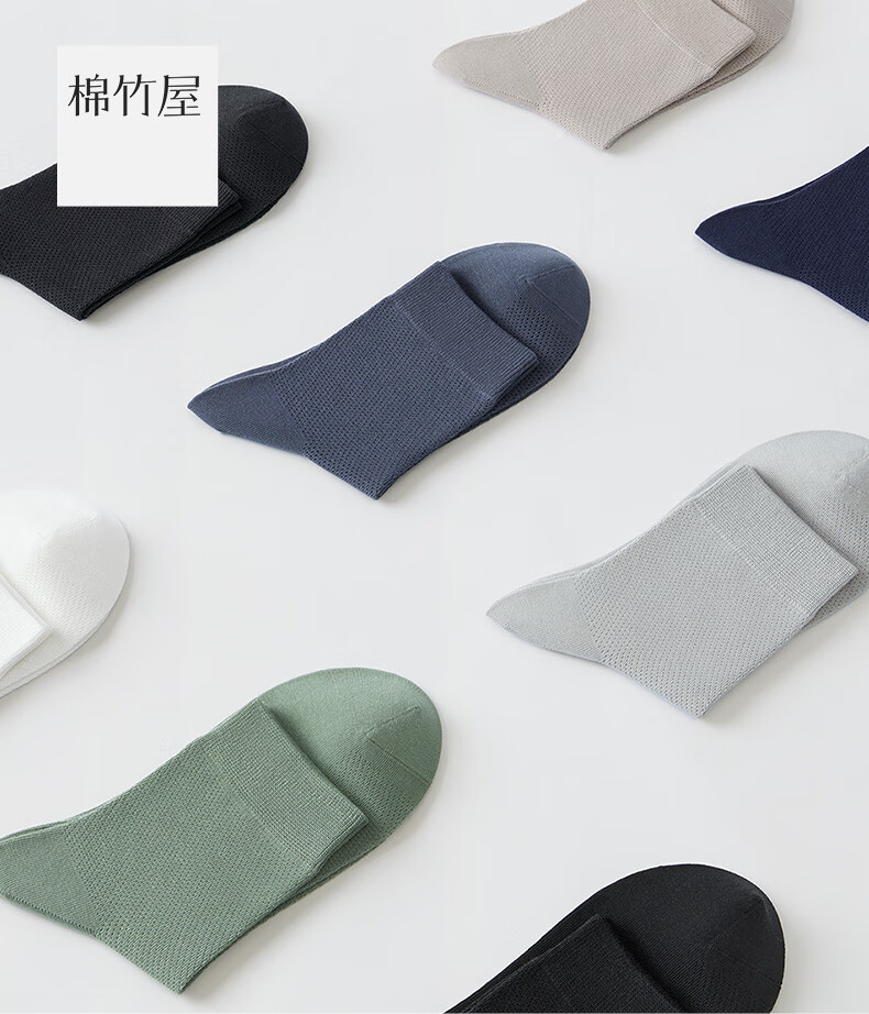 棉竹屋袜子男夏季薄款中筒袜棉质纱线防臭7a抗菌网眼透气男士黑色商务袜 组合九(全黑色组) 5双 均码 39-44