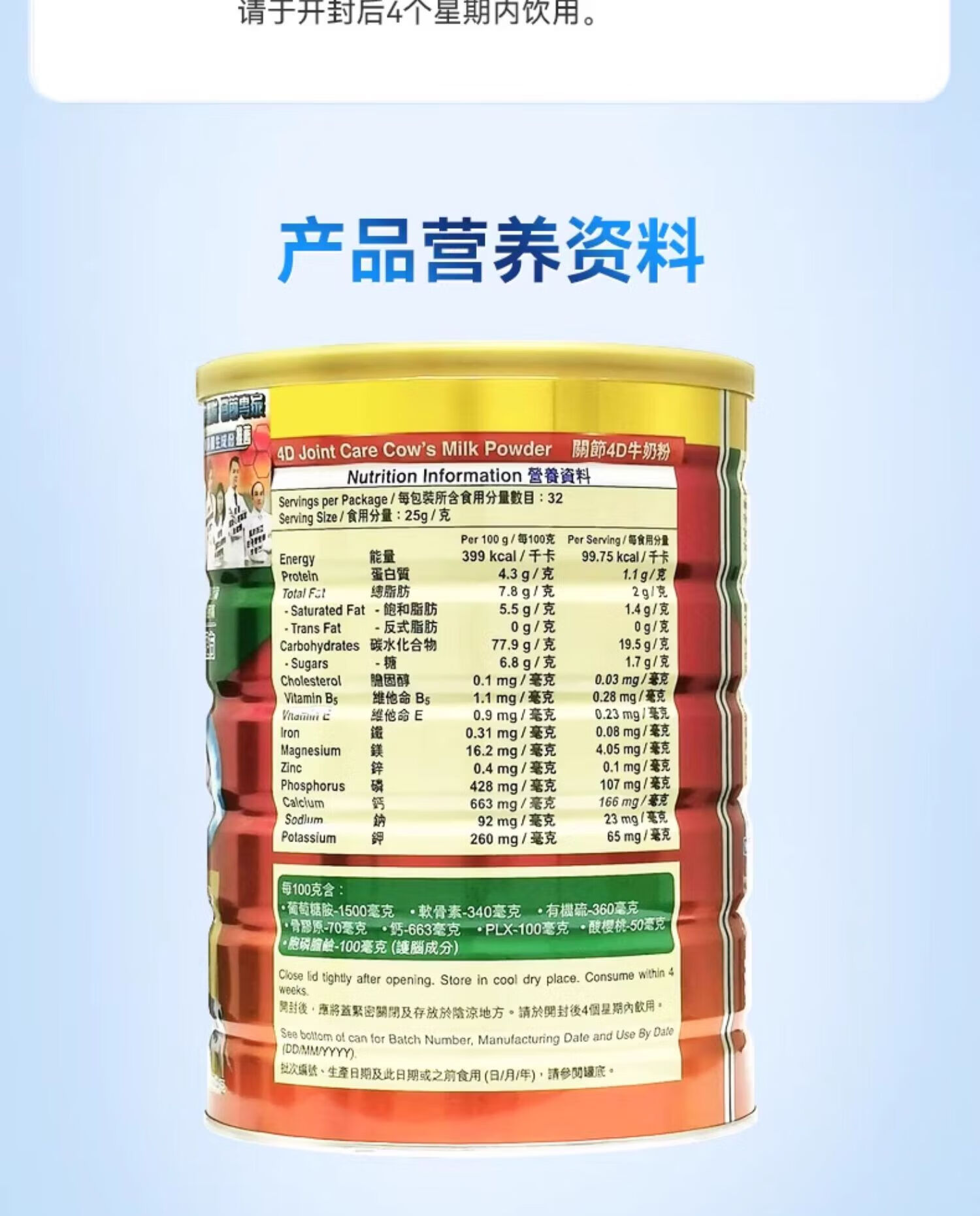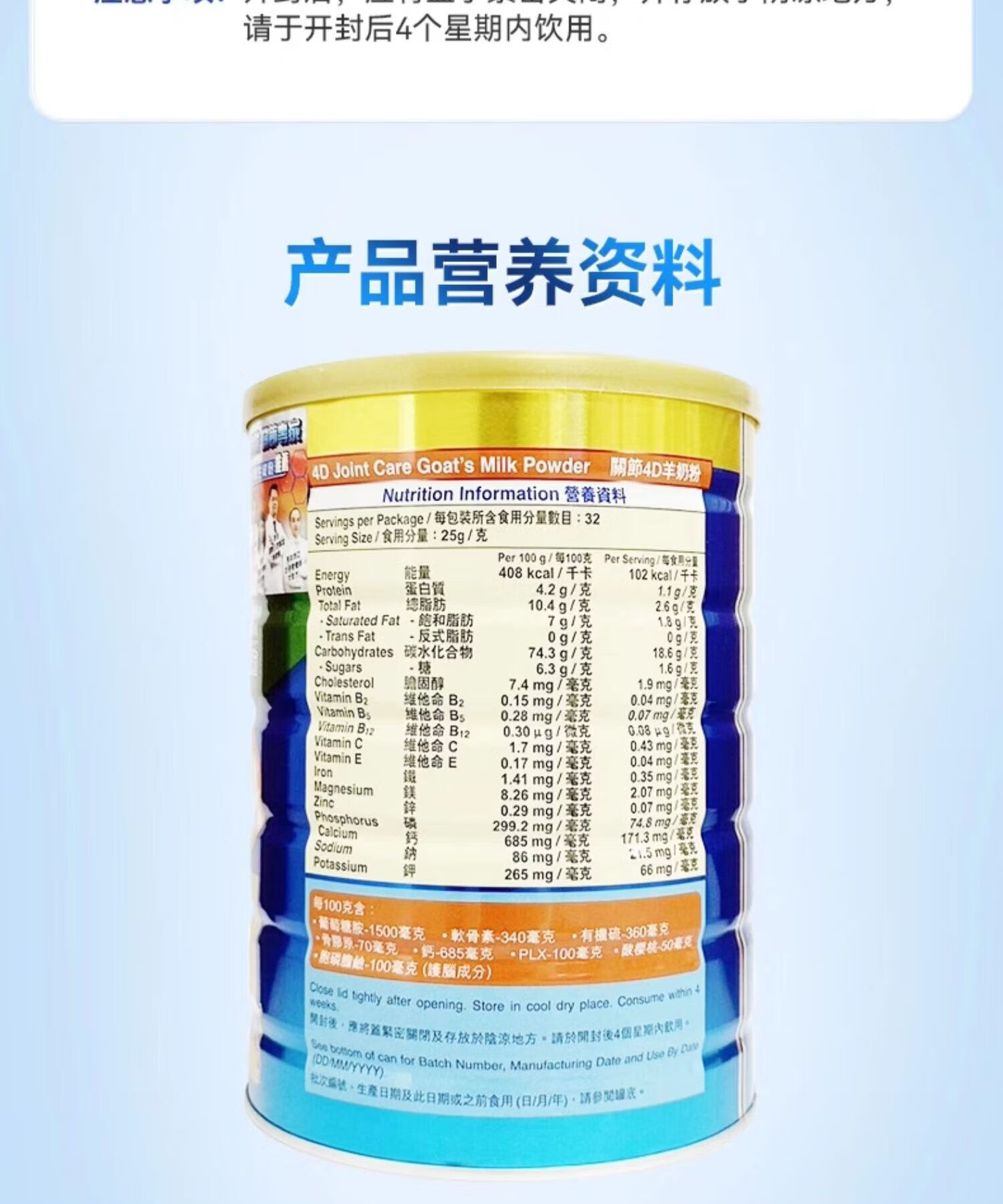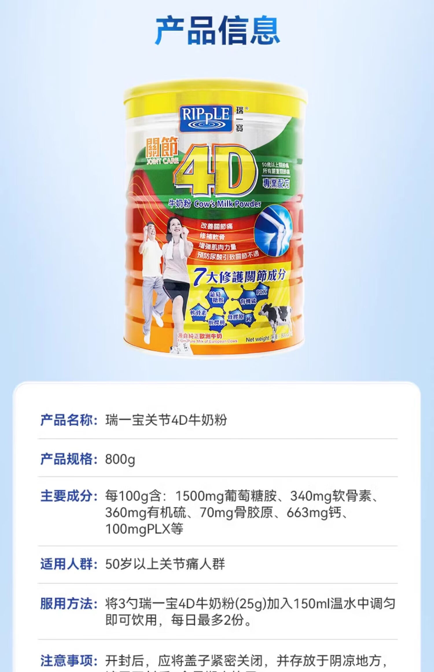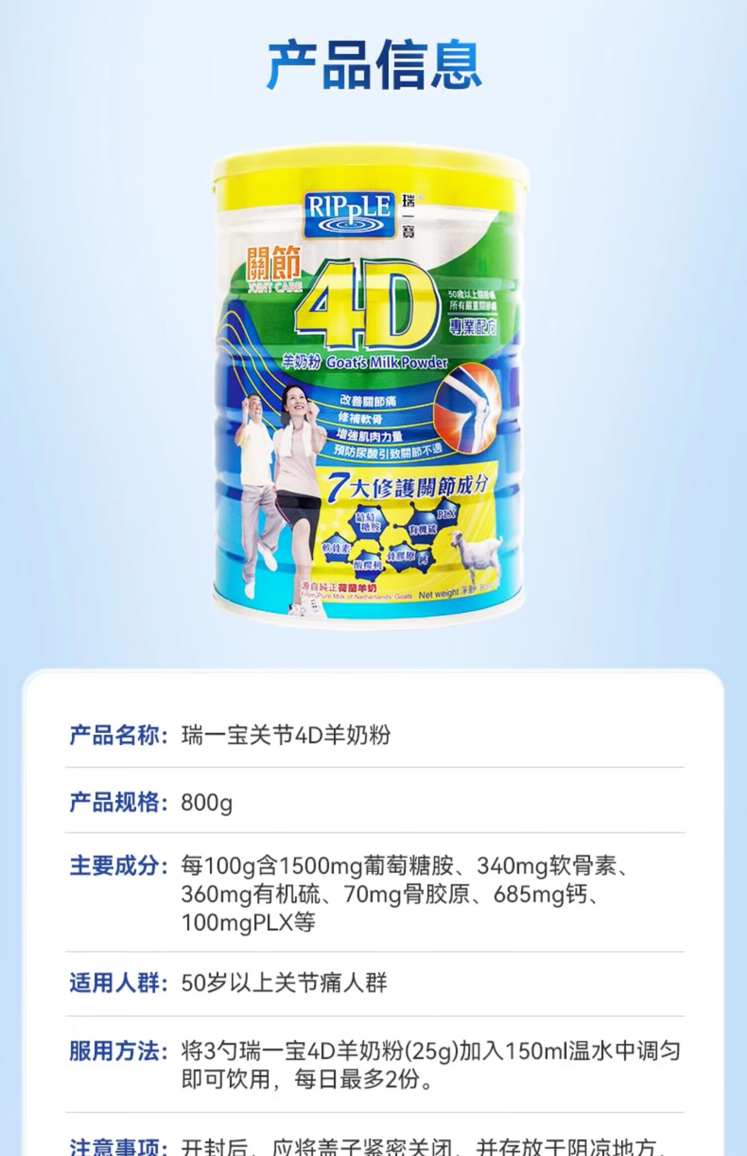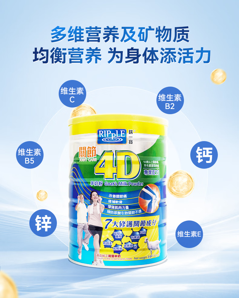 瑞一宝4D牛羊奶粉澳洲原装进口中老年关节软骨养护肌肉补充营养高钙奶粉 关节4D羊奶粉800g*1罐【效期至27年10月】