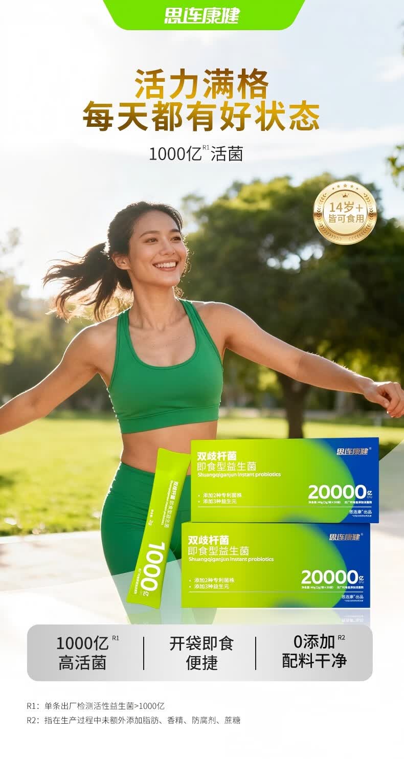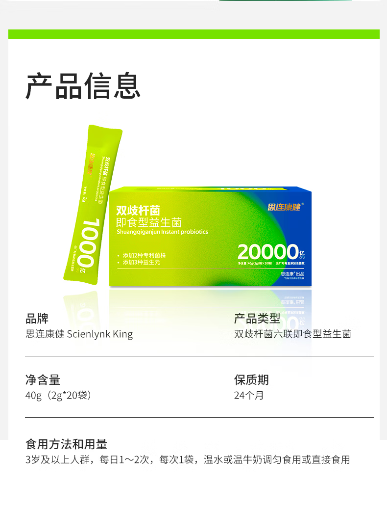 思连康健双歧杆菌六联成人儿童肠胃高活性益生菌一盒20000亿调理肠胃20条