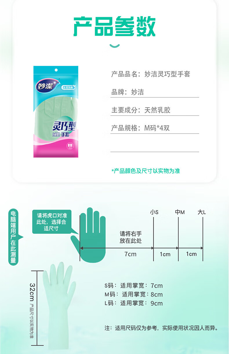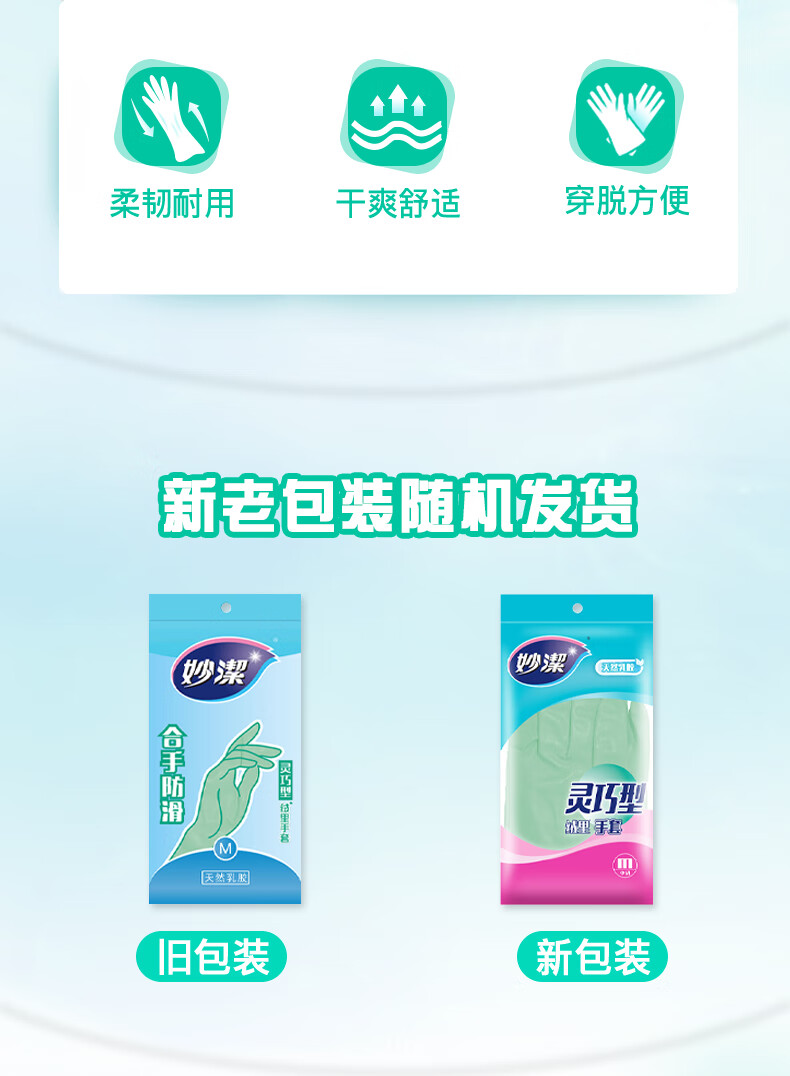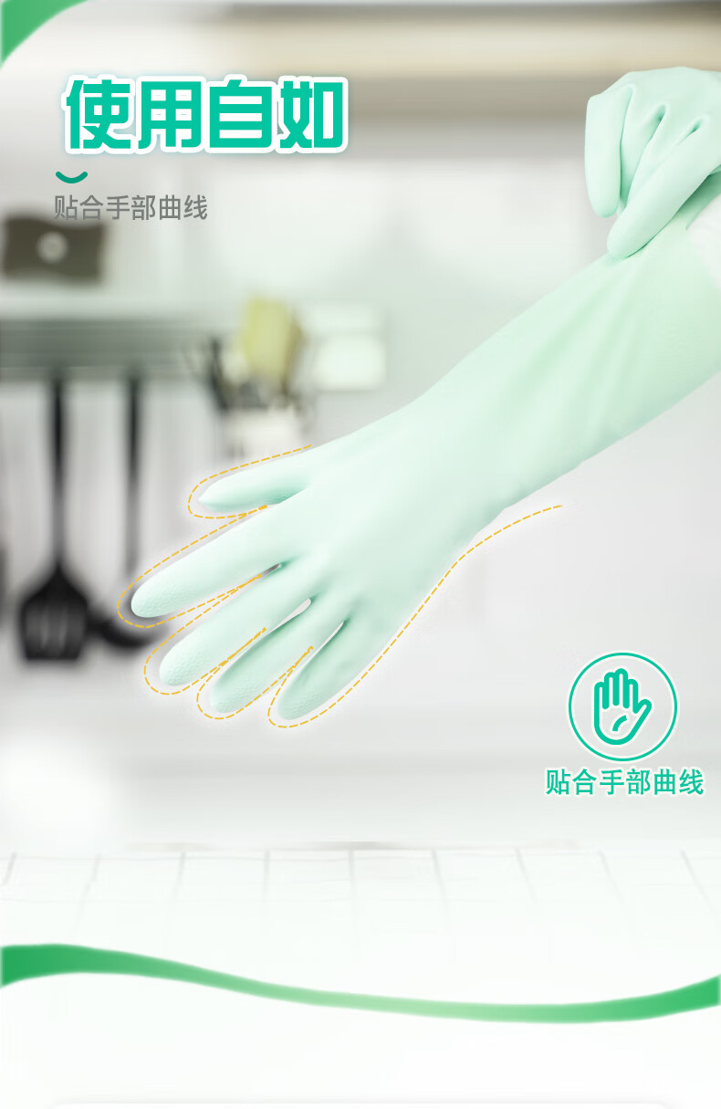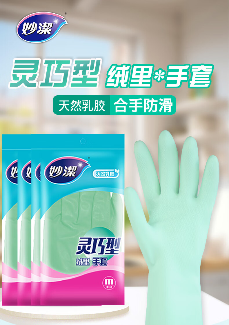 妙洁灵巧型乳胶手套 4双 中号 喷绒内里 防水防滑皮 厨房洗碗洗衣