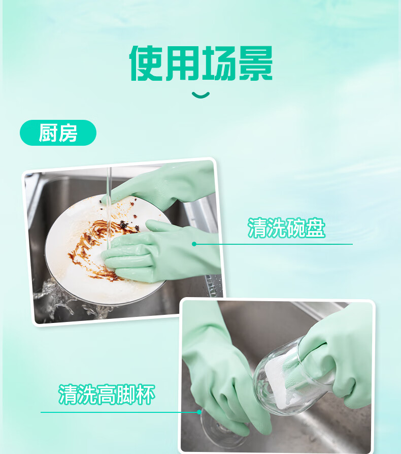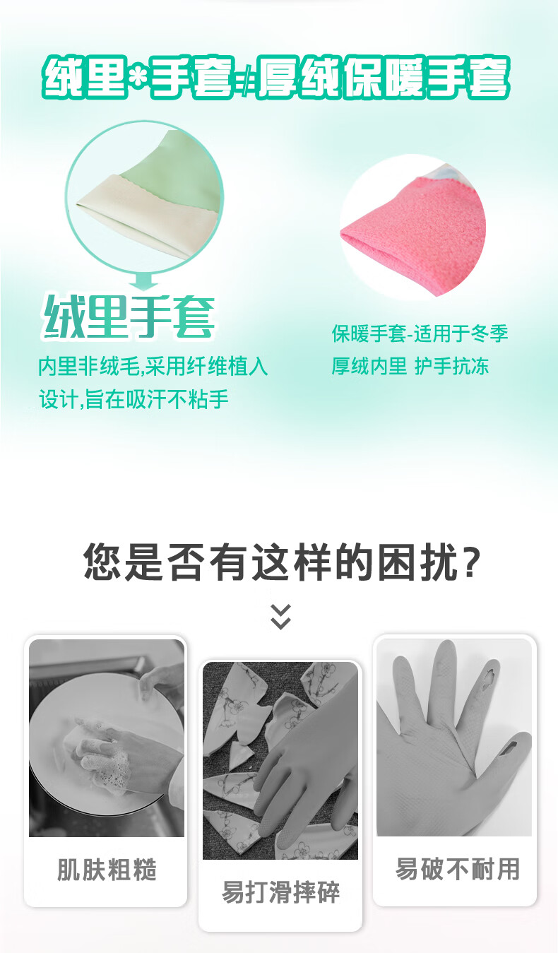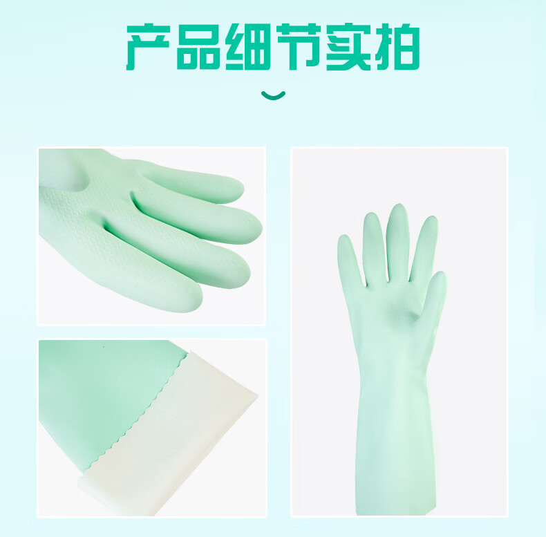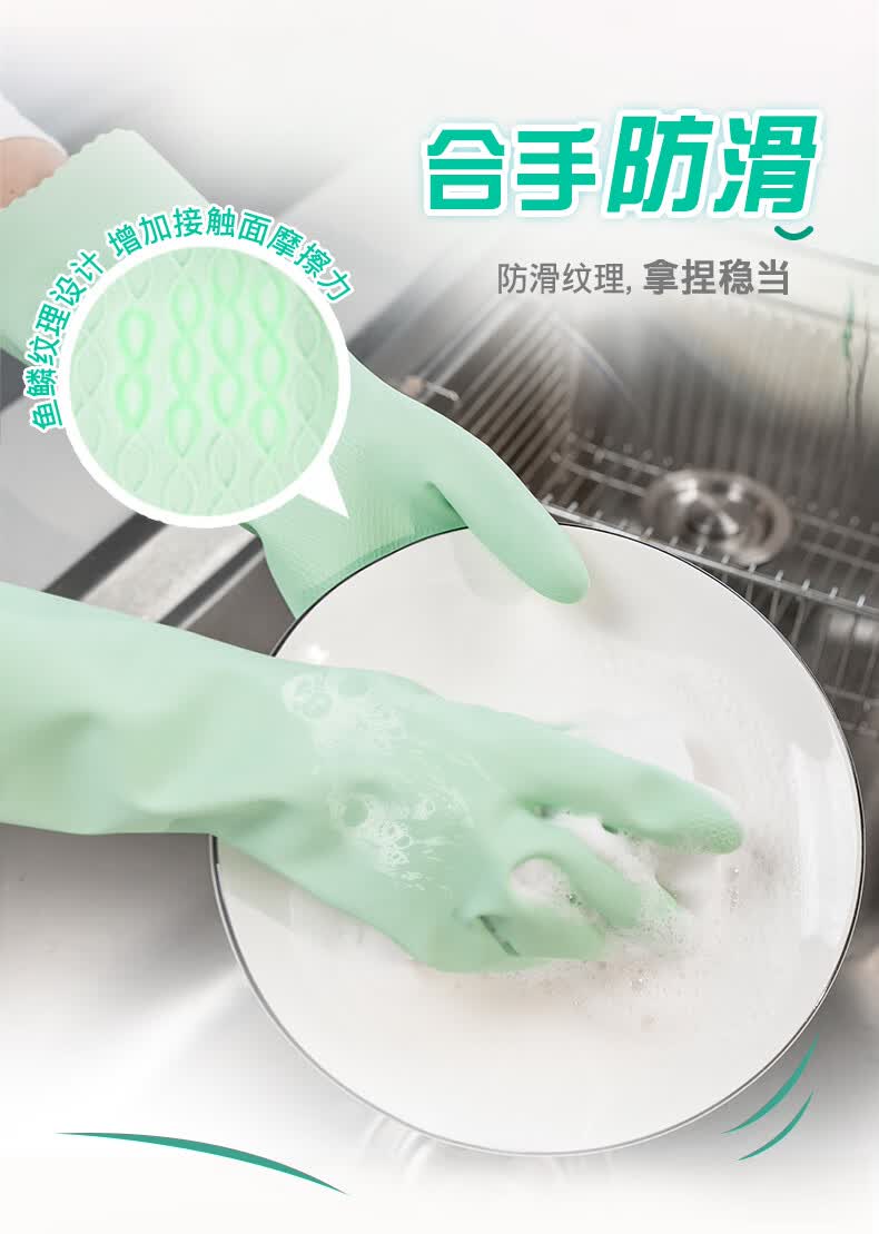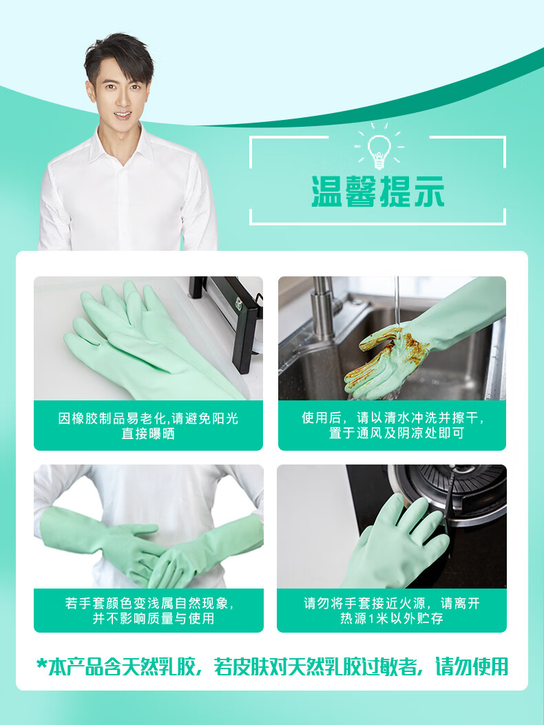 妙洁灵巧型乳胶手套 4双 中号 喷绒内里 防水防滑皮 厨房洗碗洗衣