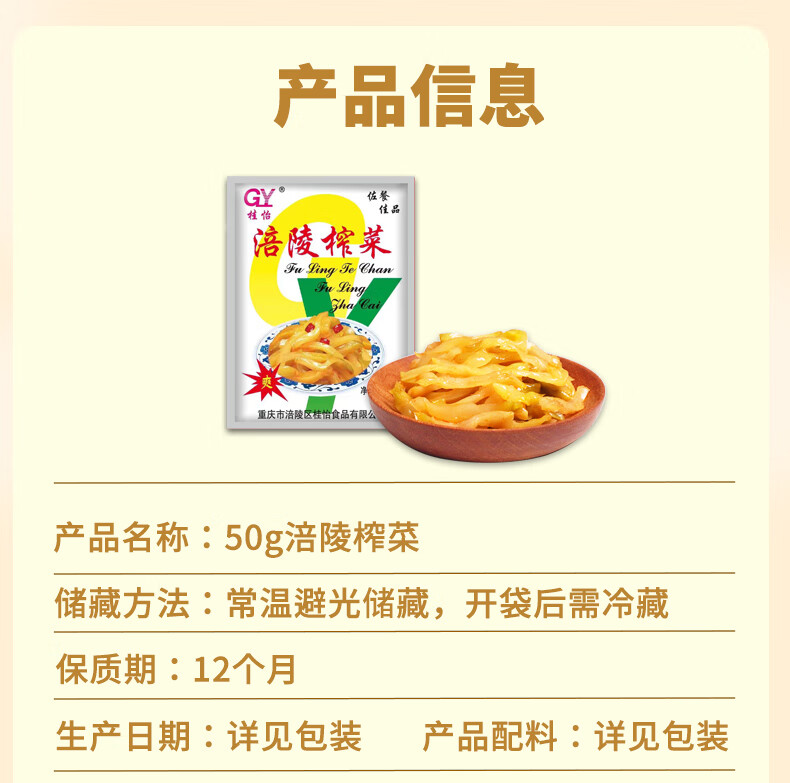 【涪陵榨菜】桂怡整箱去皮榨菜丝下饭菜榨菜批发不辣50g 涪陵榨菜50g 1袋