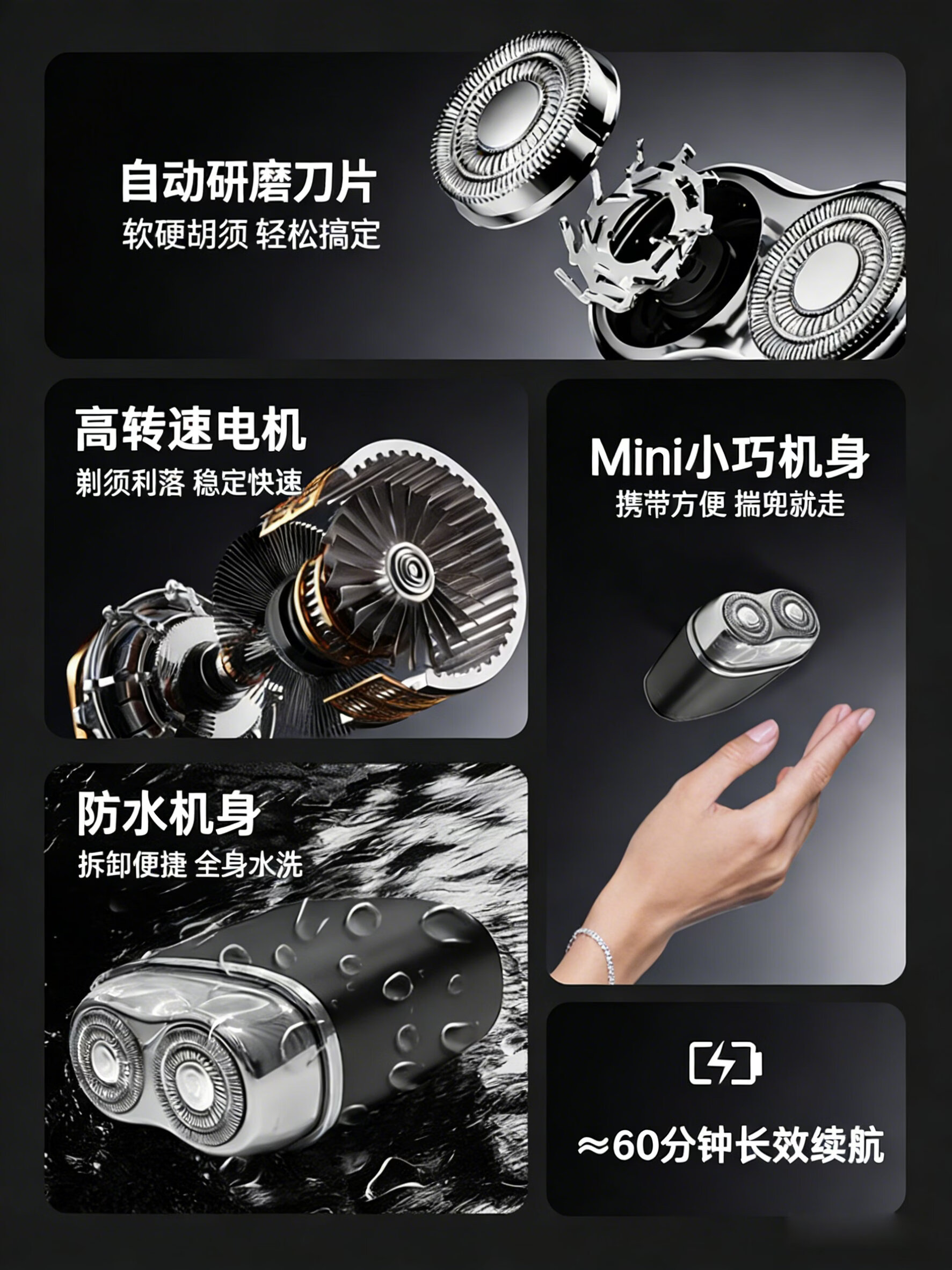 由魅迷你电动剃须刀全身水洗浮动刀面男士刮胡刀磁吸双刀头便携充电式旅行车载胡须刀 情人节 老公礼物 【星空灰】全身水洗+浮动双刀头+智能数显