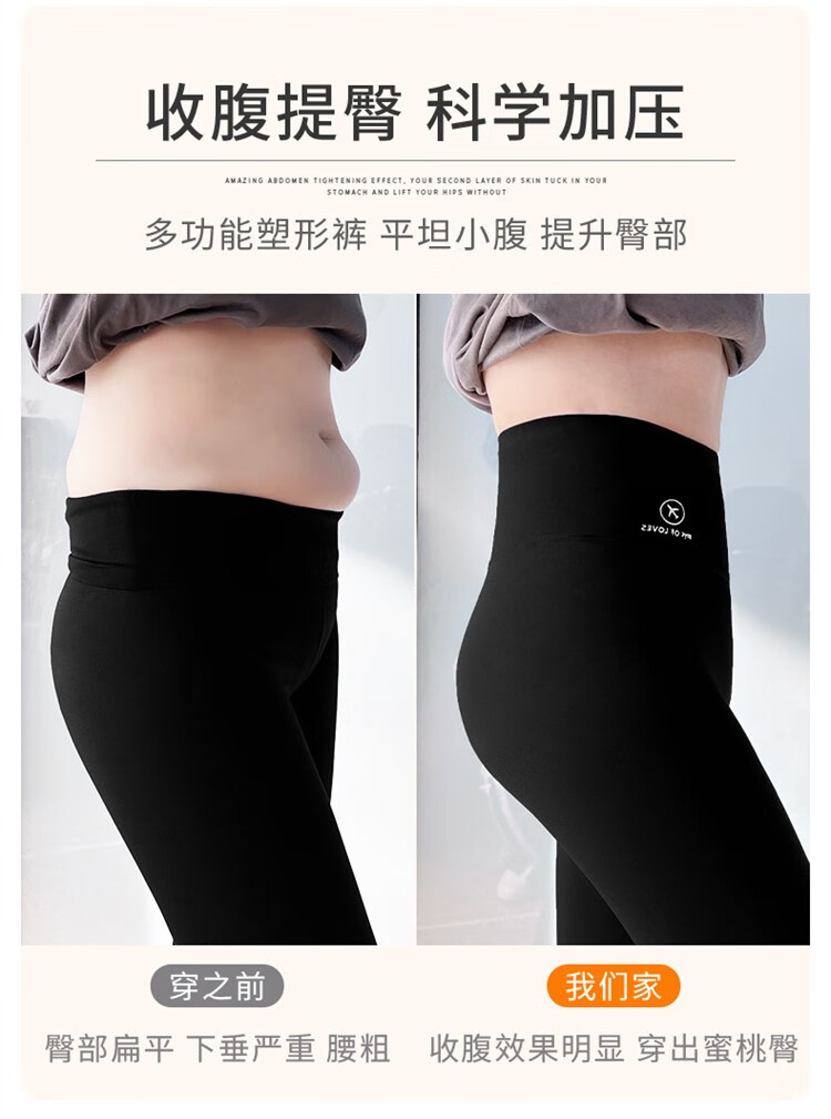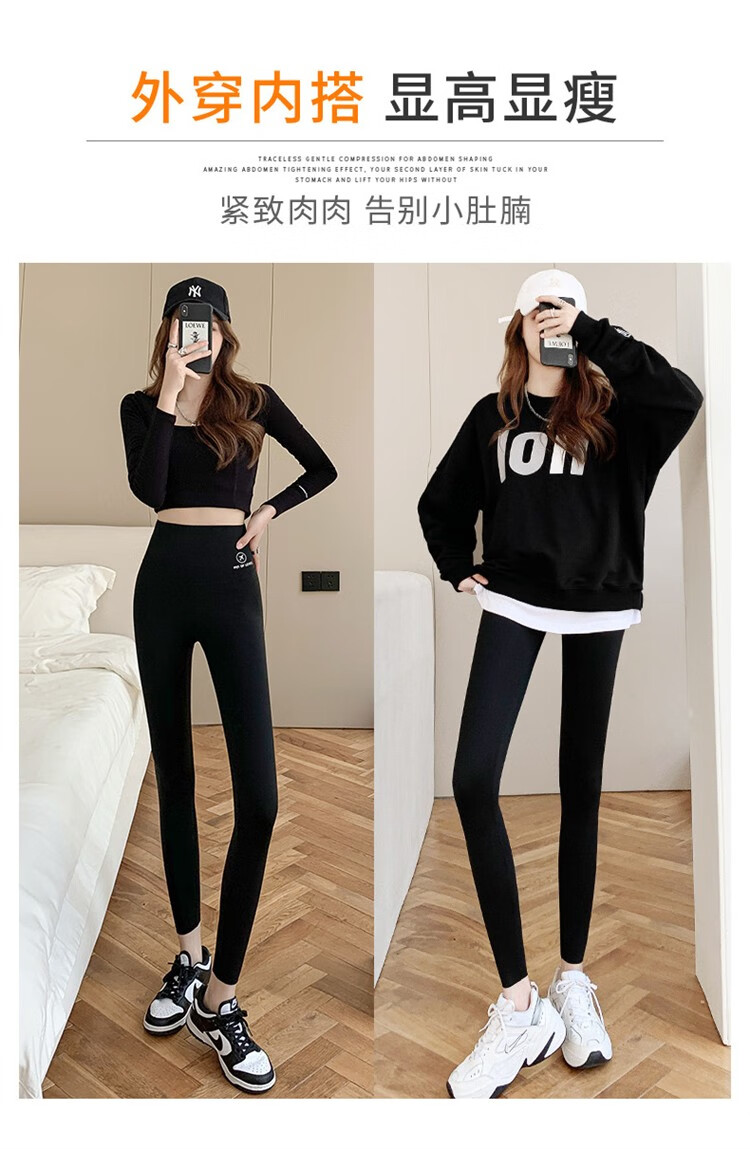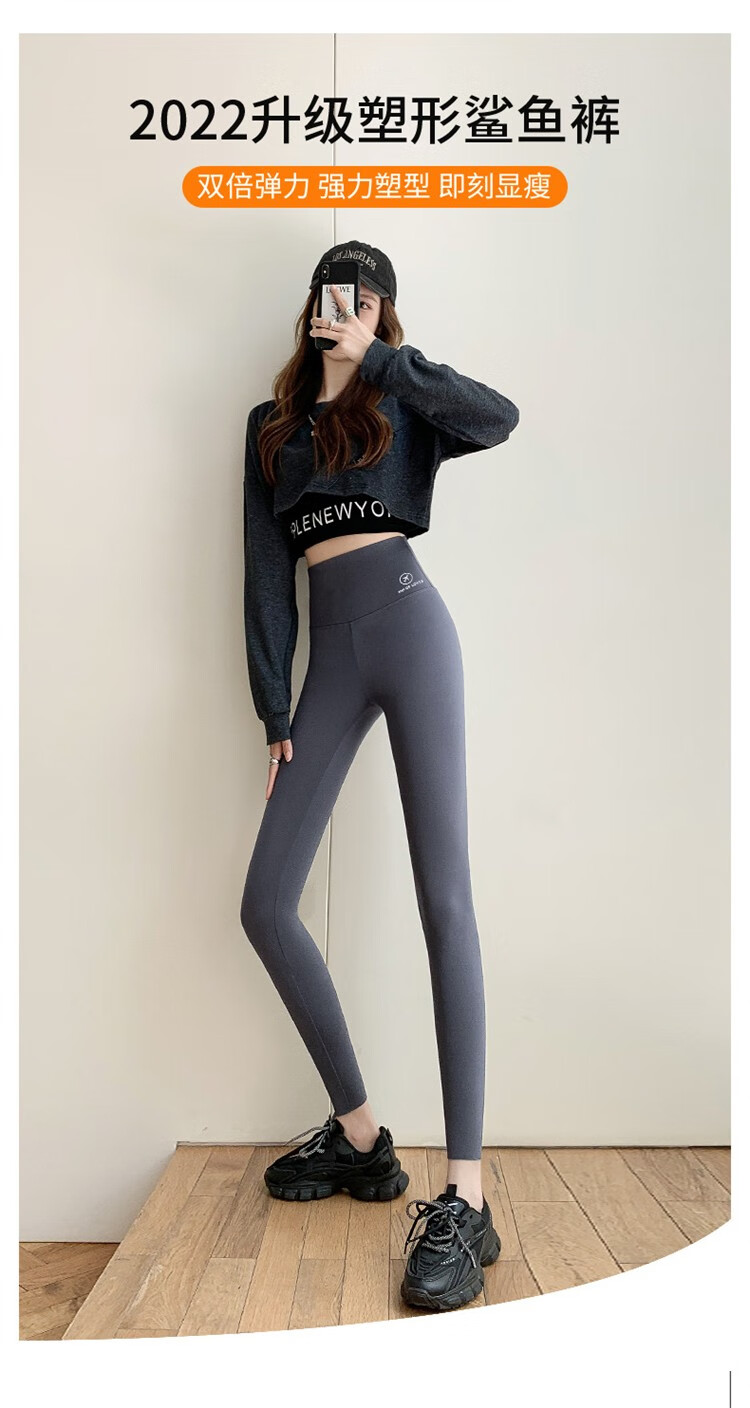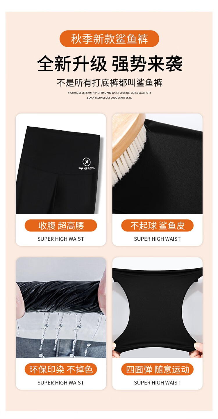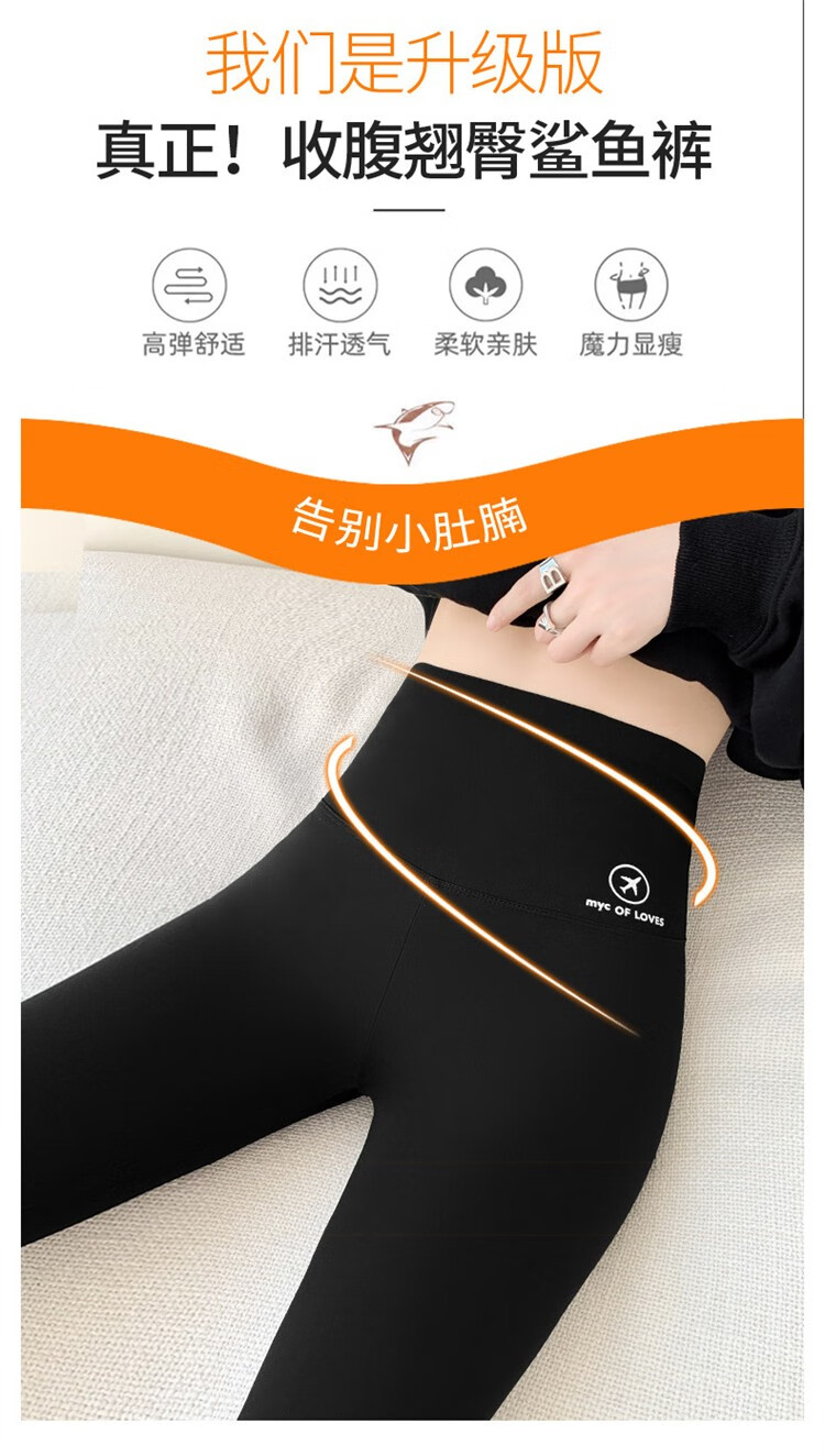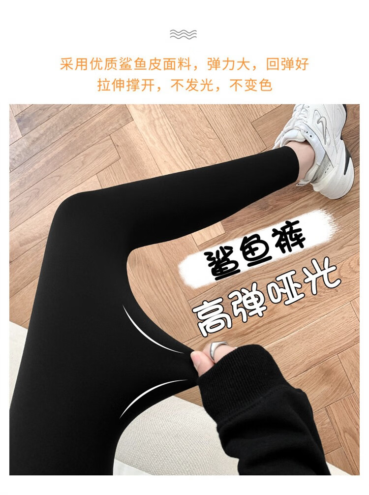 北极绒(Bejirog)鲨鱼裤女打底裤春夏薄款高腰紧身收腹提臀小脚黑桃裤 黑色-九分黑桃裤(收腹提臀) M (适合80~100斤)