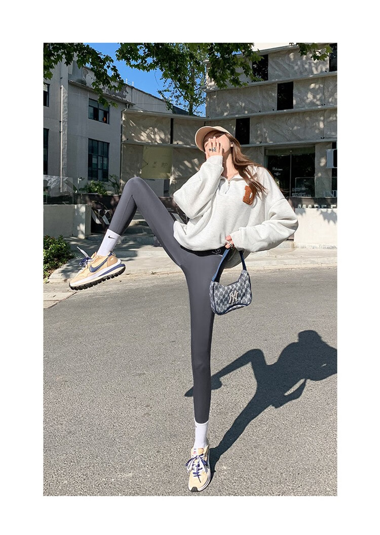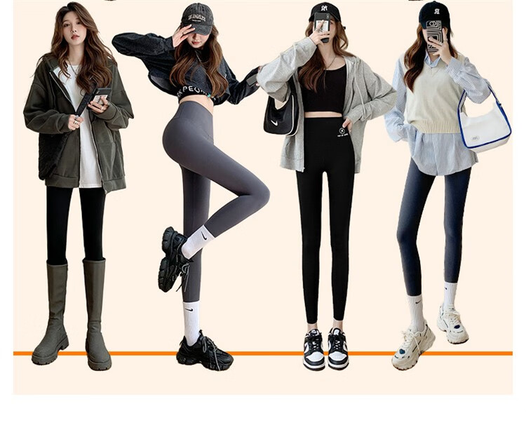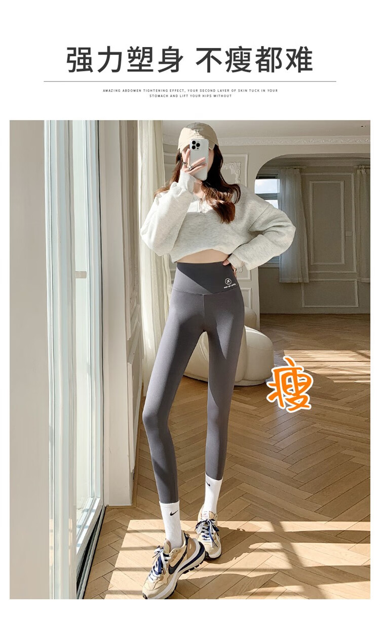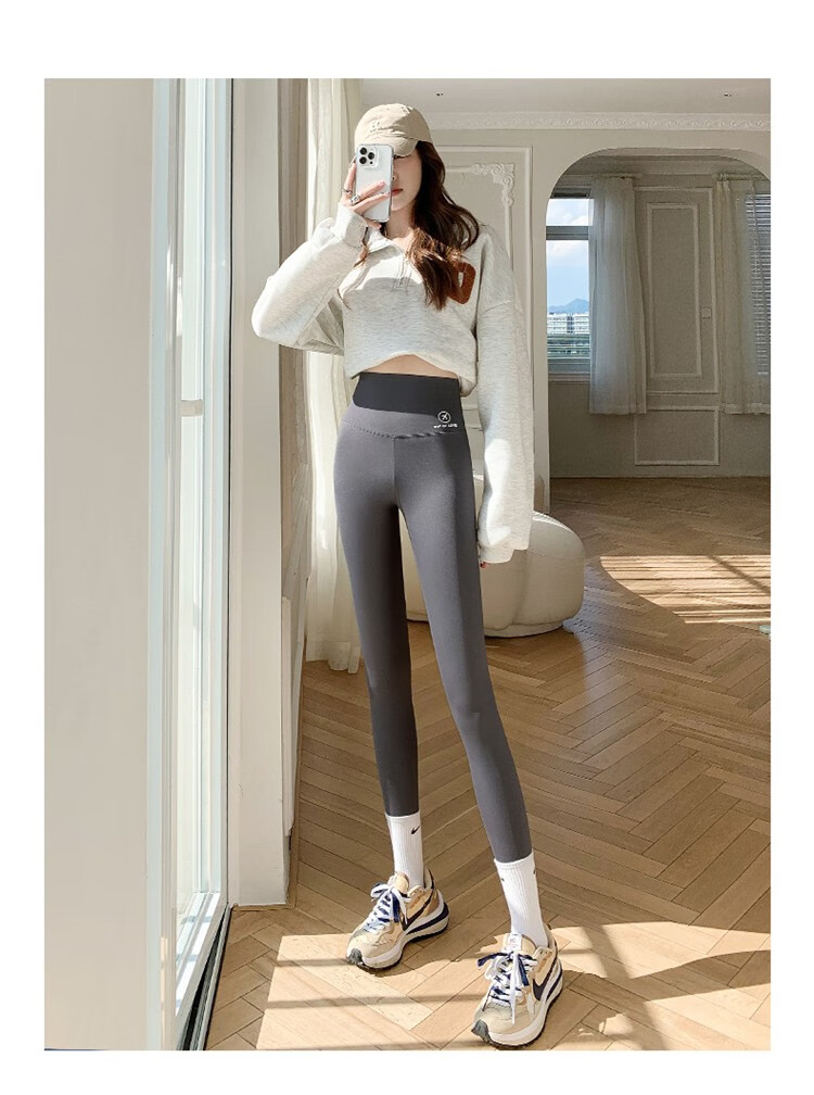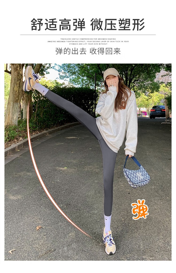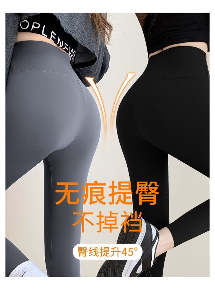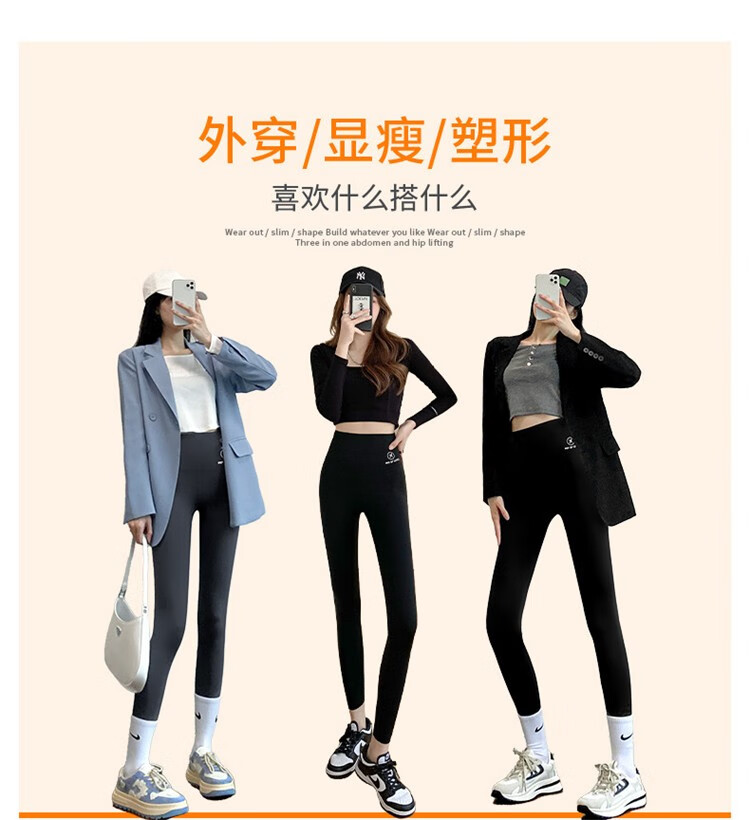 北极绒(Bejirog)鲨鱼裤女打底裤春夏薄款高腰紧身收腹提臀小脚黑桃裤 黑色-九分黑桃裤(收腹提臀) M (适合80~100斤)