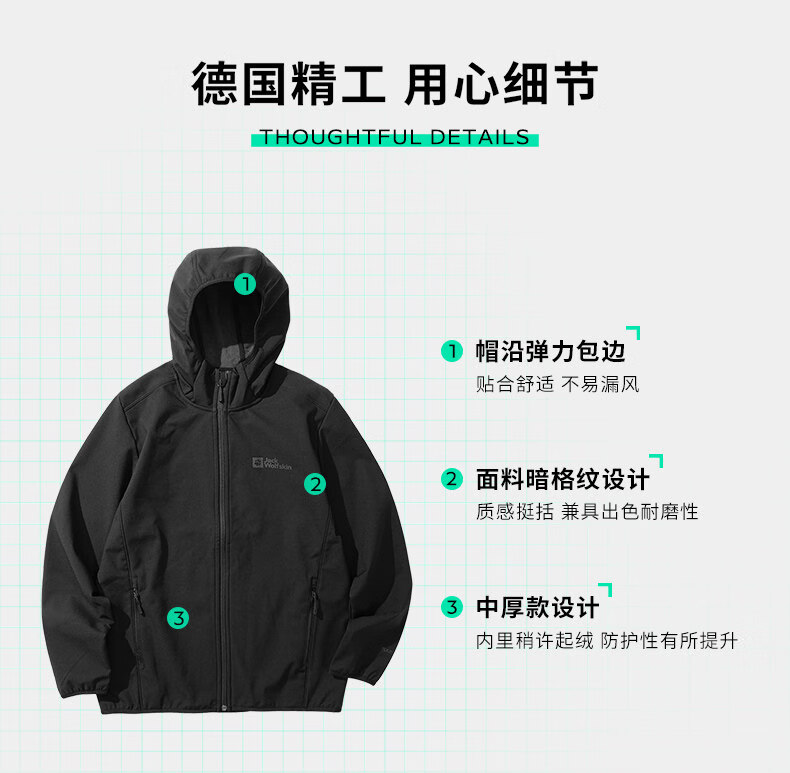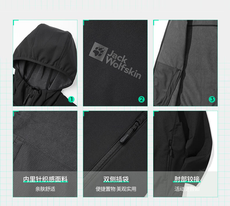 jackWolfskin德国狼爪男款连帽软壳衣夹克