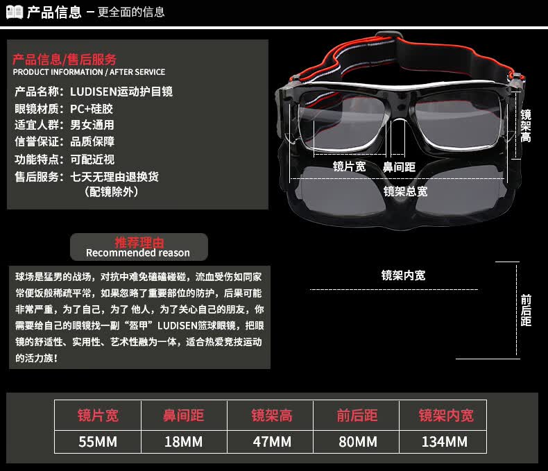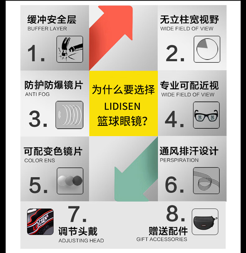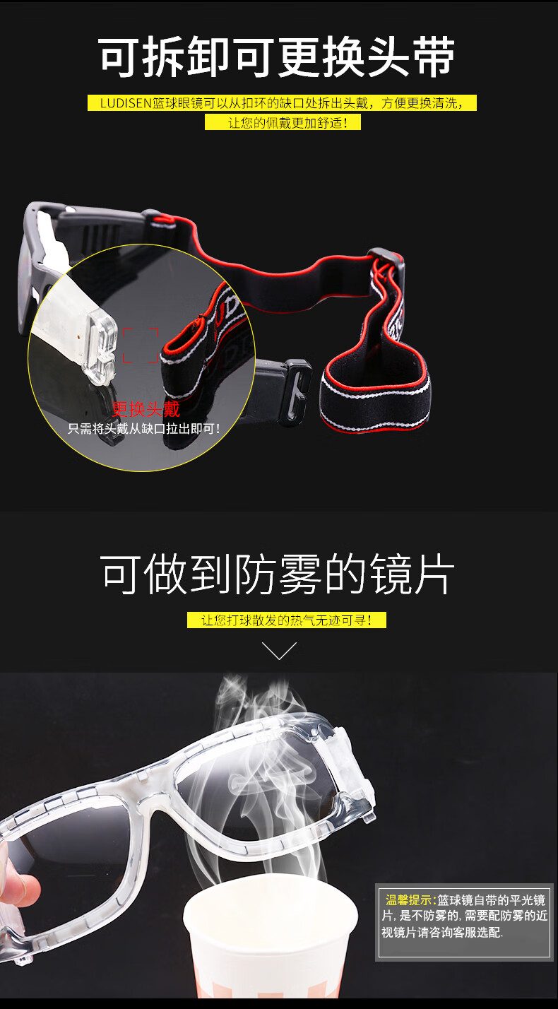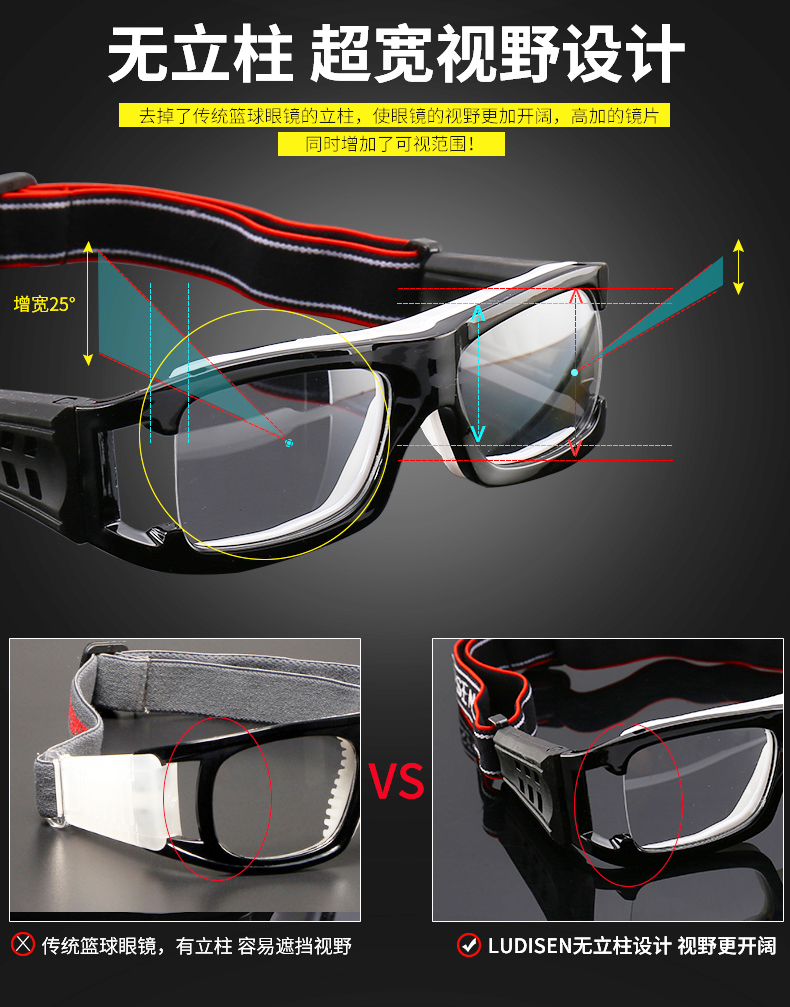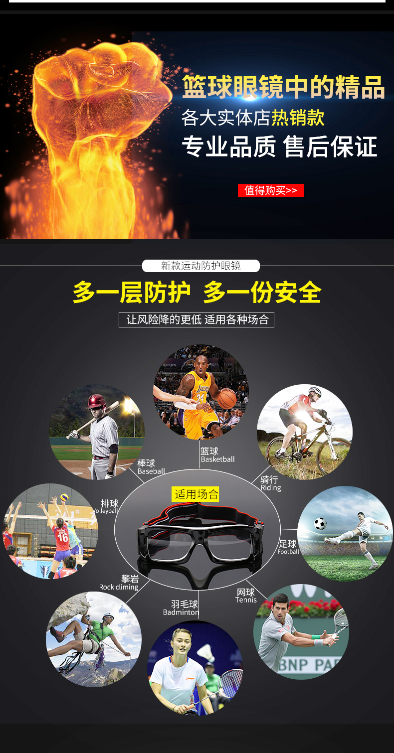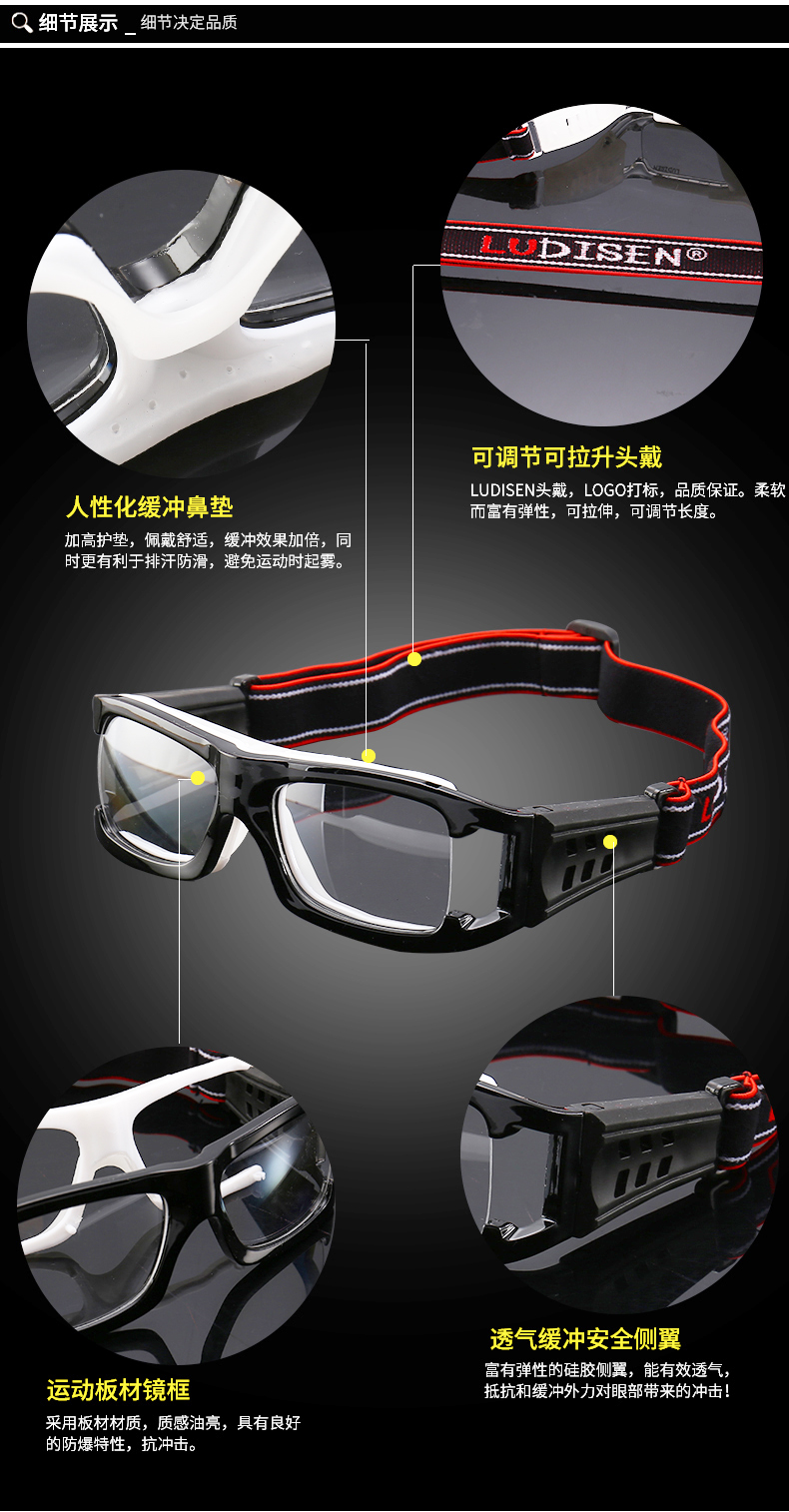 路迪森篮球眼镜运动近视眼镜 男专业打球护眼镜抗摔防撞击眼镜架 配近视足球眼镜框 打羽毛球眼镜女 近视镜(双眼-200)留言颜色