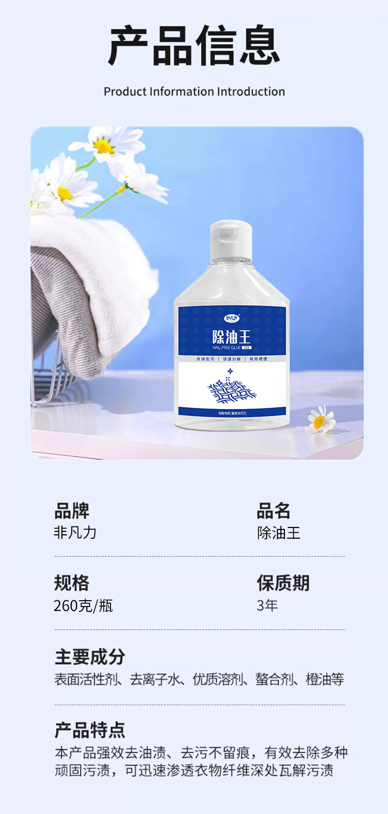 非凡力强力油污清洁剂溶解剂衣服油渍残留去除剂去油清洁剂 【特价】除油清洁剂260g*5瓶 无规格