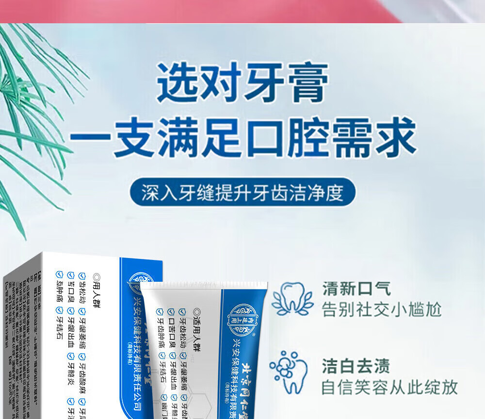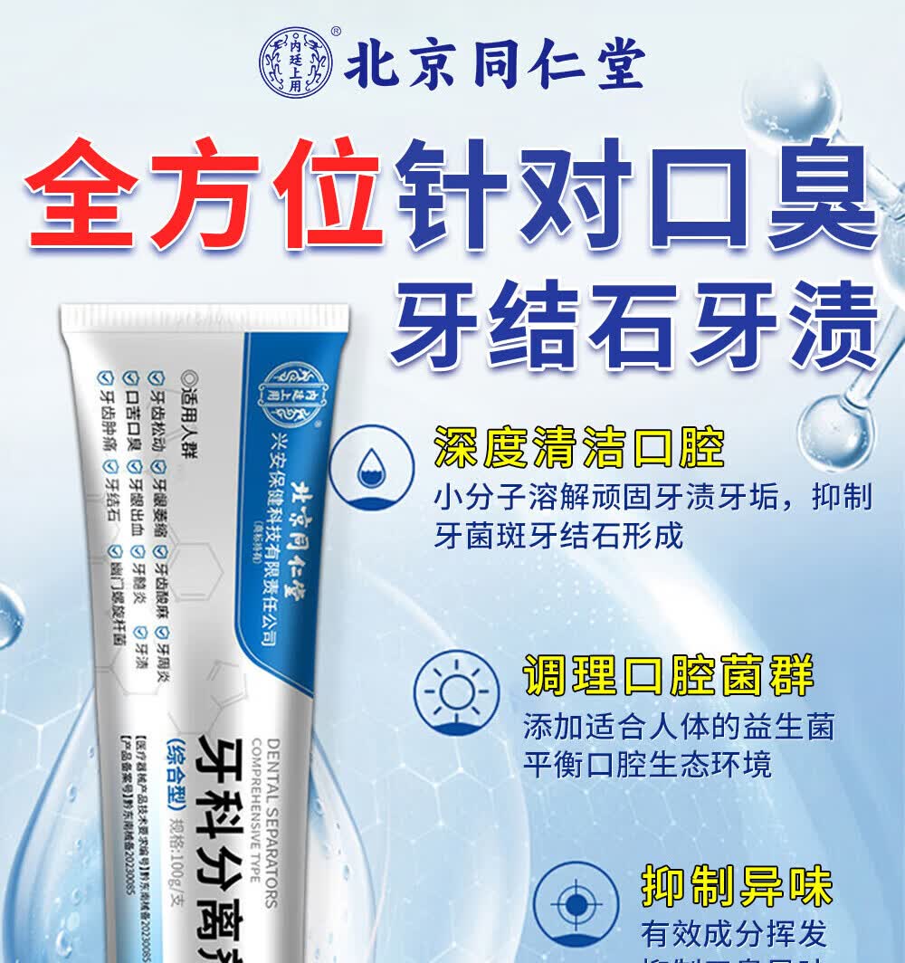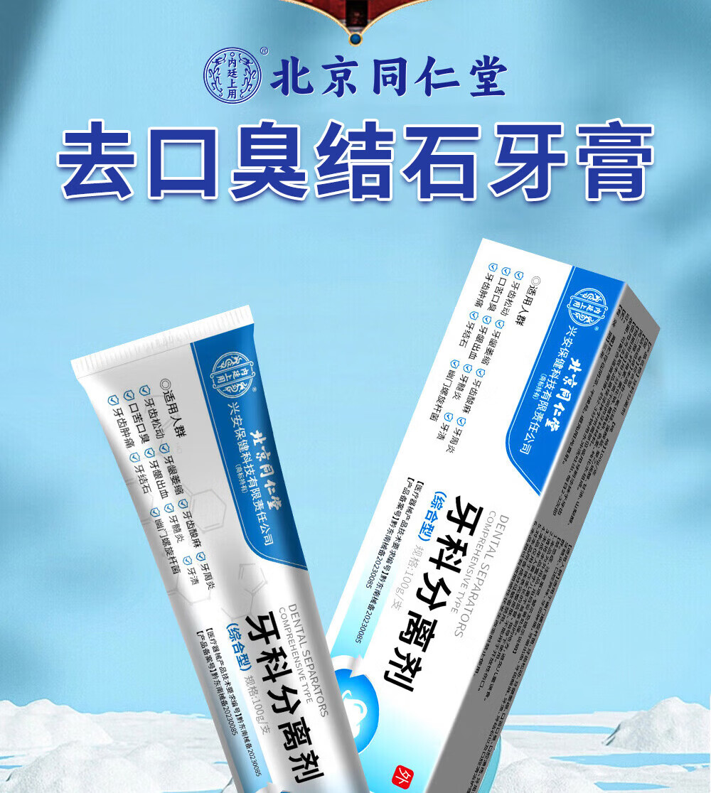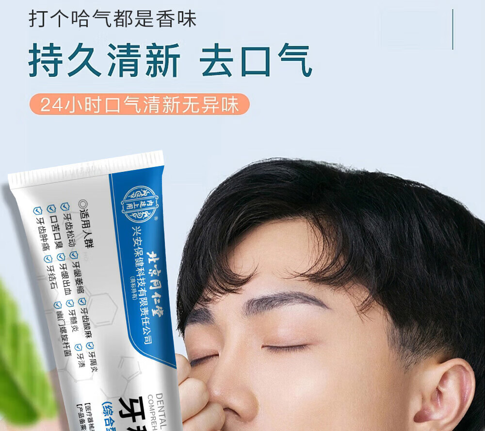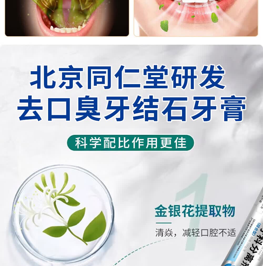 北京同仁堂牙膏去口臭口气重嘴巴臭去黄去牙结石牙渍口腔有异味难闻专用抑菌 1盒装【多买多送】
