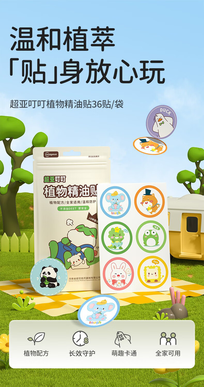 超亚叮叮植物精油贴防护贴宝宝儿童成人植物精油贴户外防叮贴 植物精油贴【36贴*2袋】