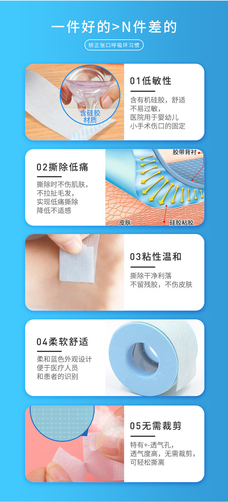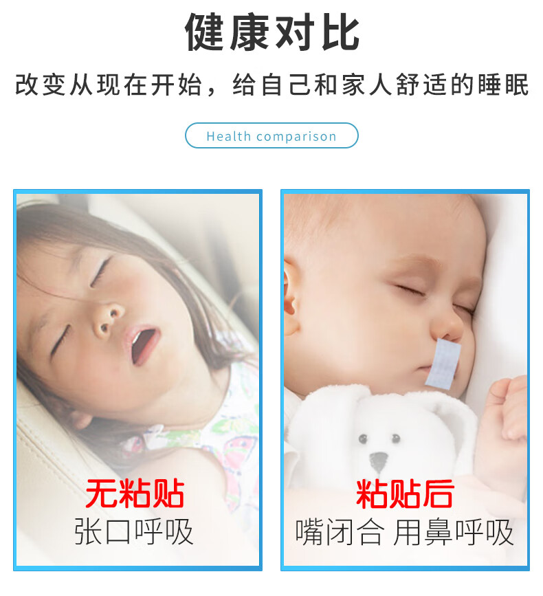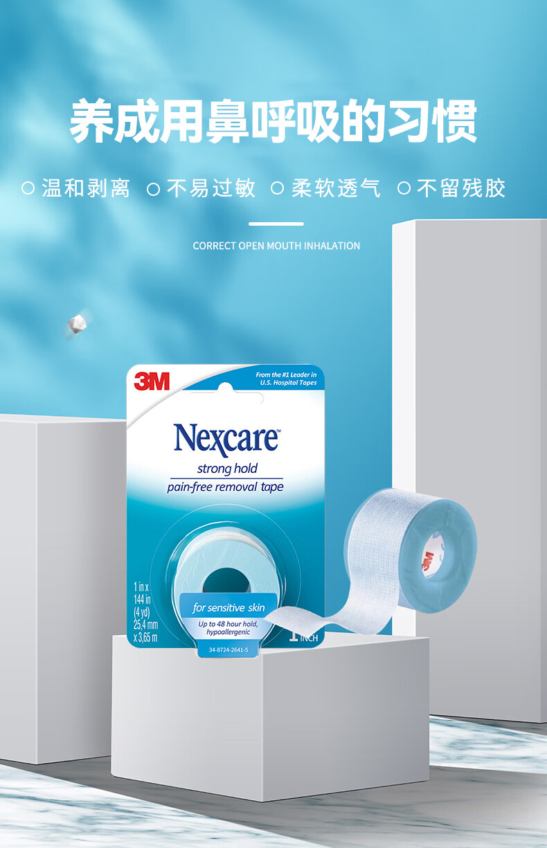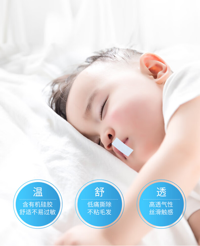 3M闭嘴贴止鼾口呼吸贴婴儿封嘴贴防张嘴睡觉医用硅胶压敏胶带 2盒装