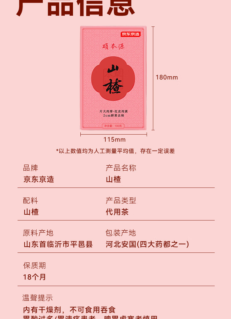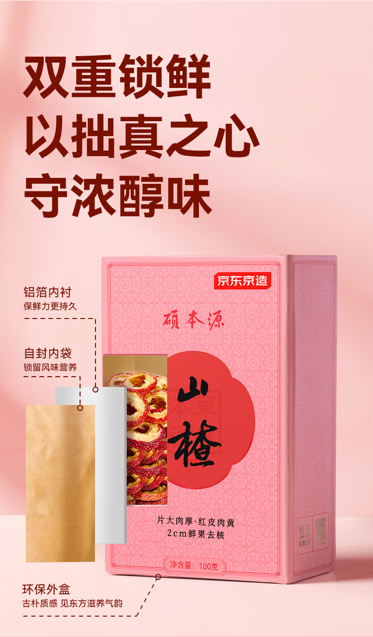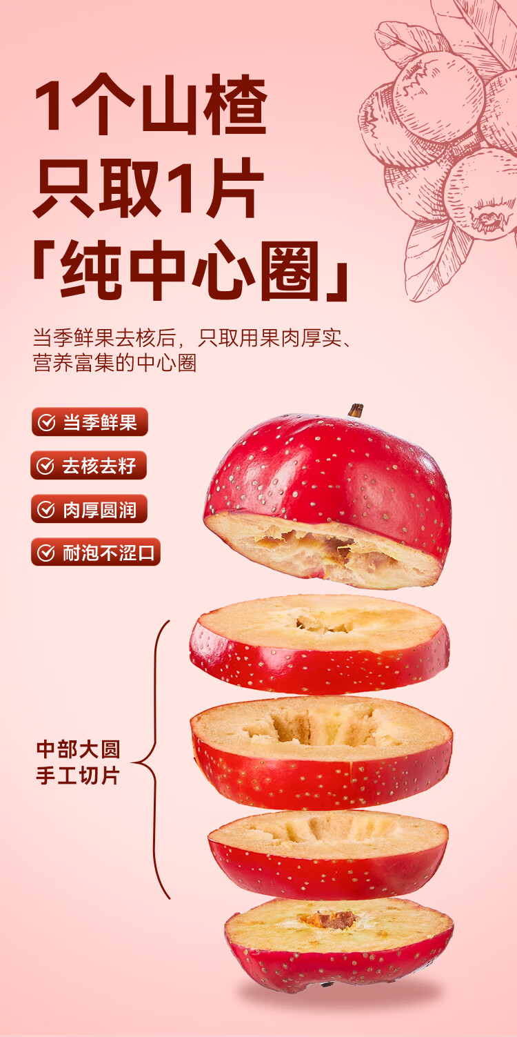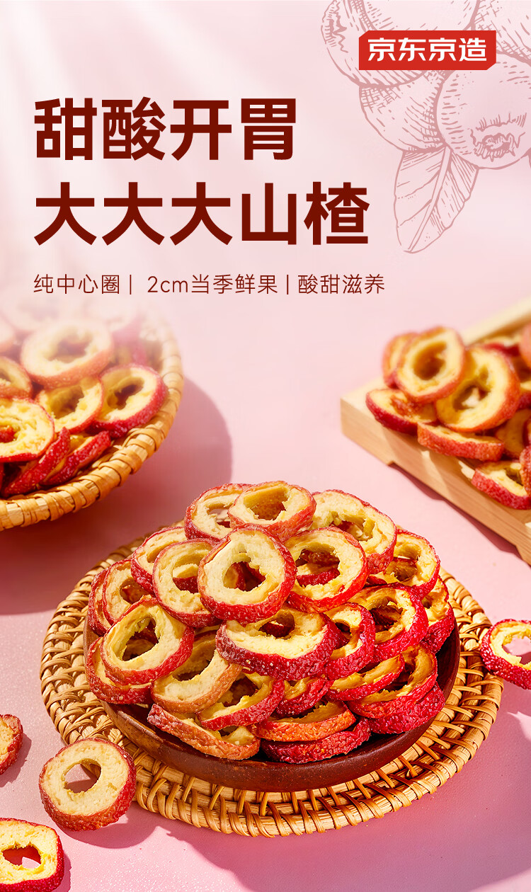 京东京造鲜来多山楂干100g去核无籽山楂片山楂圈花果茶养生茶茶包酸梅汤料