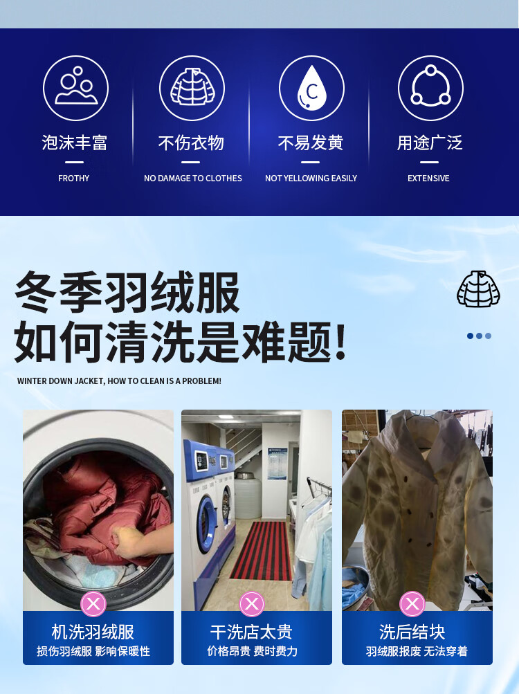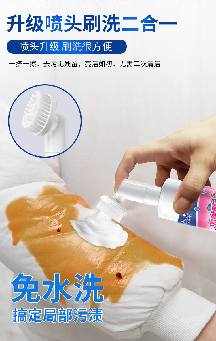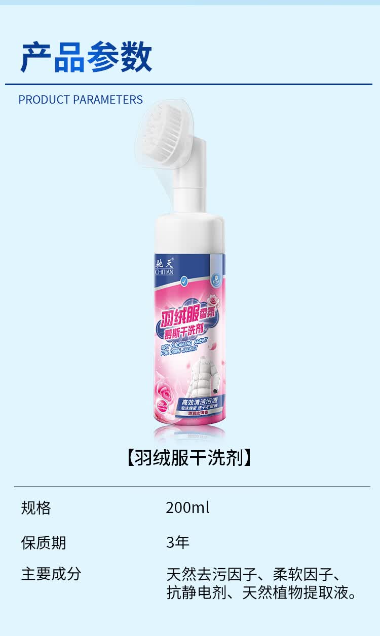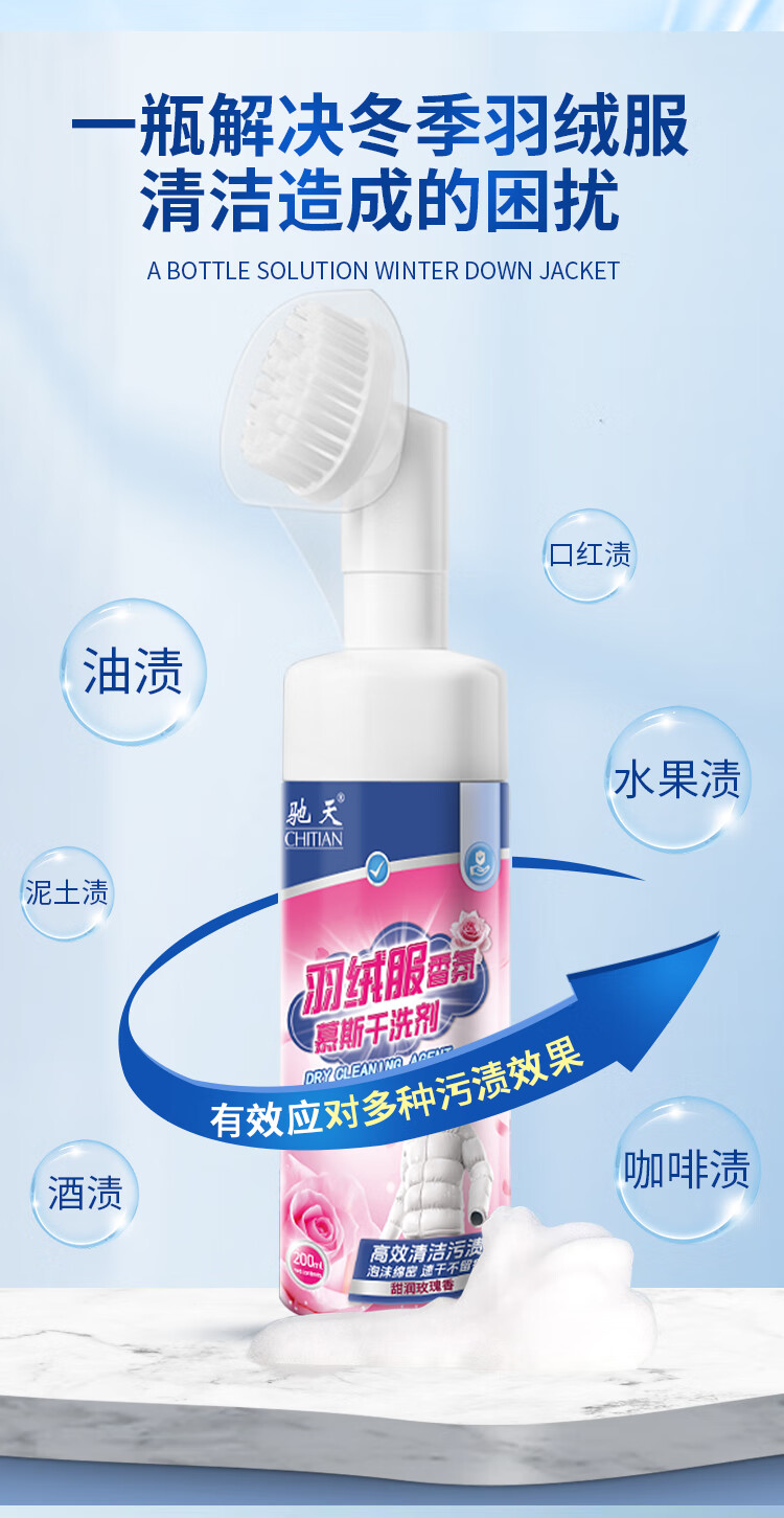 驰天(CHITIAN)【强效去污不留痕】羽绒服干洗剂免水洗羽绒服蓬松去渍专用清洗剂 加强款*2瓶+1个高泡刷头