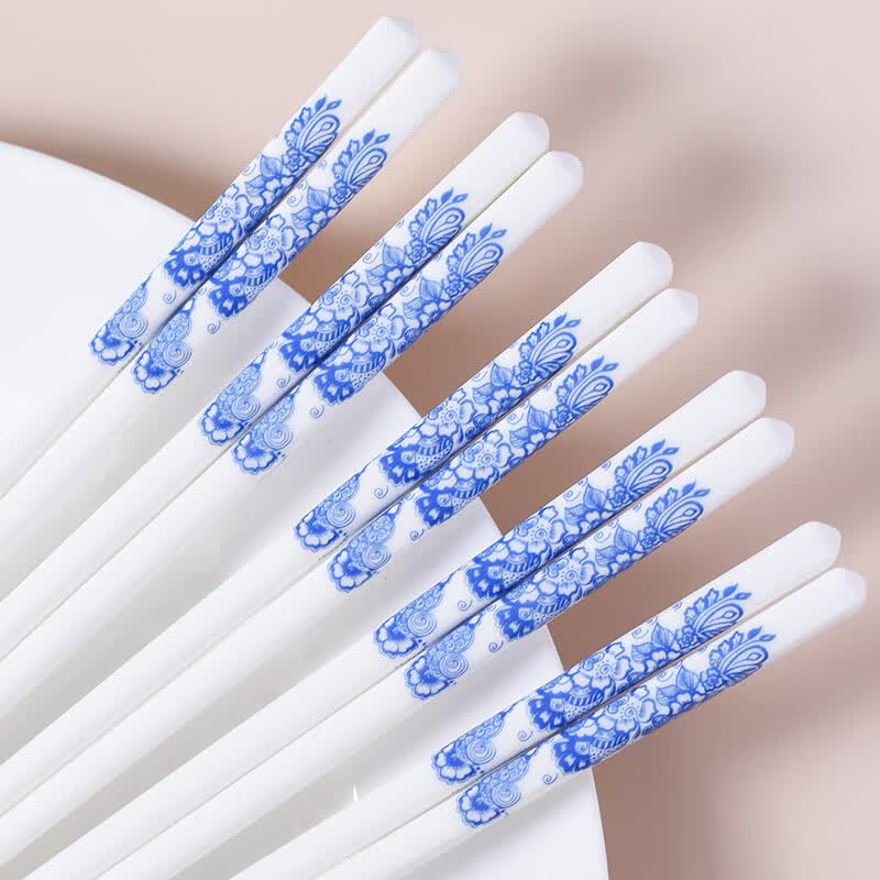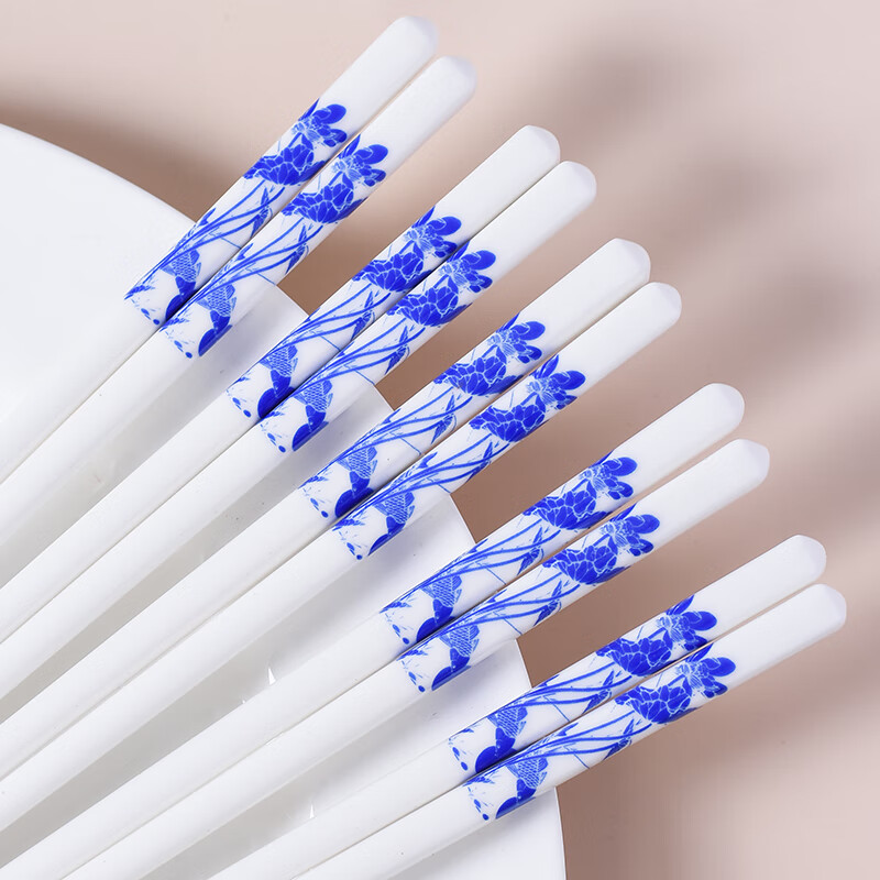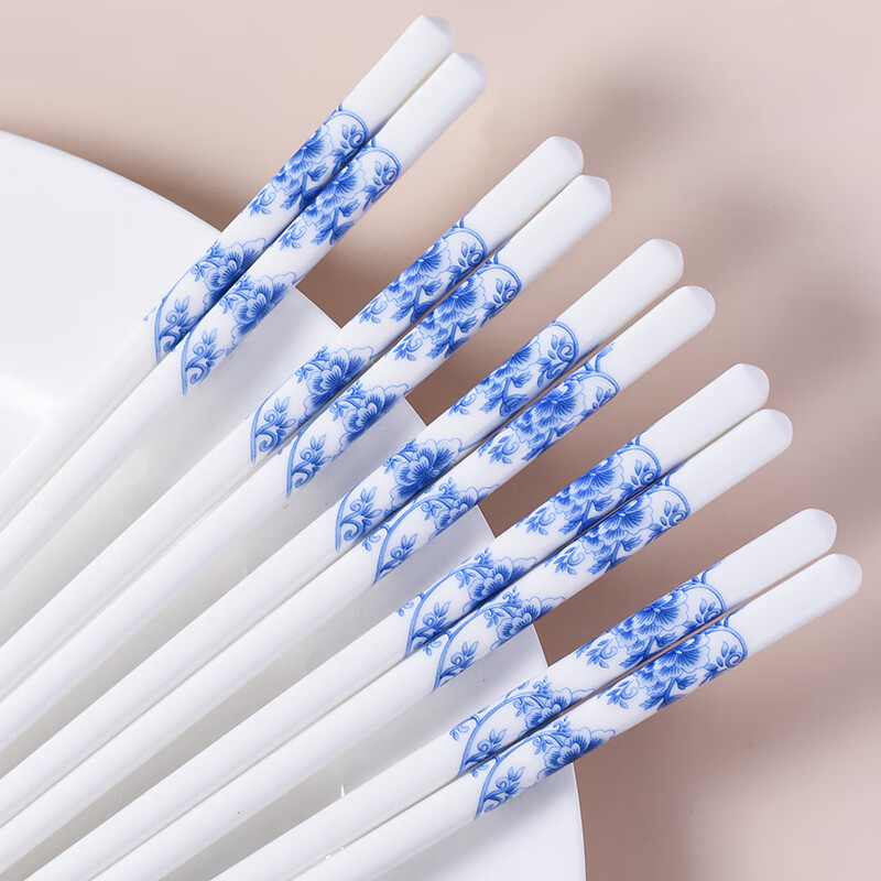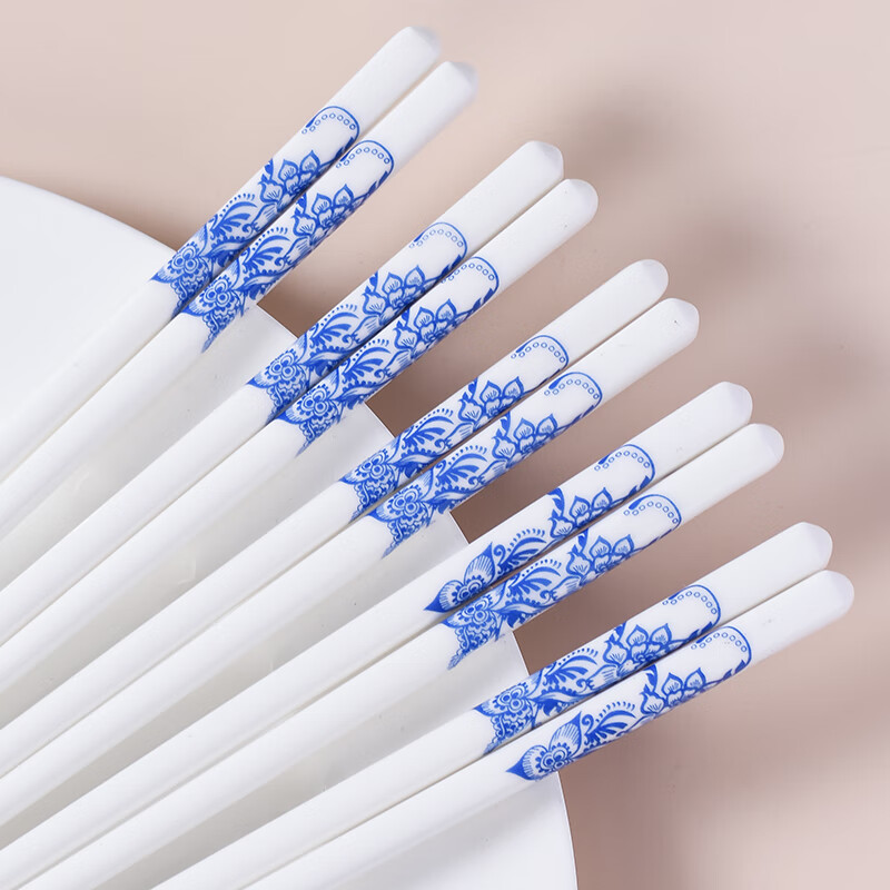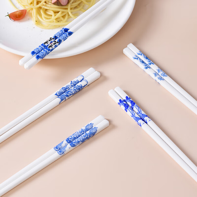 筷子景德镇陶瓷防滑防霉10双套装家用欧式耐高温餐具 国风青花【装】 10双