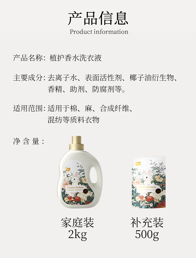 植护香水洗衣液 月殿山茶 进口香氛 长效持久留香深层洁净 【4斤装】2KG*1瓶