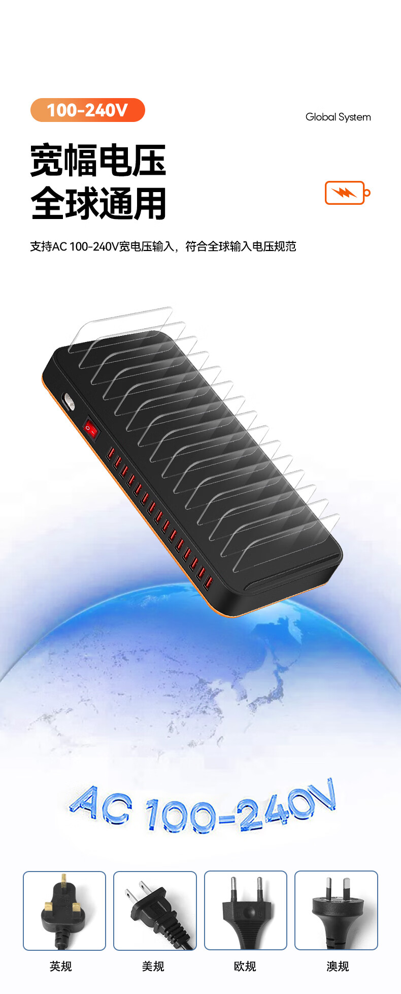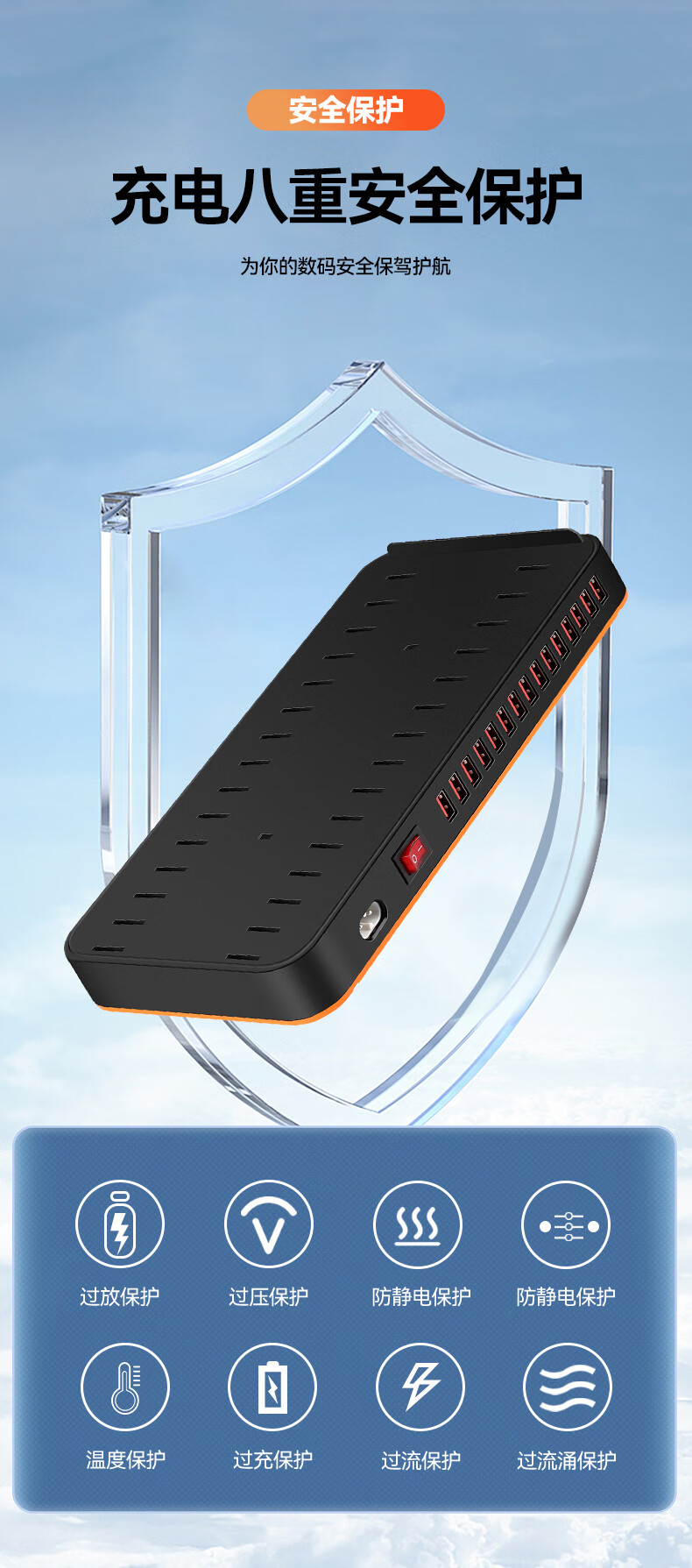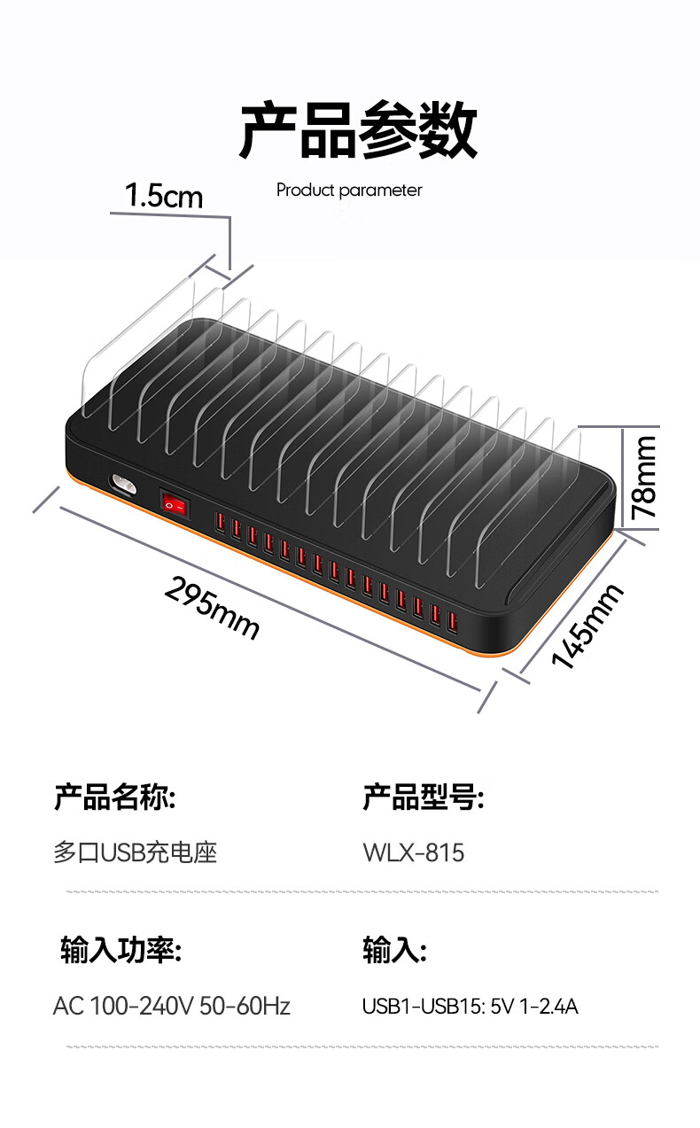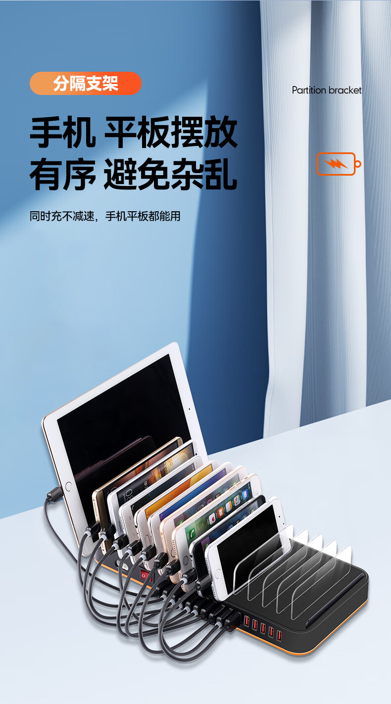 万隆欣多口usb充电器桌面充电站插头快充多台手机充电桩工作室多孔集成支架插座插排多功能大功率充电坞 15口180W托盘立式充电器+15根安卓短线
