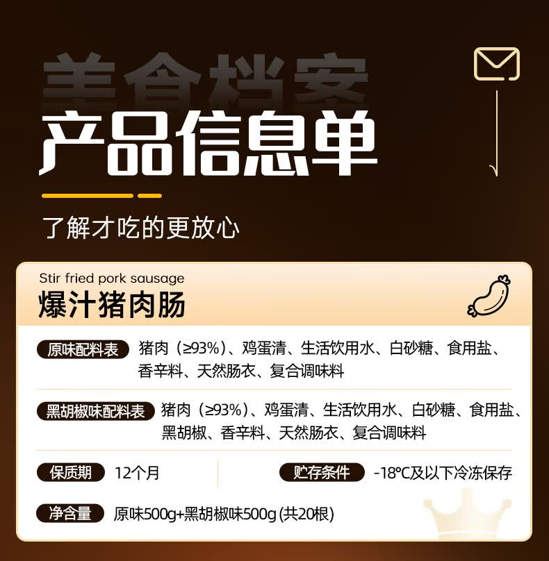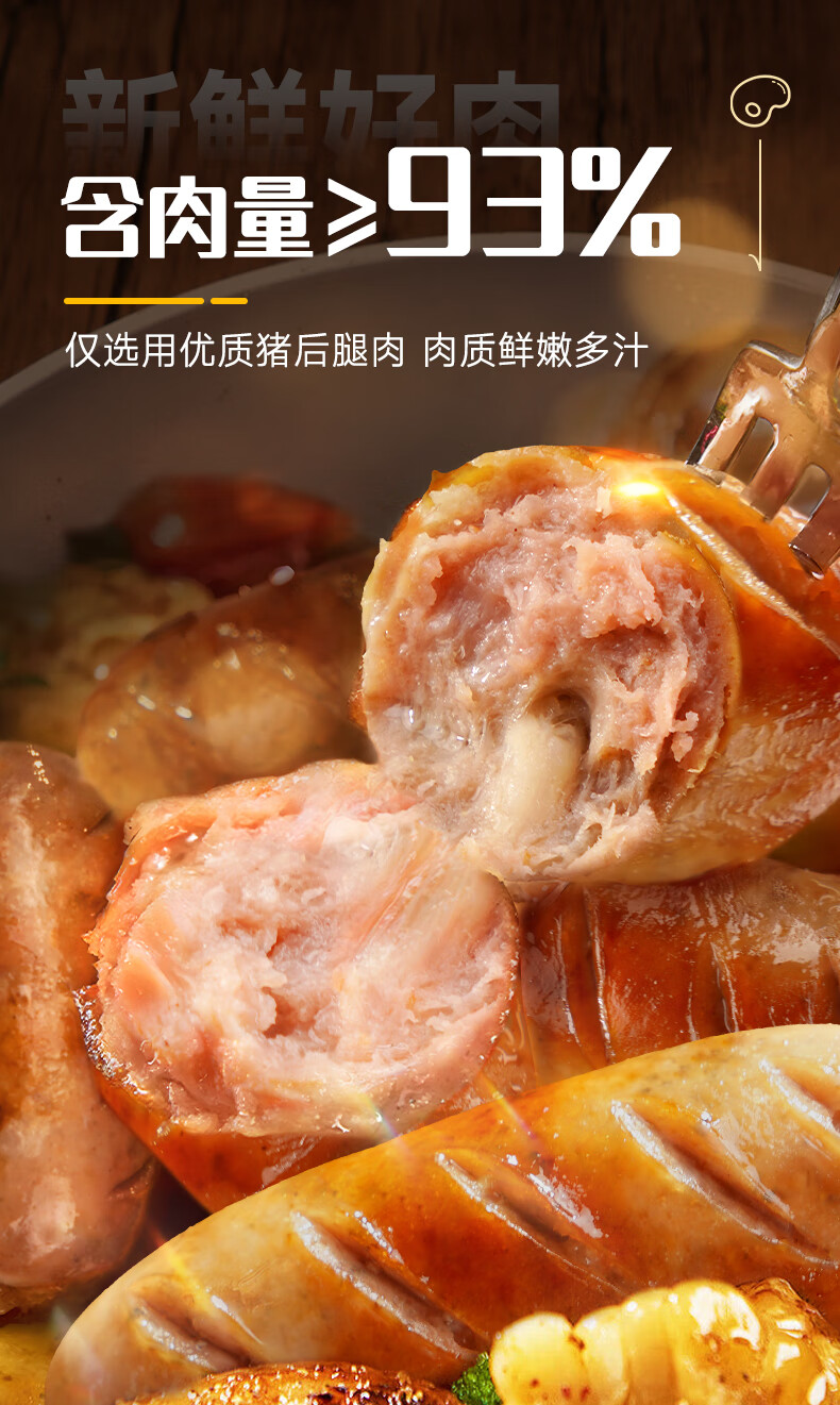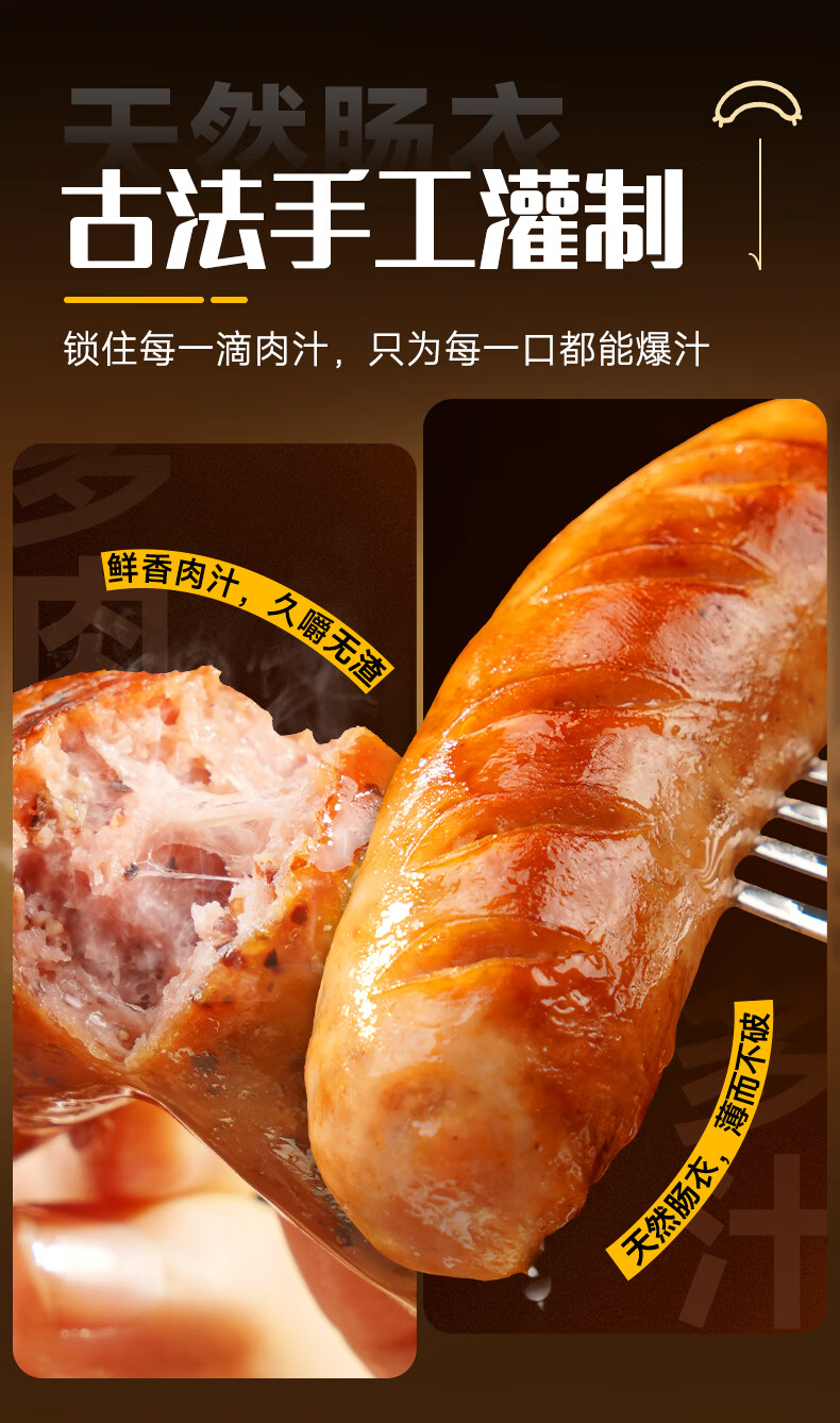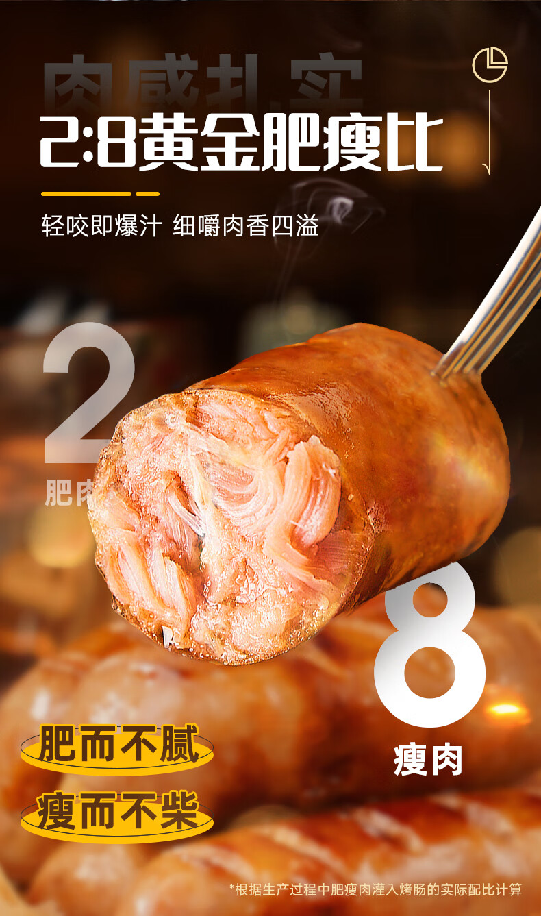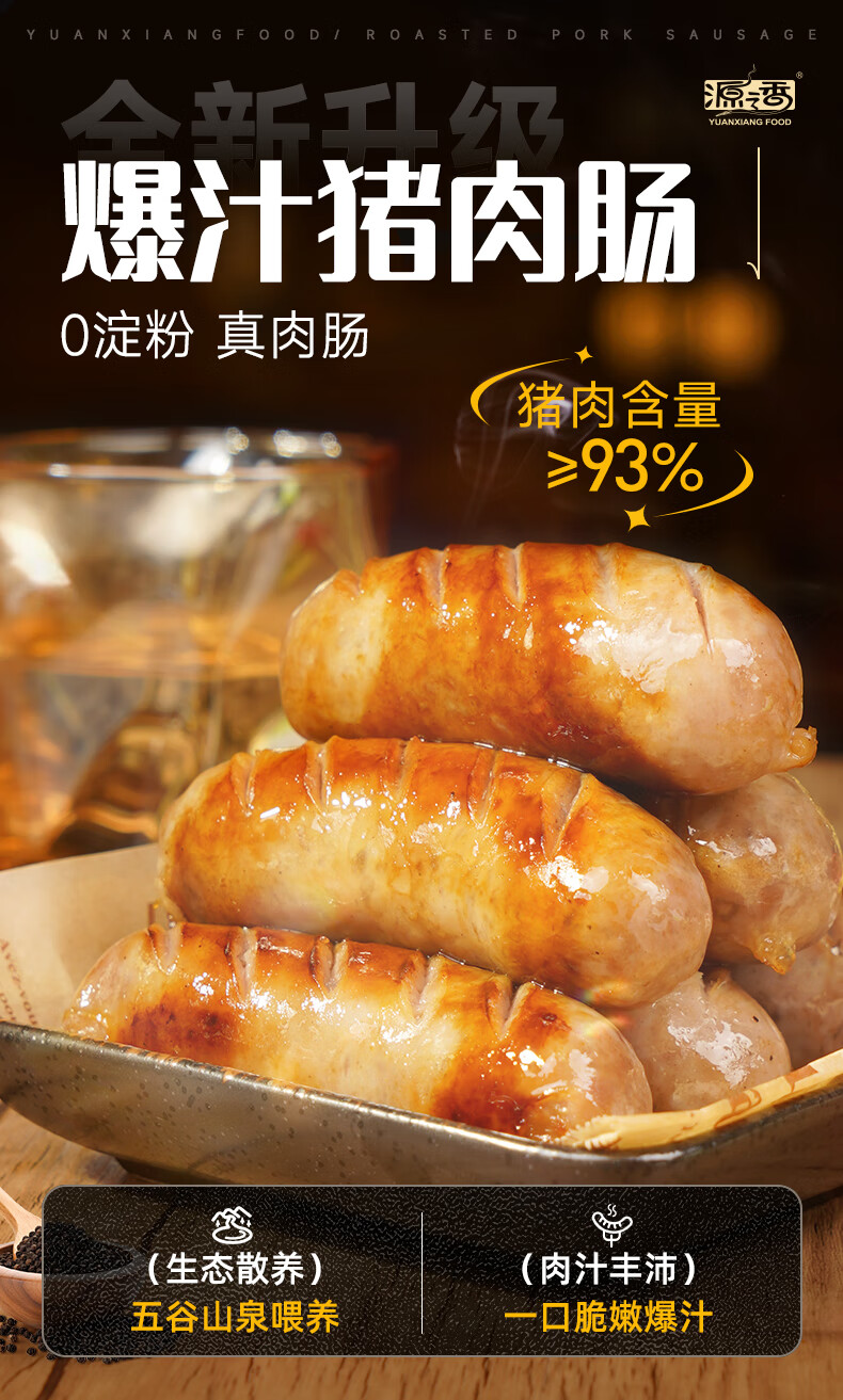 源之香爆汁猪肉肠原味500g+黑椒味500g(20根) 火山石烤肠肉肠热狗肠香肠