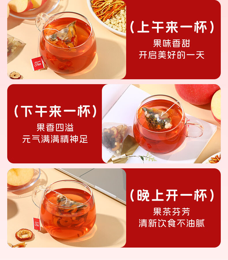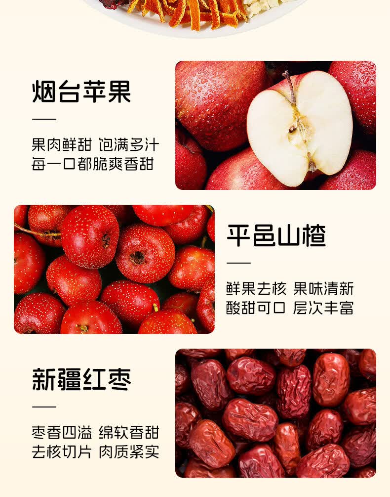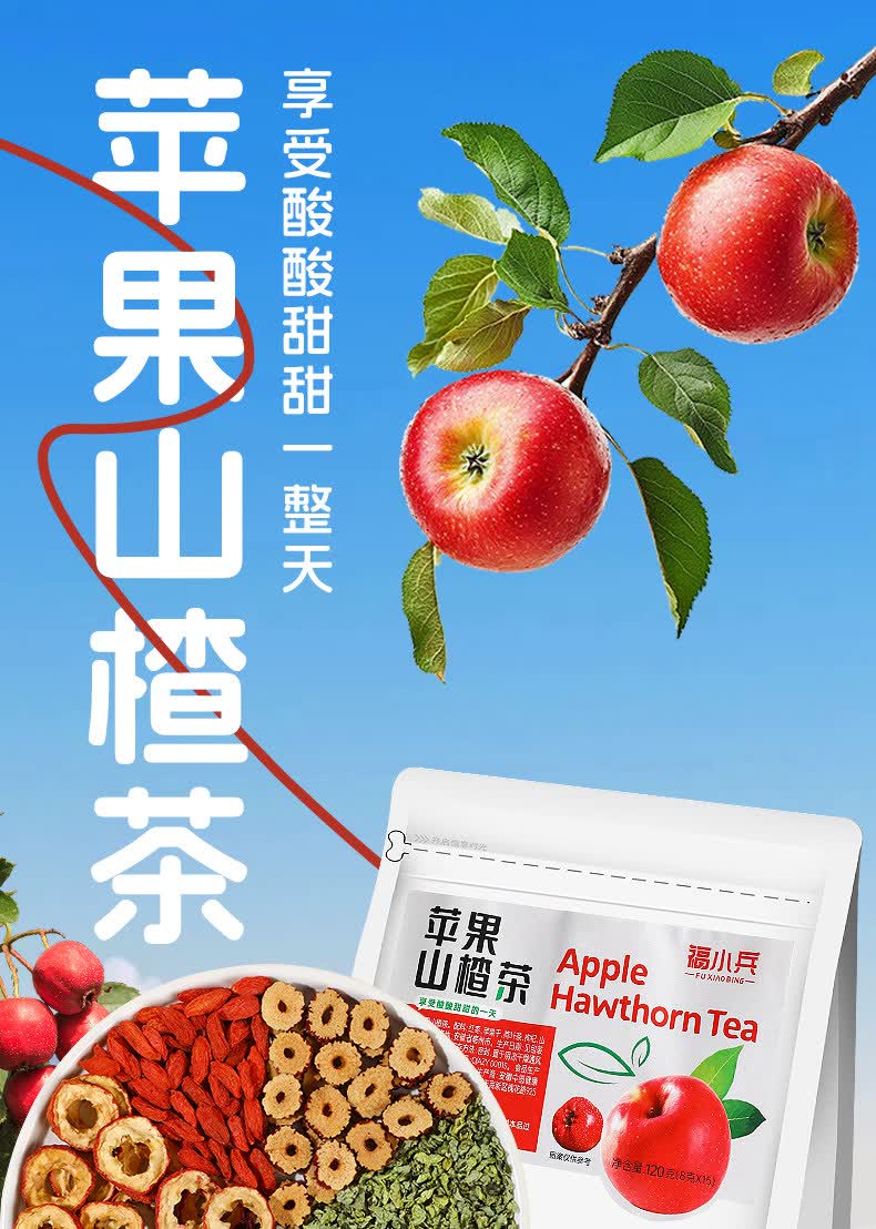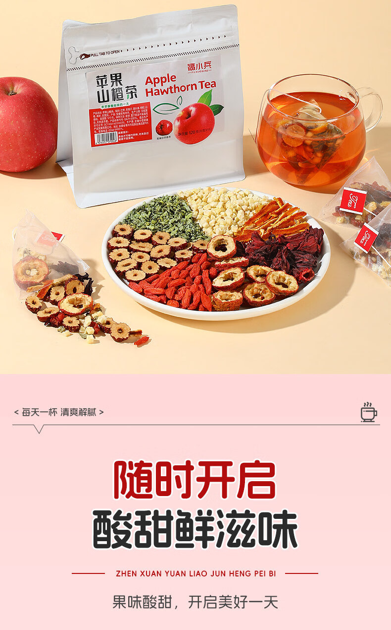 内廷上用苹果山楂红枣茶包 福小兵养生花草茶 四季通用水果茶 酸甜爽口山 加冰糖更好喝苹果山楂茶2包+黄 120g*2袋
