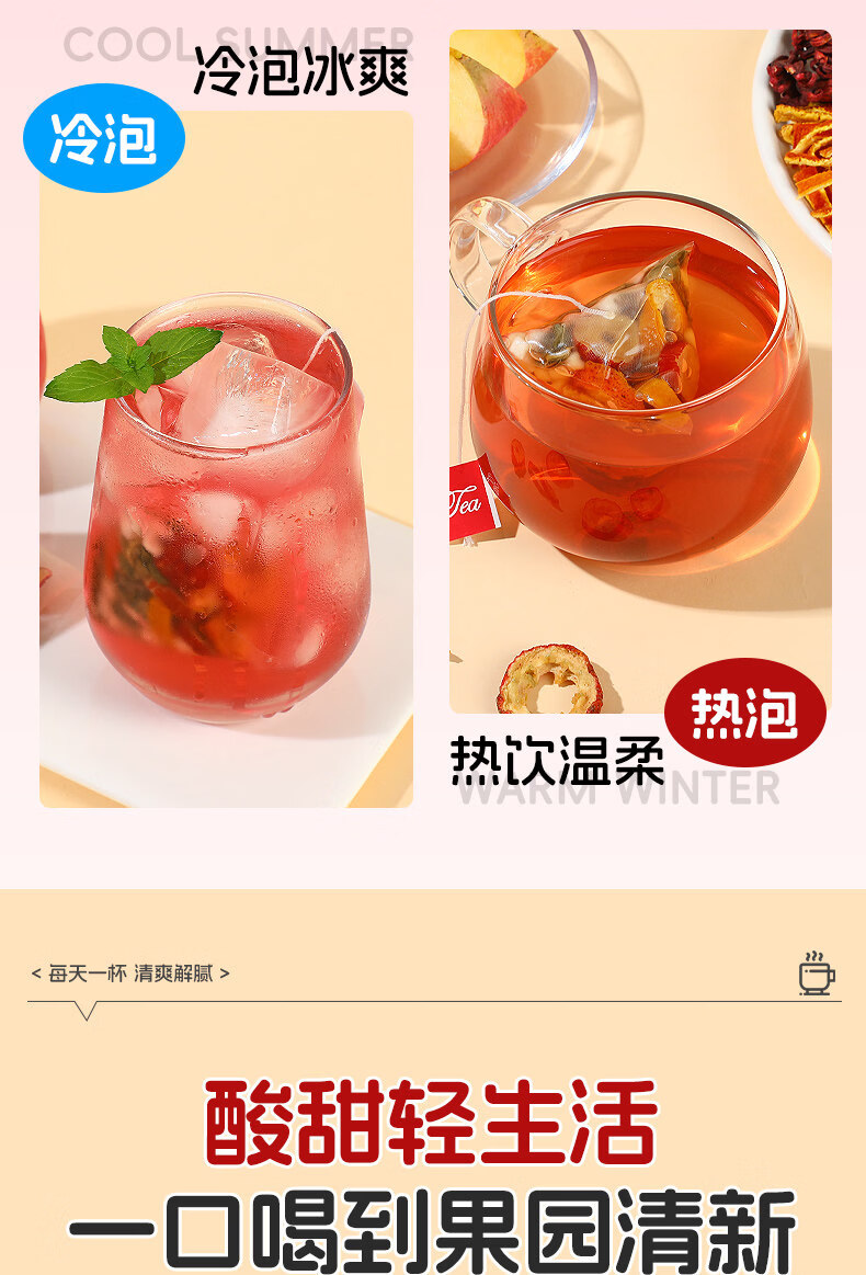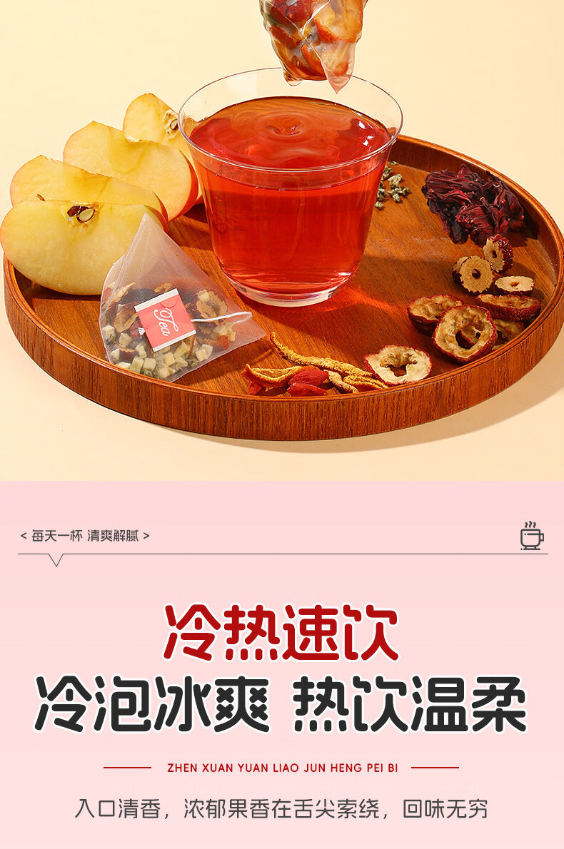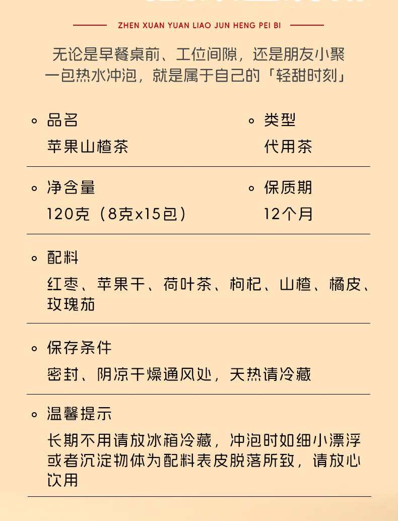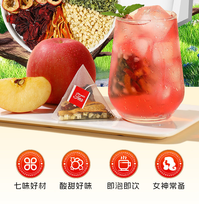 内廷上用苹果山楂红枣茶包 福小兵养生花草茶 四季通用水果茶 酸甜爽口山 加冰糖更好喝苹果山楂茶2包+黄 120g*2袋