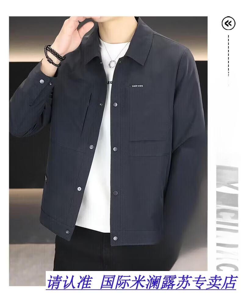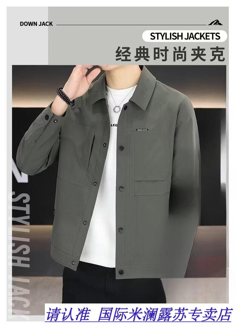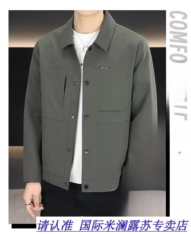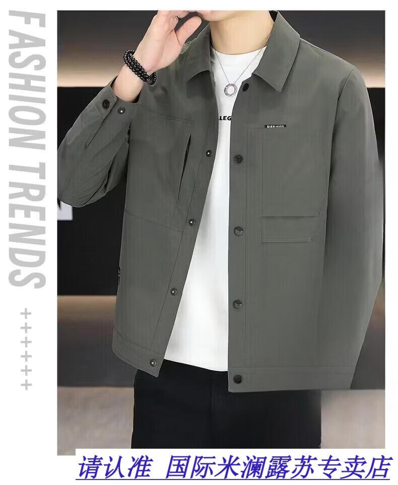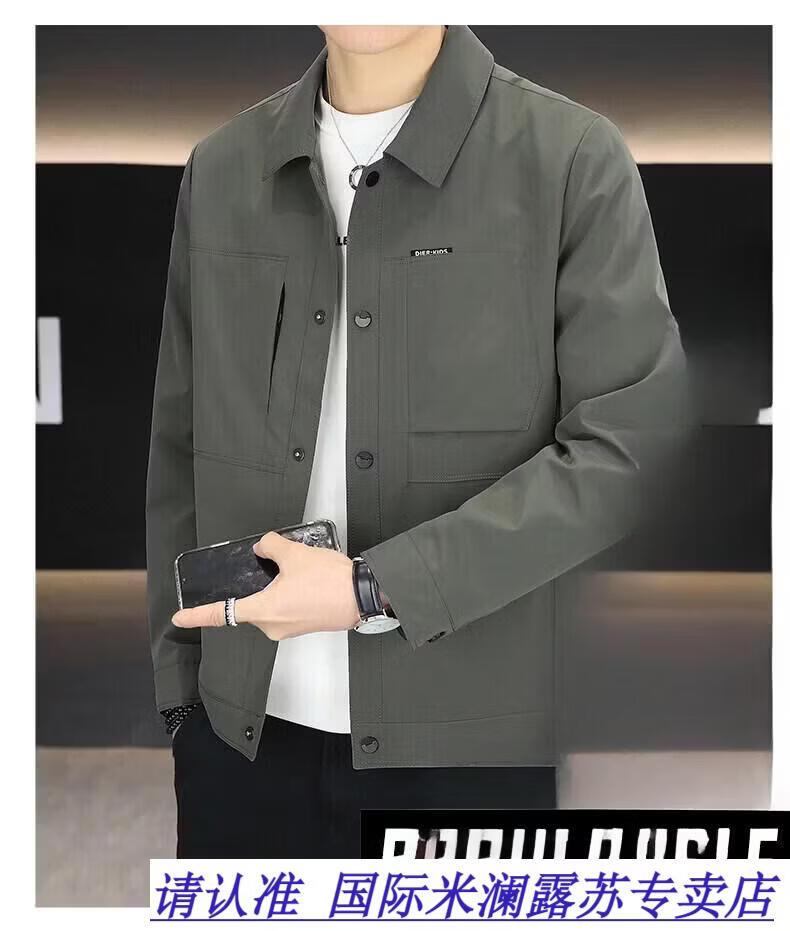 国际米澜高端轻奢翻领春装男士夹克衫春秋季外套2026新款百搭休闲男款通勤 军绿色【281】 L 175【120-140斤】