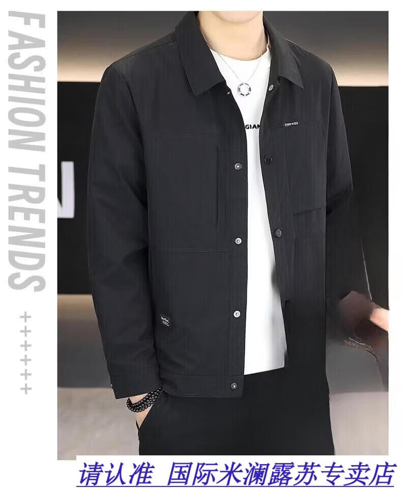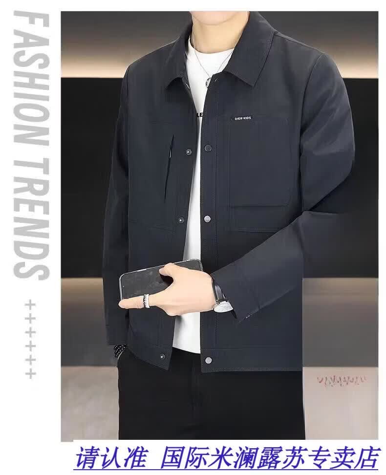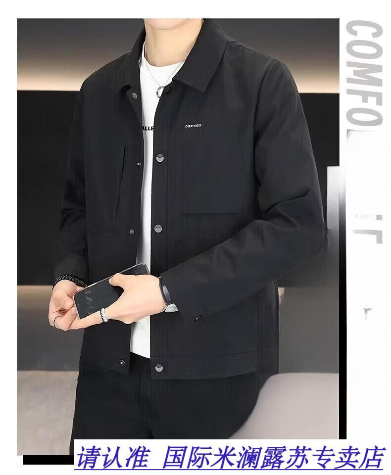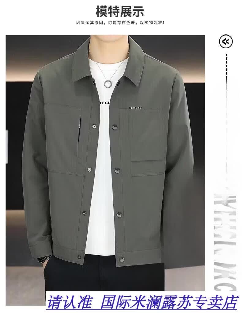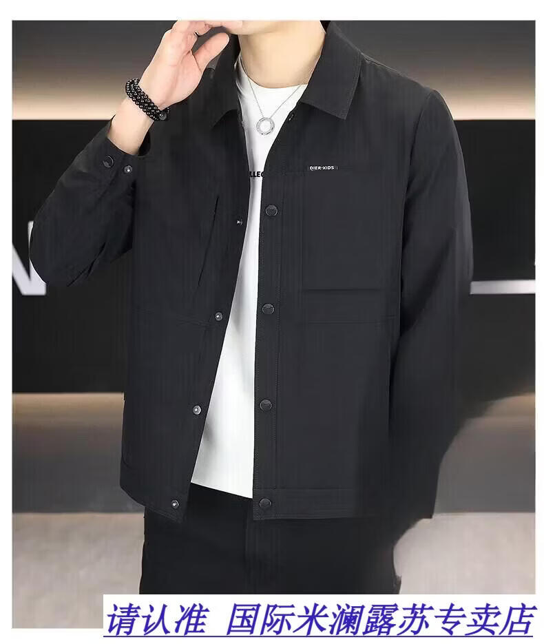 国际米澜高端轻奢翻领春装男士夹克衫春秋季外套2026新款百搭休闲男款通勤 军绿色【281】 L 175【120-140斤】