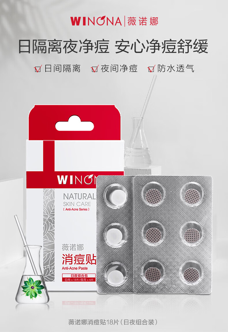 薇诺娜隐形消痘贴18片植物成分痘痘贴舒缓控痘面部护肤品男女