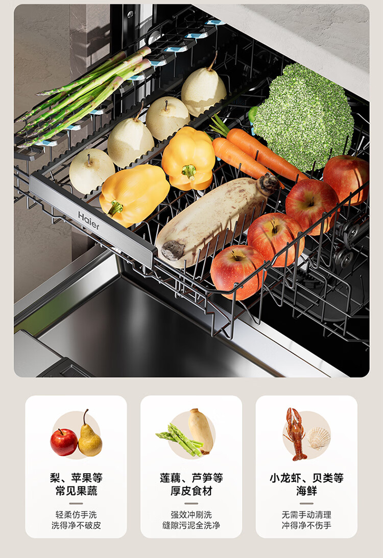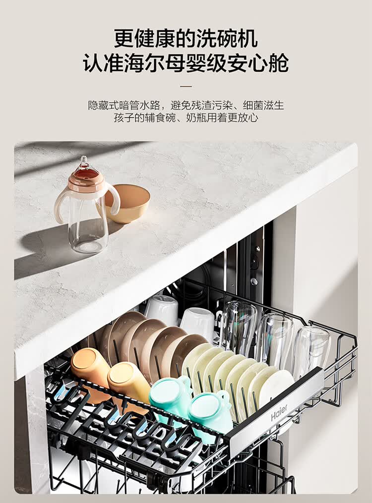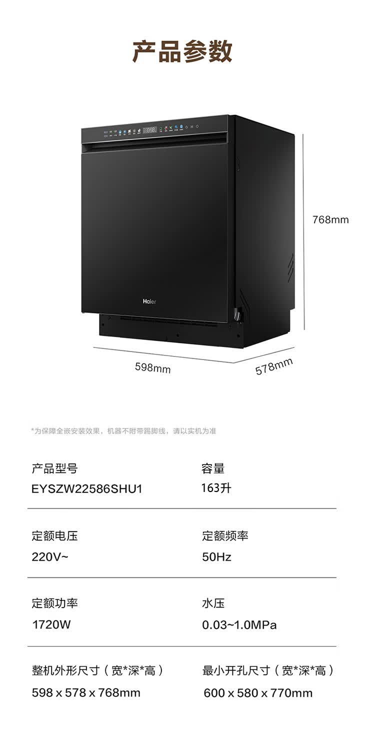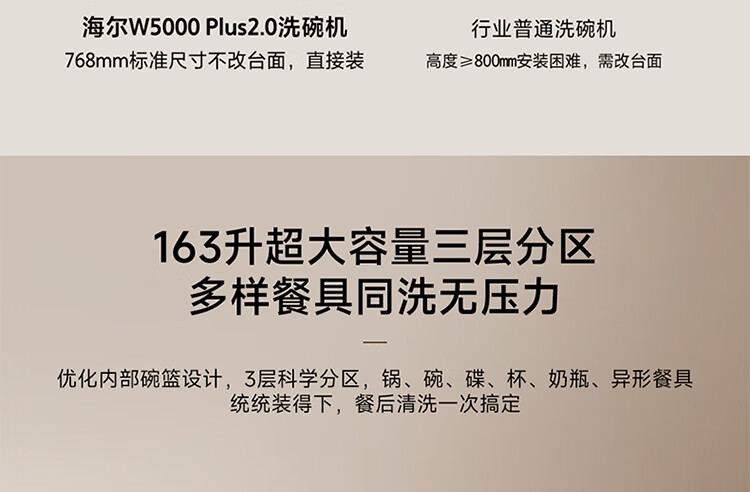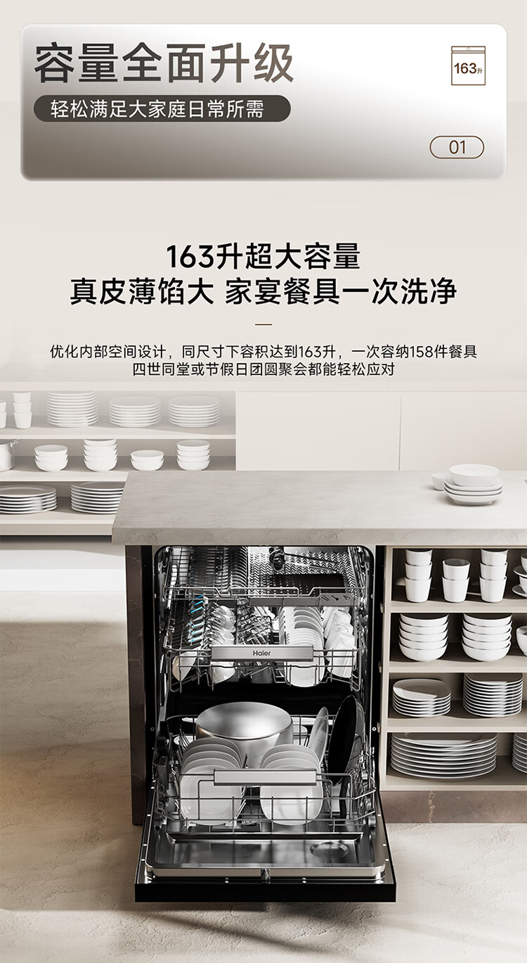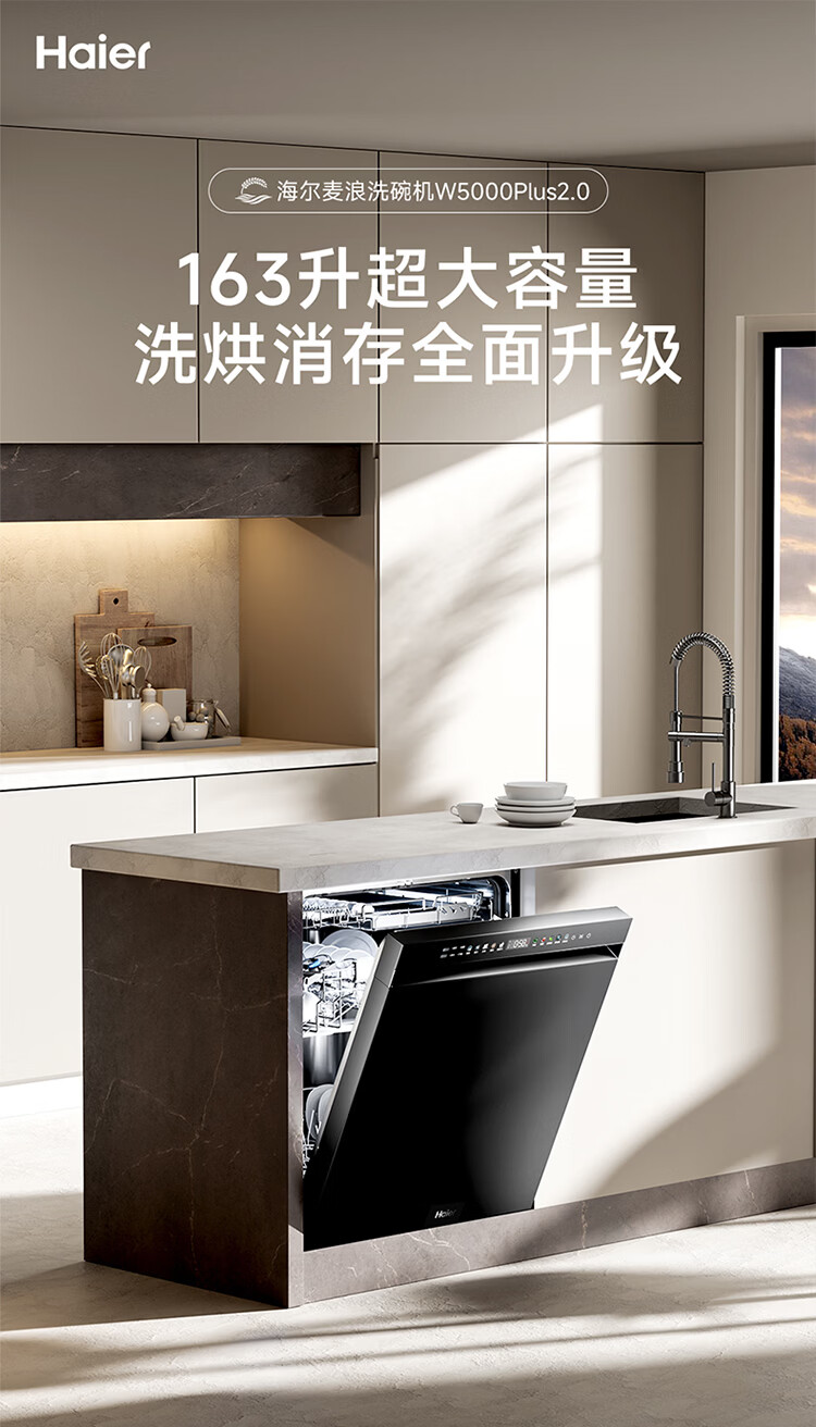 海尔(Haier)嵌入式洗碗机W5000Plus2.0双面洗163升容量七星消杀10天净存消毒碗柜 【顶配163L】W5000Plus2.0 黑色