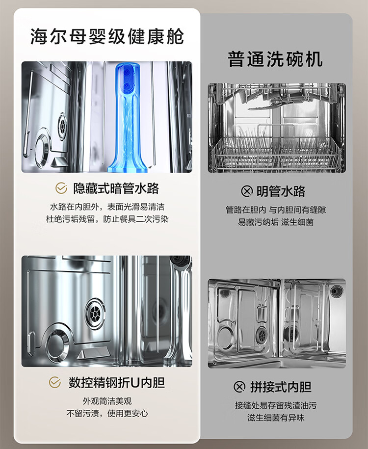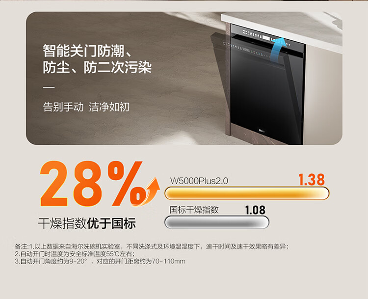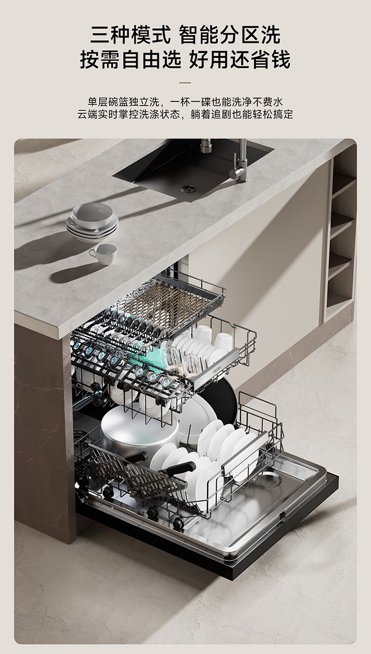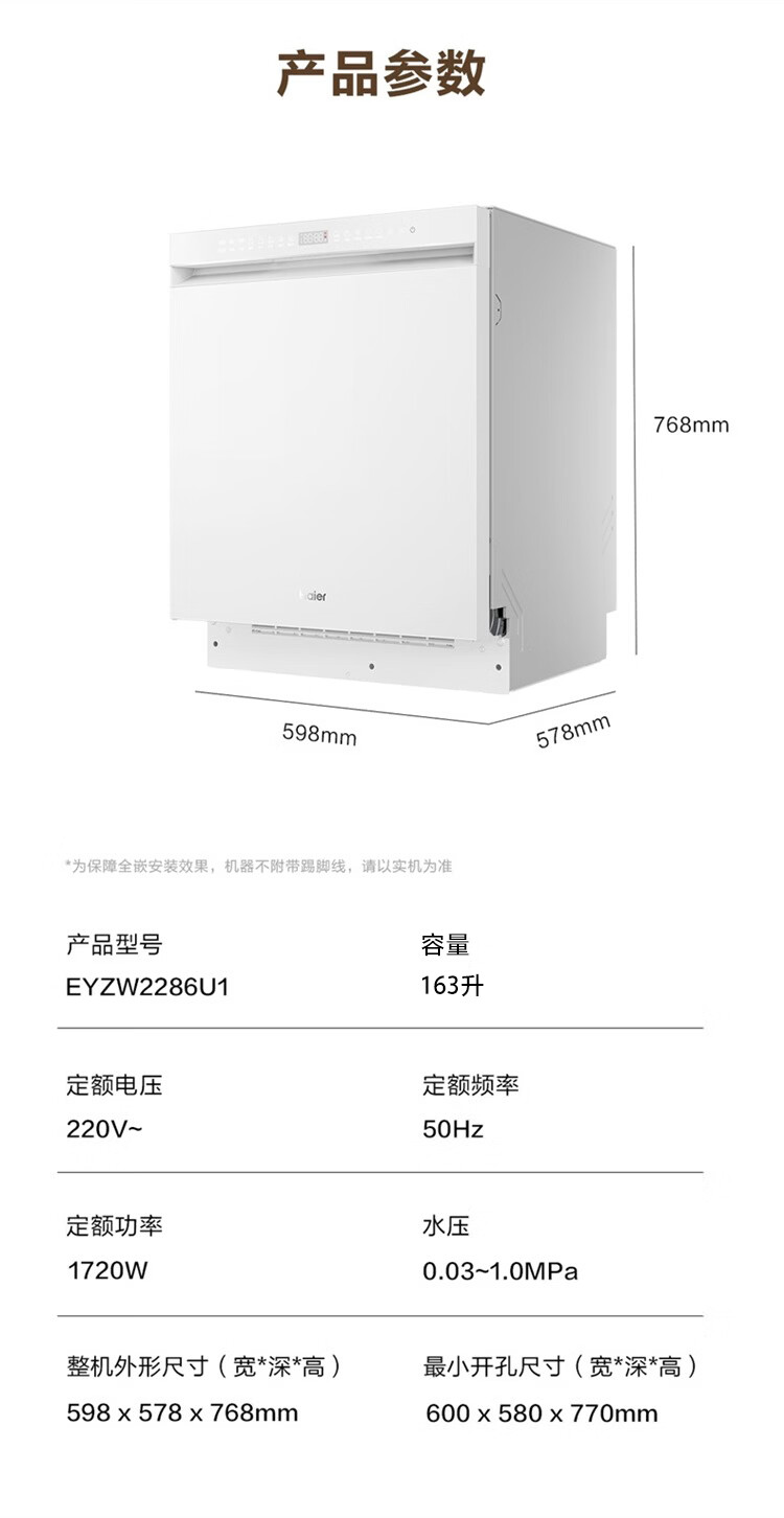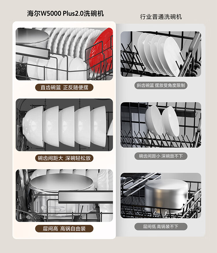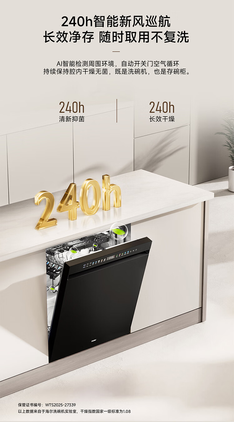 海尔(Haier)嵌入式洗碗机W5000Plus2.0双面洗163升容量七星消杀10天净存消毒碗柜 【顶配163L】W5000Plus2.0 黑色