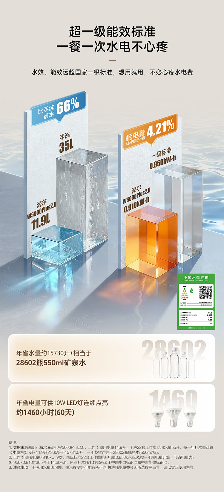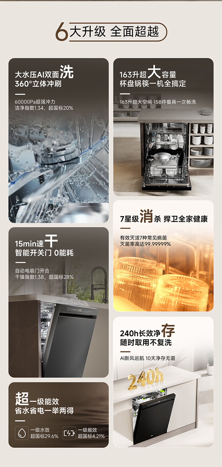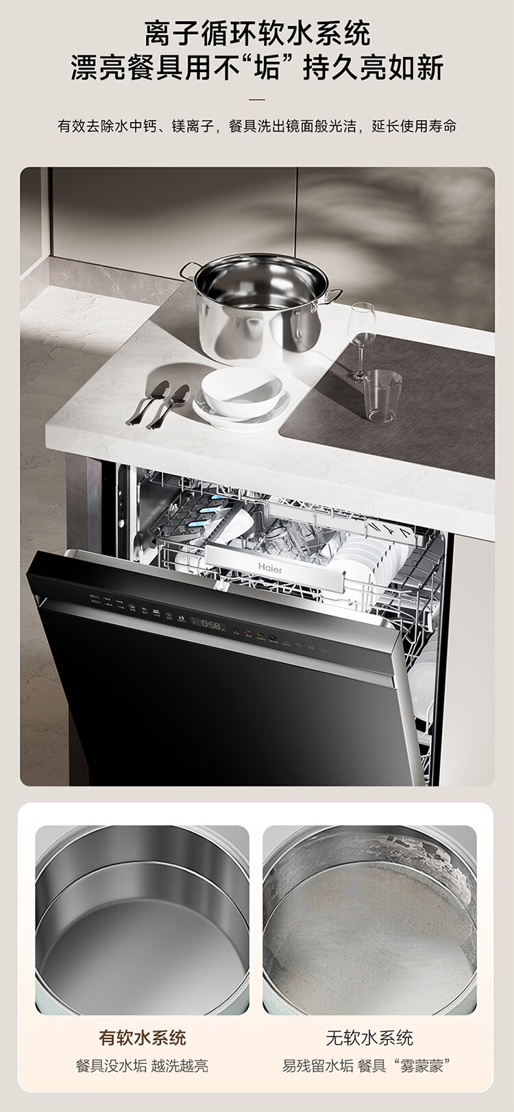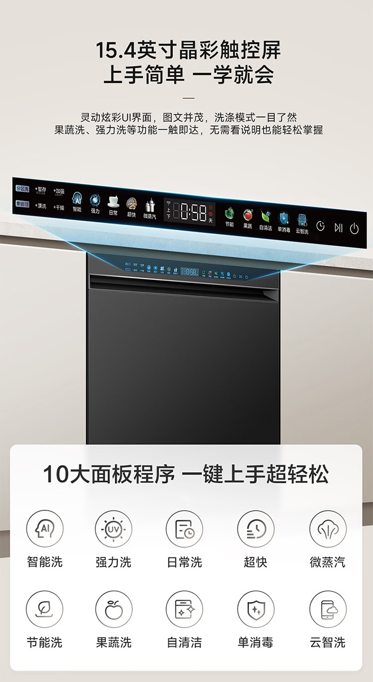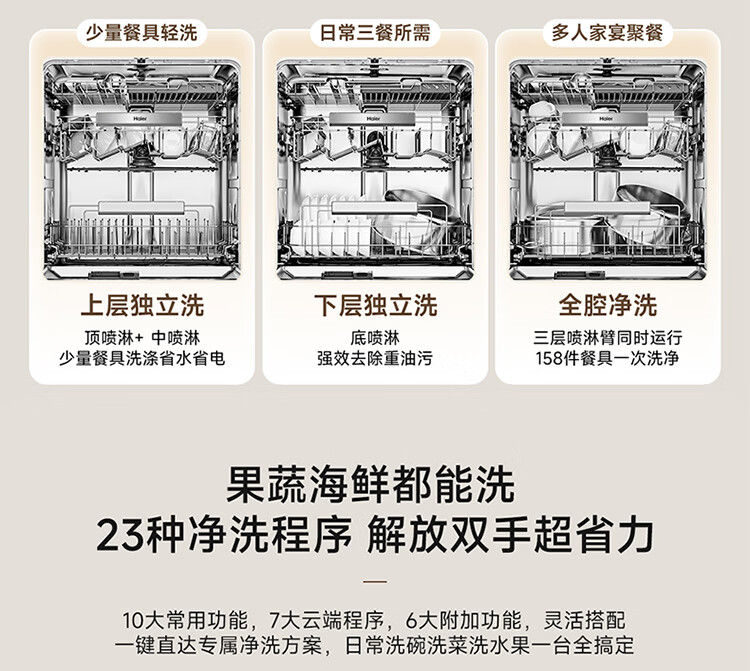 海尔(Haier)嵌入式洗碗机W5000Plus2.0双面洗163升容量七星消杀10天净存消毒碗柜 【顶配163L】W5000Plus2.0 黑色