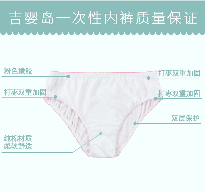 吉婴岛一次性内裤女EO灭菌独立包装旅行酒店棉柔三角裤 12条纯棉粉边三角裤 M(90斤以下