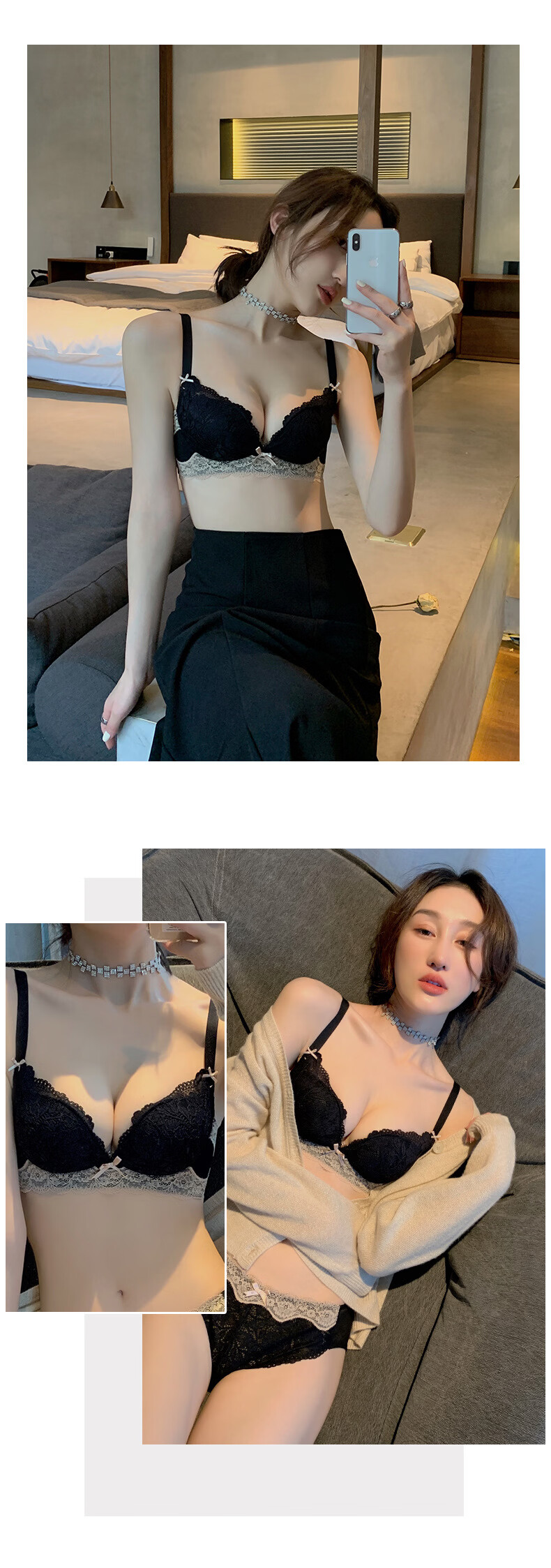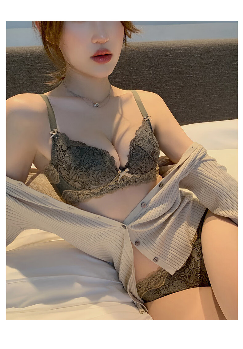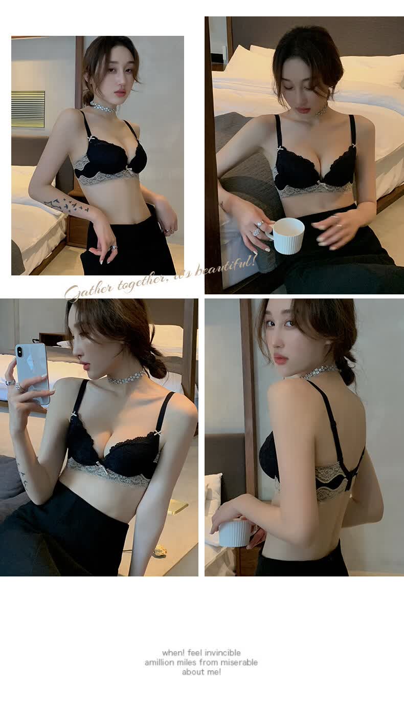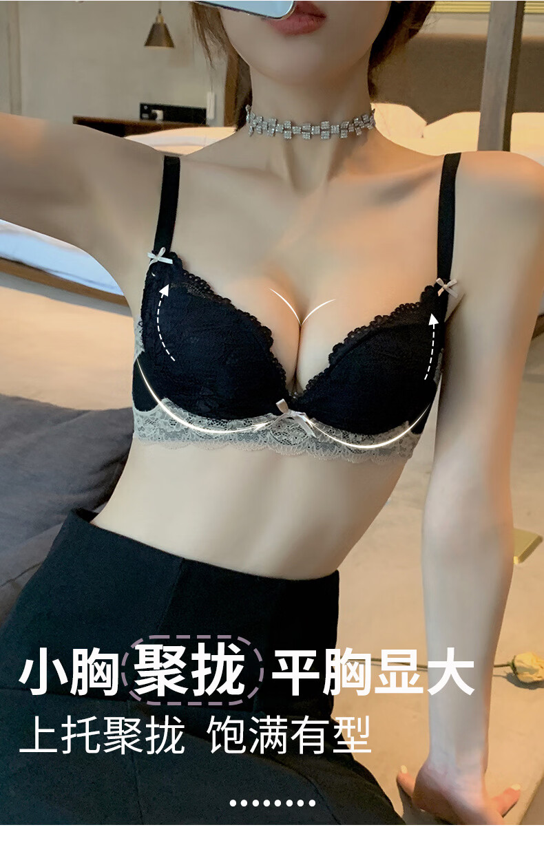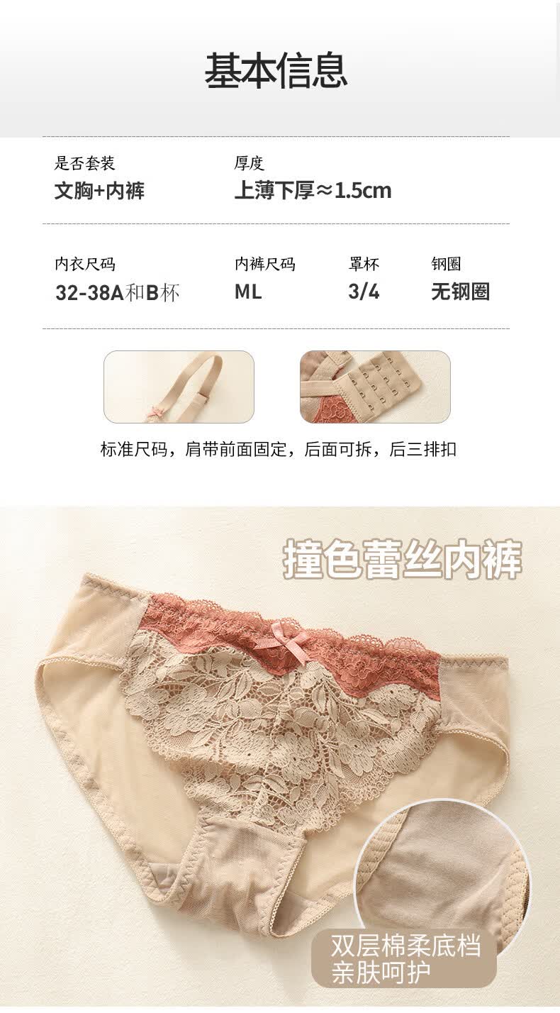 雨恋馨性感内衣女小胸聚拢上托调整型收副乳无钢圈舒适蕾丝文胸罩套装 奶油白套装 XL