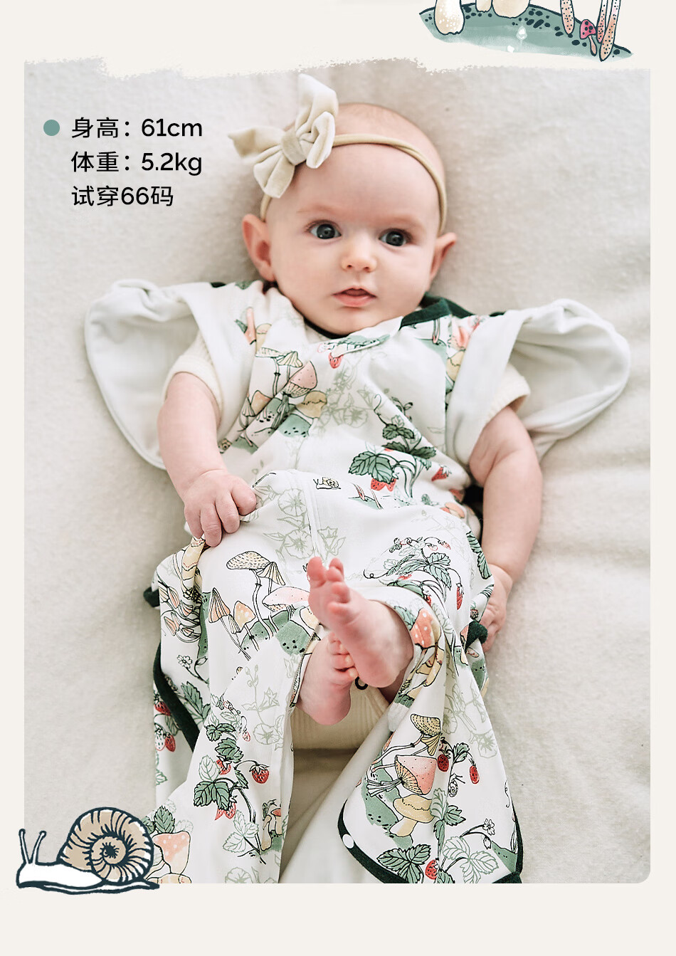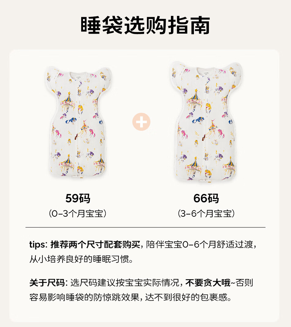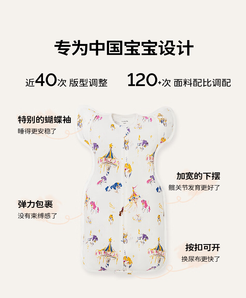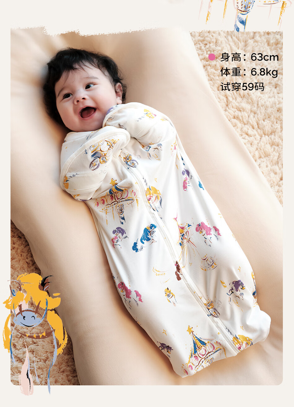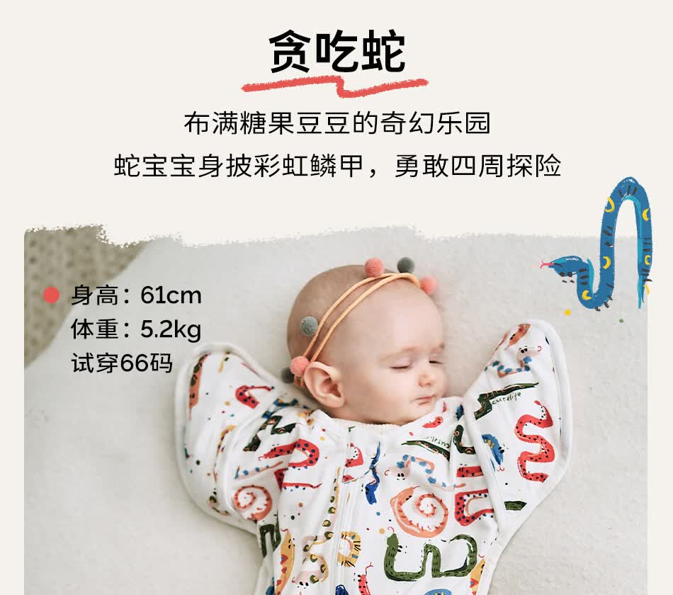 Cutelife竹棉防惊跳睡袋新生儿马宝宝婴儿投降包裹襁褓巾生肖限定0-6个月 忽而春光【单层竹棉】推荐室温26度+ 66cm【3-6月龄】