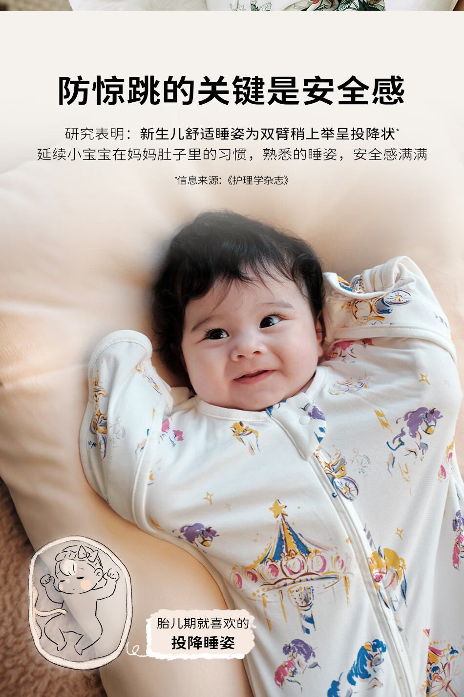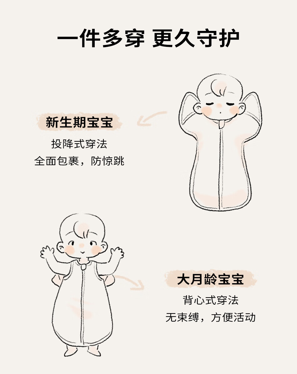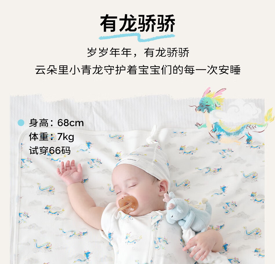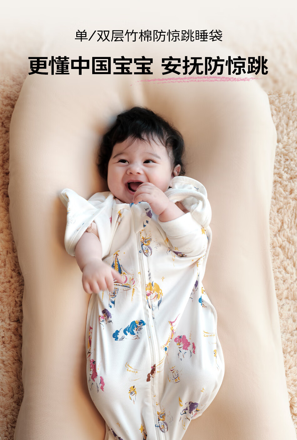 Cutelife竹棉防惊跳睡袋新生儿马宝宝婴儿投降包裹襁褓巾生肖限定0-6个月 忽而春光【单层竹棉】推荐室温26度+ 66cm【3-6月龄】