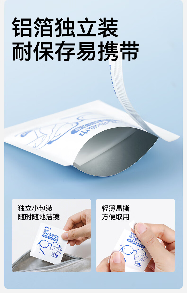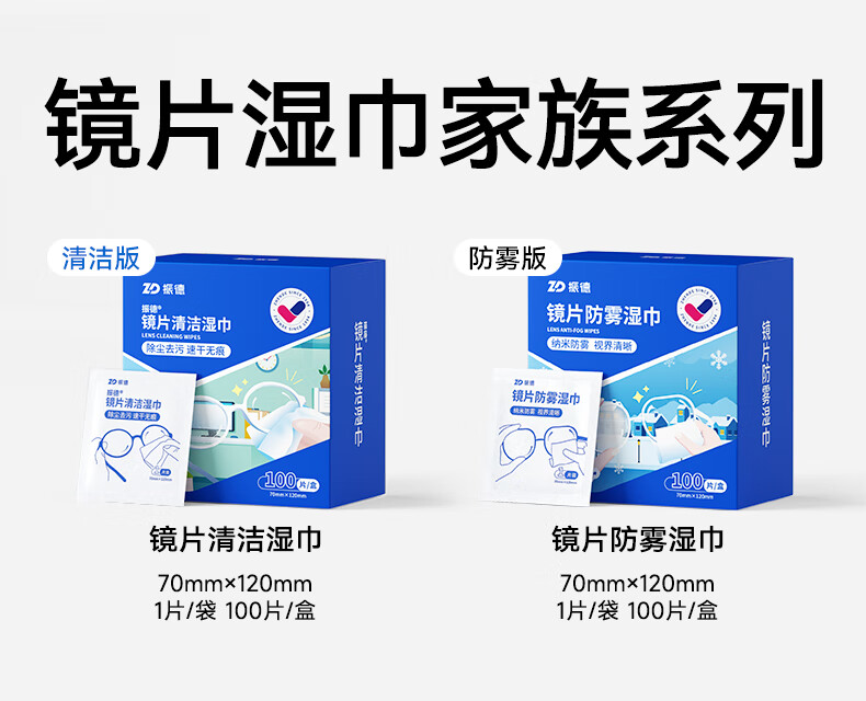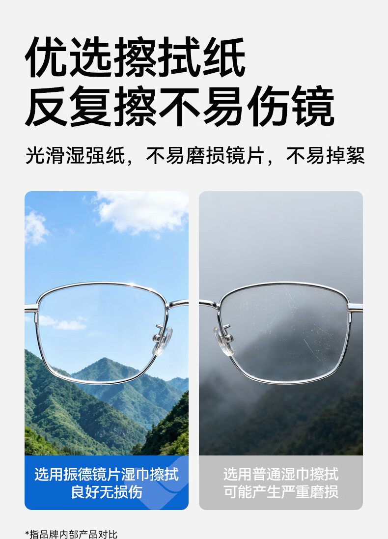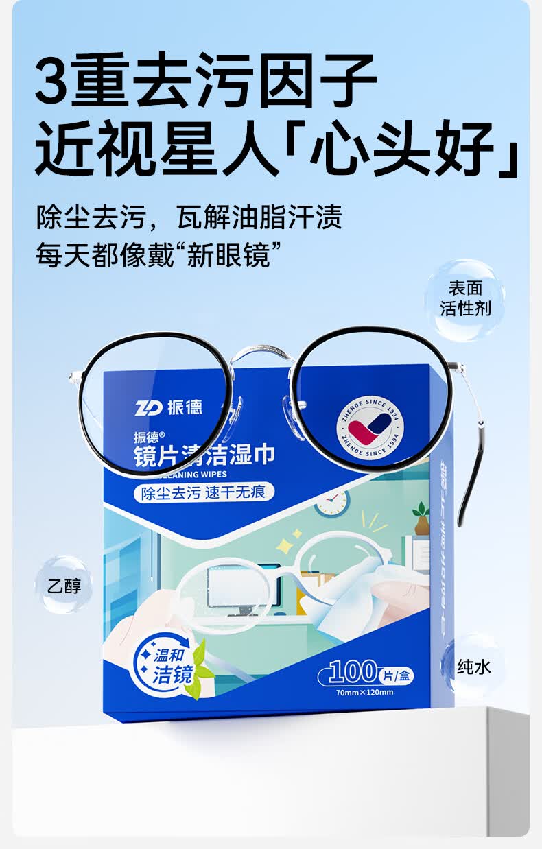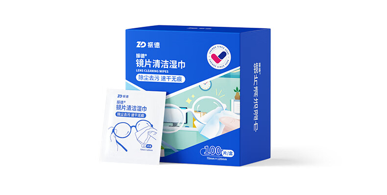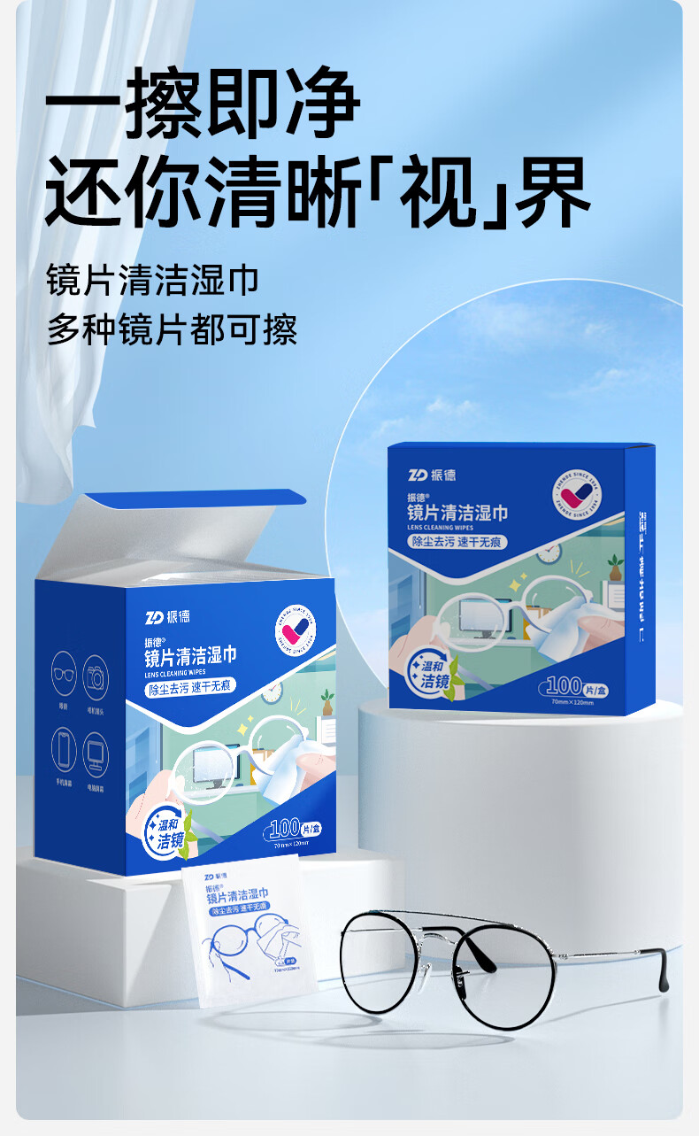 振德镜片清洁湿巾眼镜手机屏幕镜头清洁擦拭纸 布速干不易留痕100片
