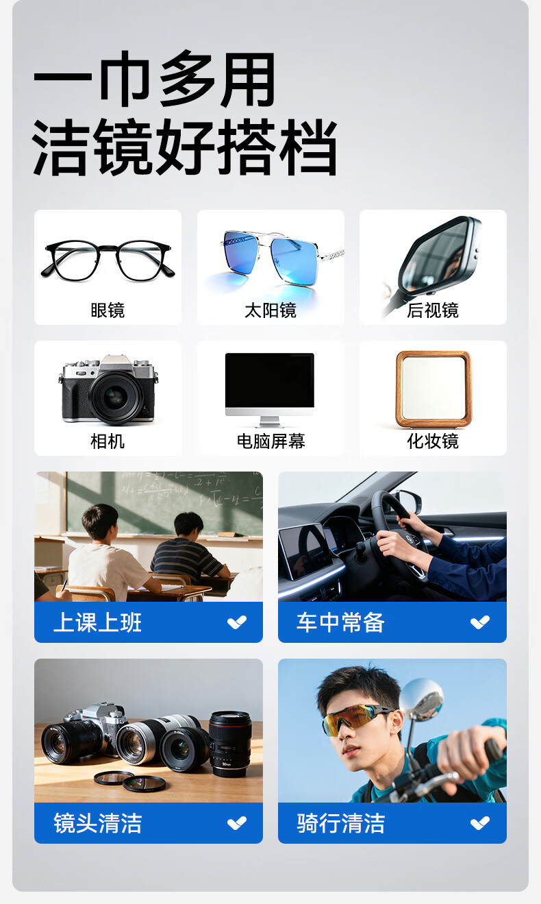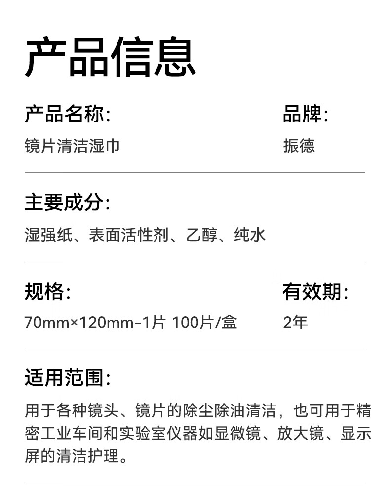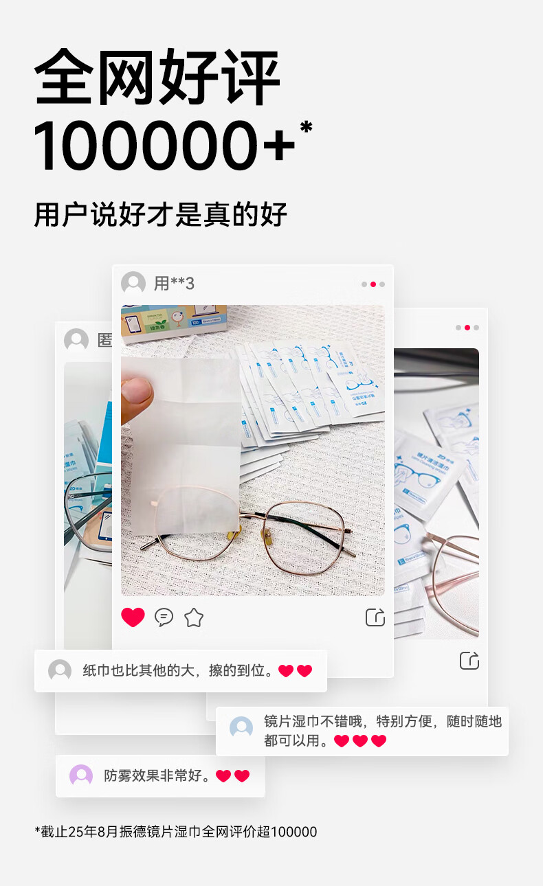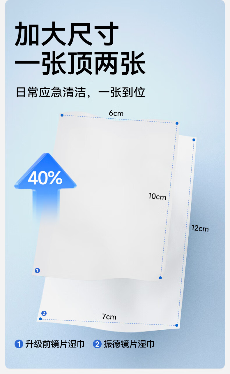 振德镜片清洁湿巾眼镜手机屏幕镜头清洁擦拭纸 布速干不易留痕100片