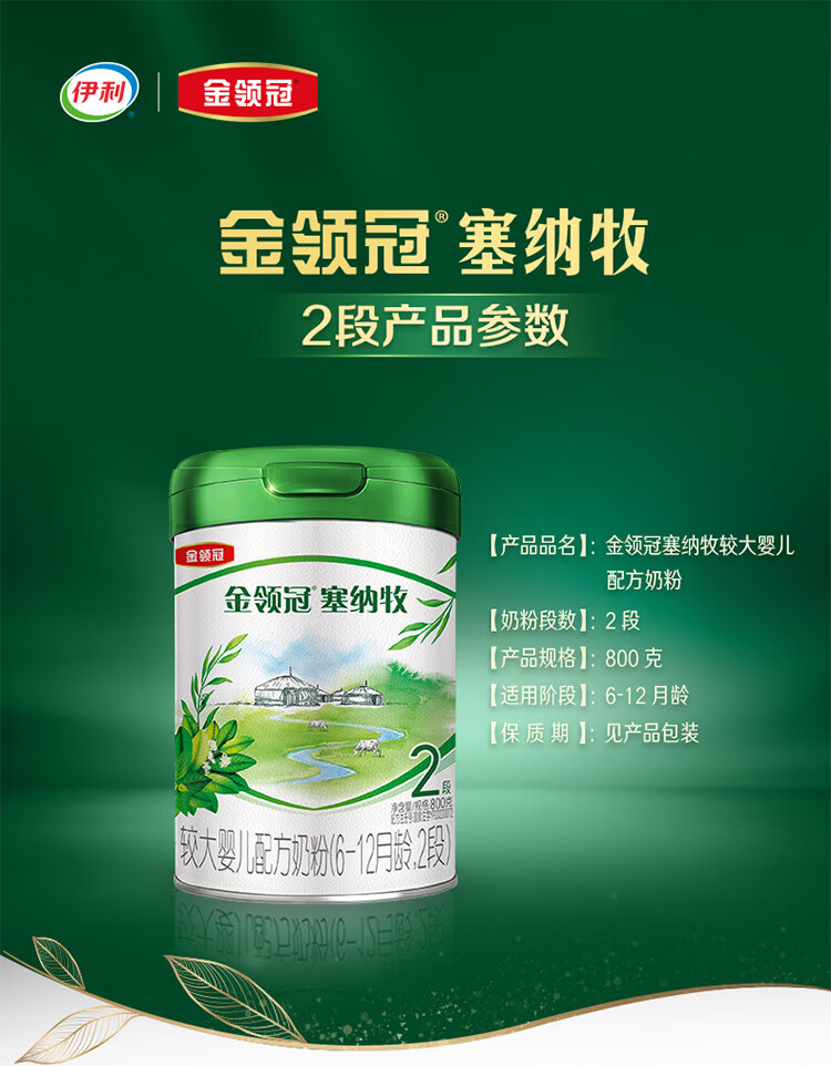 伊利金领冠塞纳牧有机奶粉2段(6-12月)800g*1罐 首款HMO/28天新鲜到家