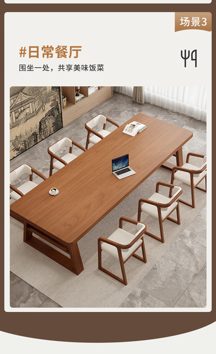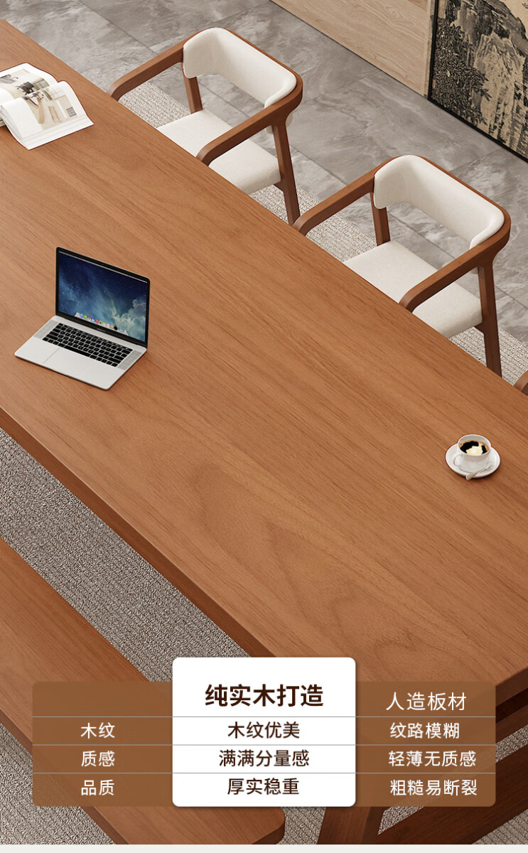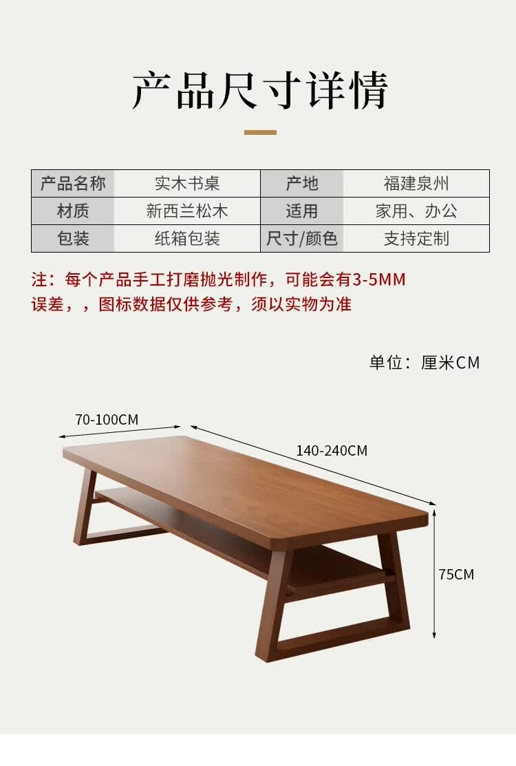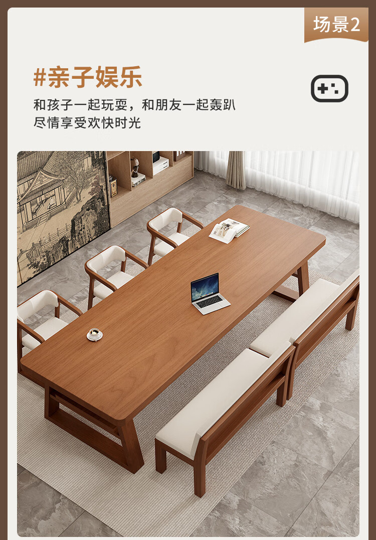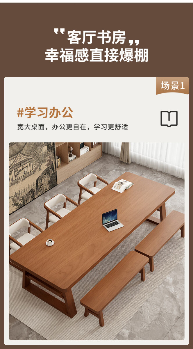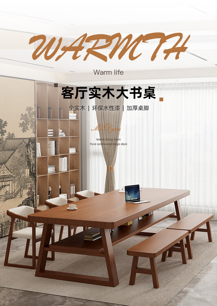 溥畔大长书桌客厅双层大板桌现代简约阅读桌工作台长条桌 长240宽100高75板厚8CM单桌