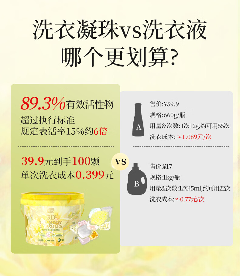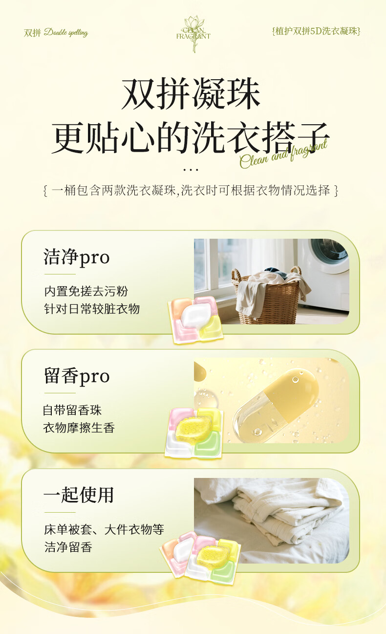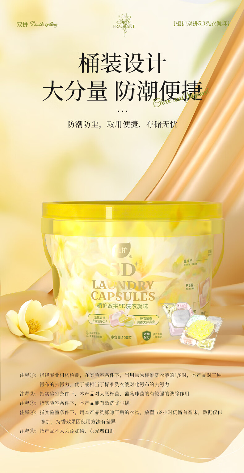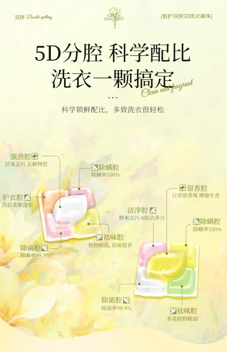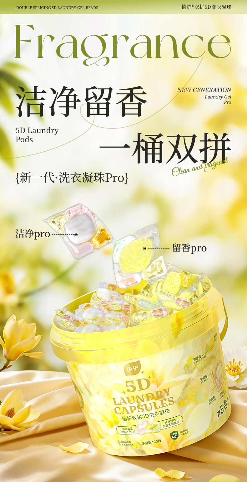 植护5D双拼洗衣凝珠大桶装持久留香三合一洗衣球香氛去污 【鎏光花园】100颗*1桶