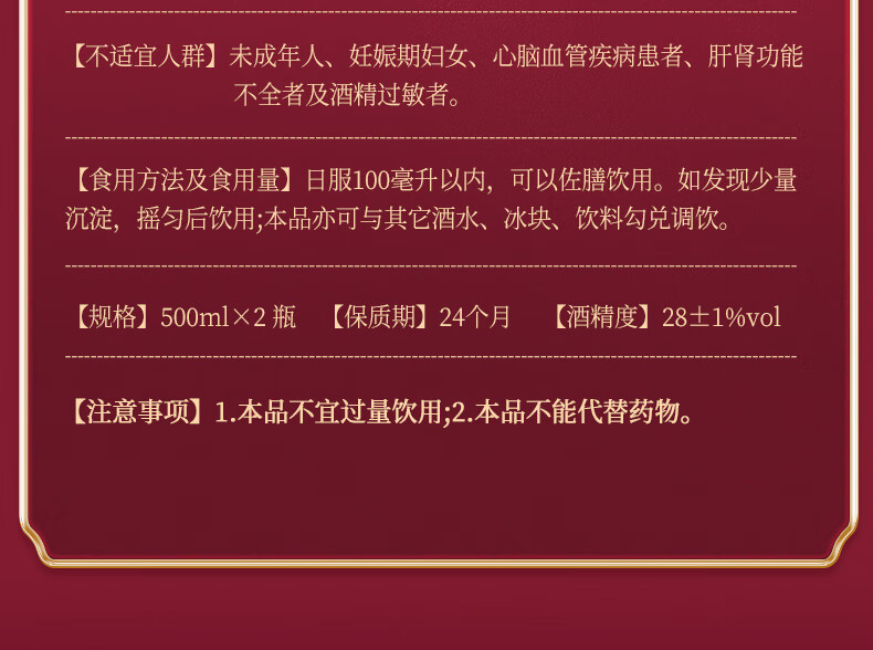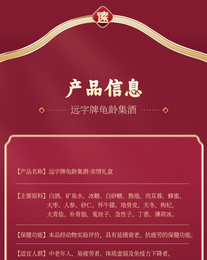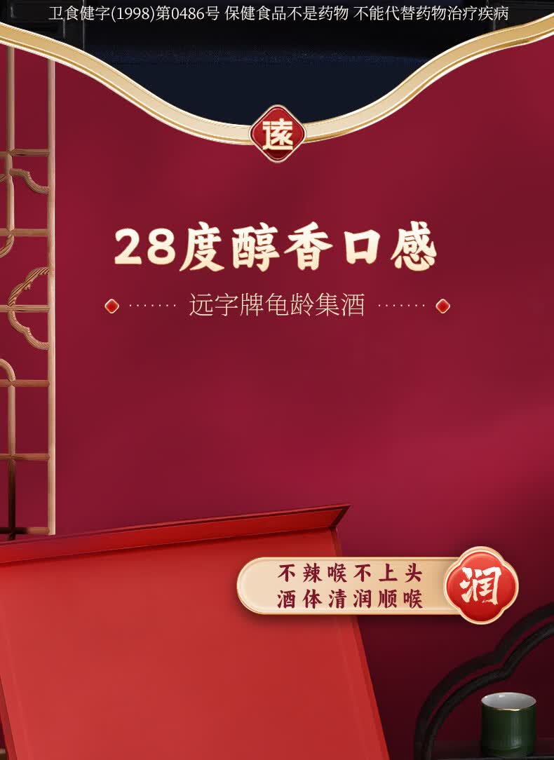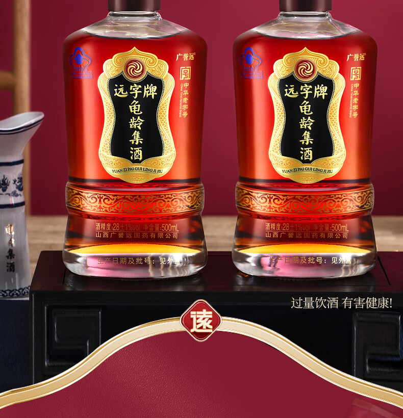 广誉远远字牌龟龄集酒500ml*2瓶亲情礼盒保健酒礼盒装 有效期至26年12月 28度 500mL 4瓶 (2礼盒)