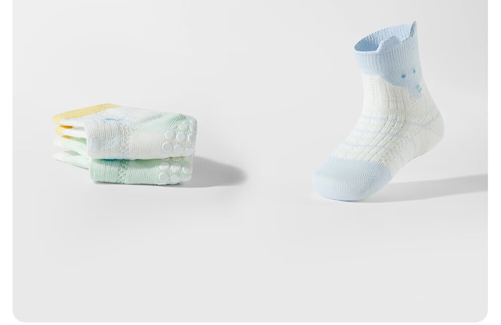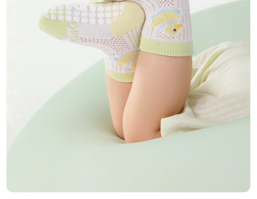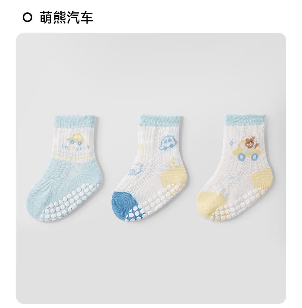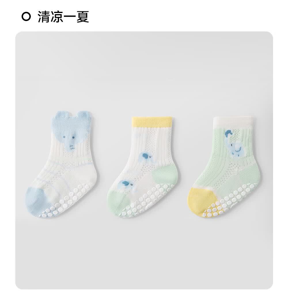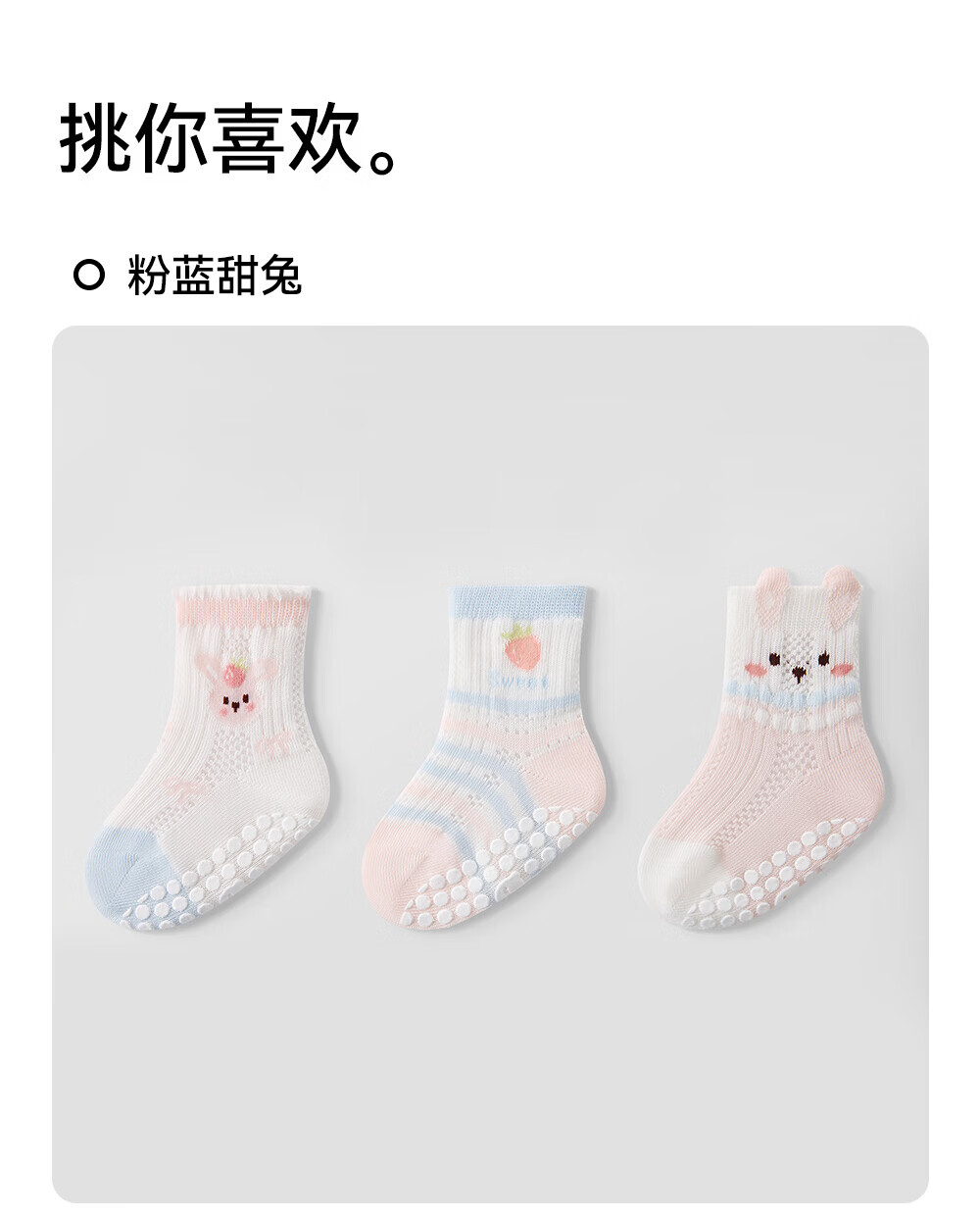 贝肽斯婴儿袜子夏季薄款网眼男女儿童室内学步中筒袜子1-3岁防滑袜子 粉蓝甜兔 3双 1-3岁 【适合脚长12-14cm】