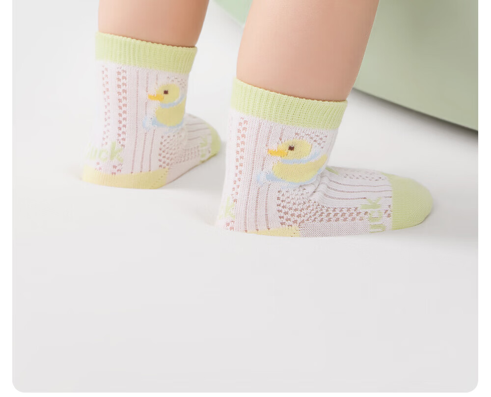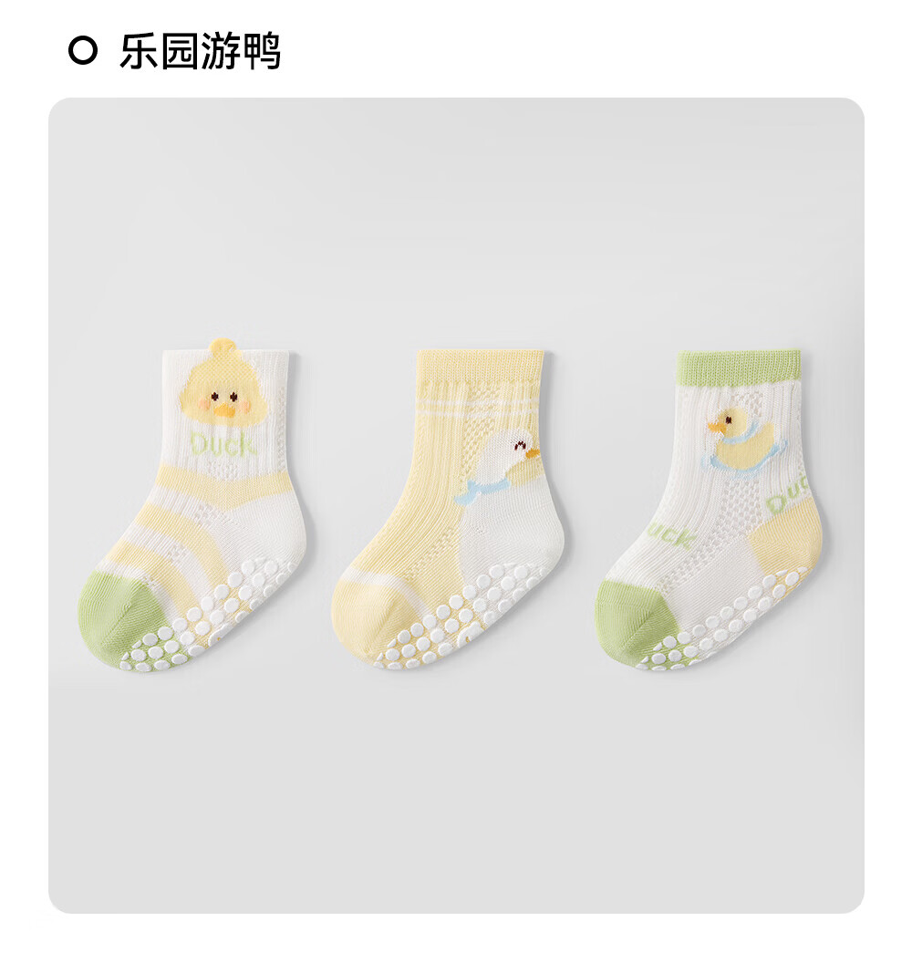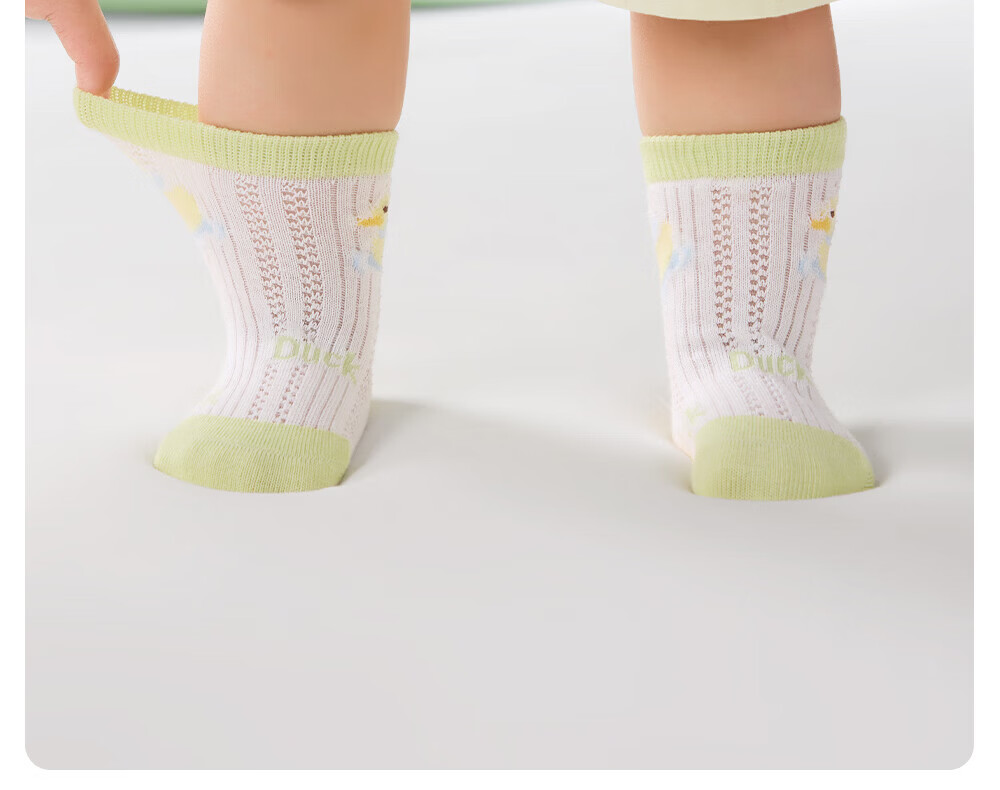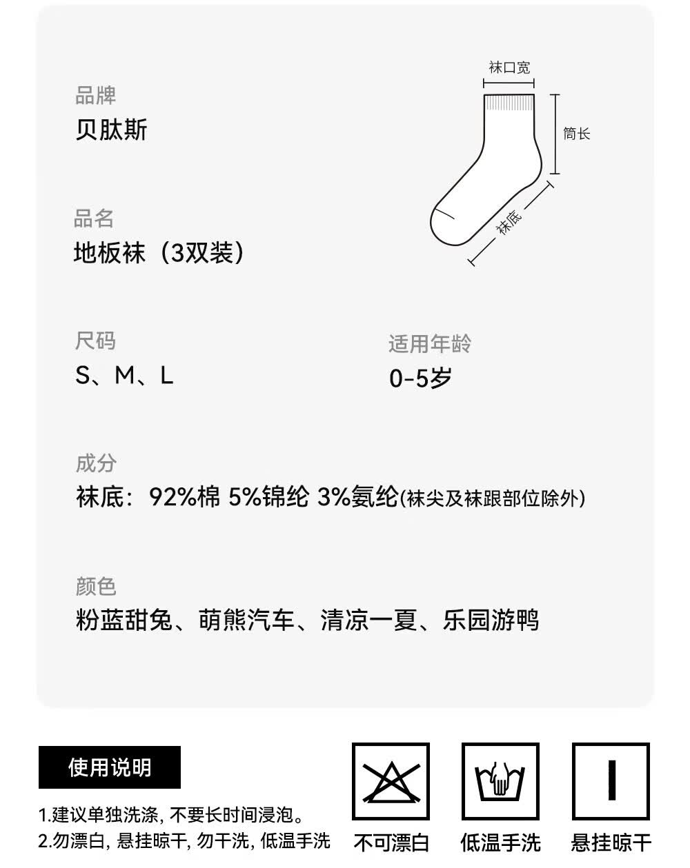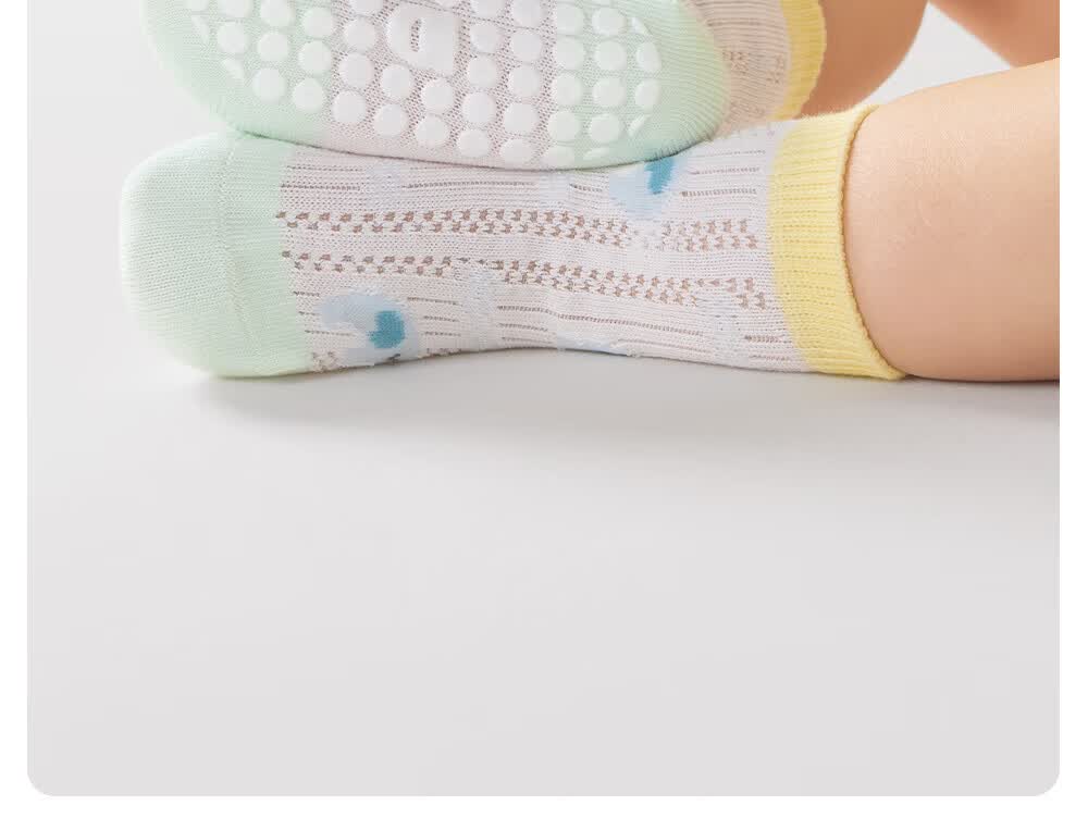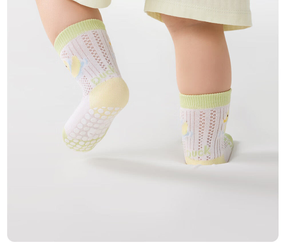 贝肽斯婴儿袜子夏季薄款网眼男女儿童室内学步中筒袜子1-3岁防滑袜子 粉蓝甜兔 3双 1-3岁 【适合脚长12-14cm】