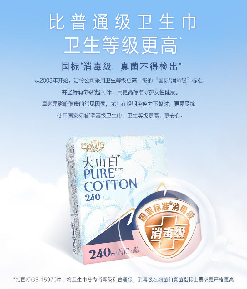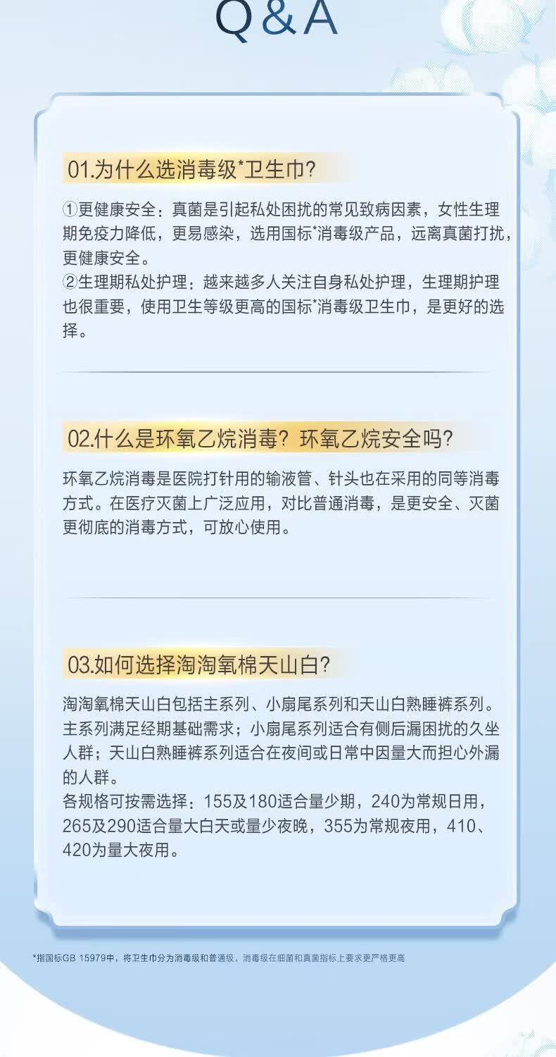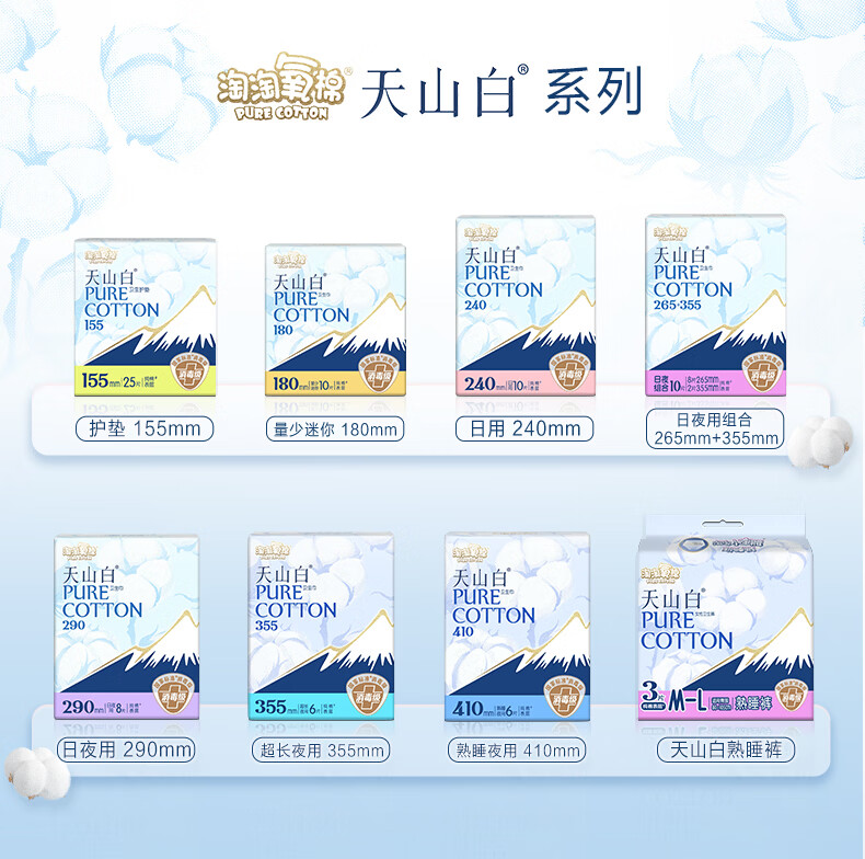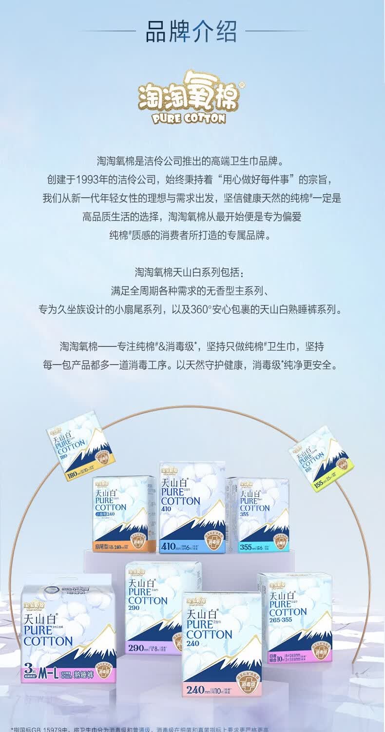 淘淘氧棉天山白卫生巾女日用夜用组合装消毒级超薄透气纯棉学生少女姨妈巾 超长夜用 355mm 24片