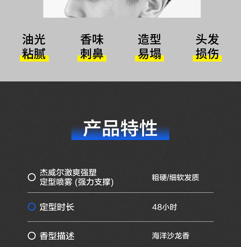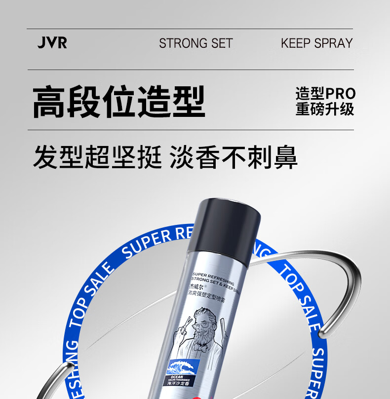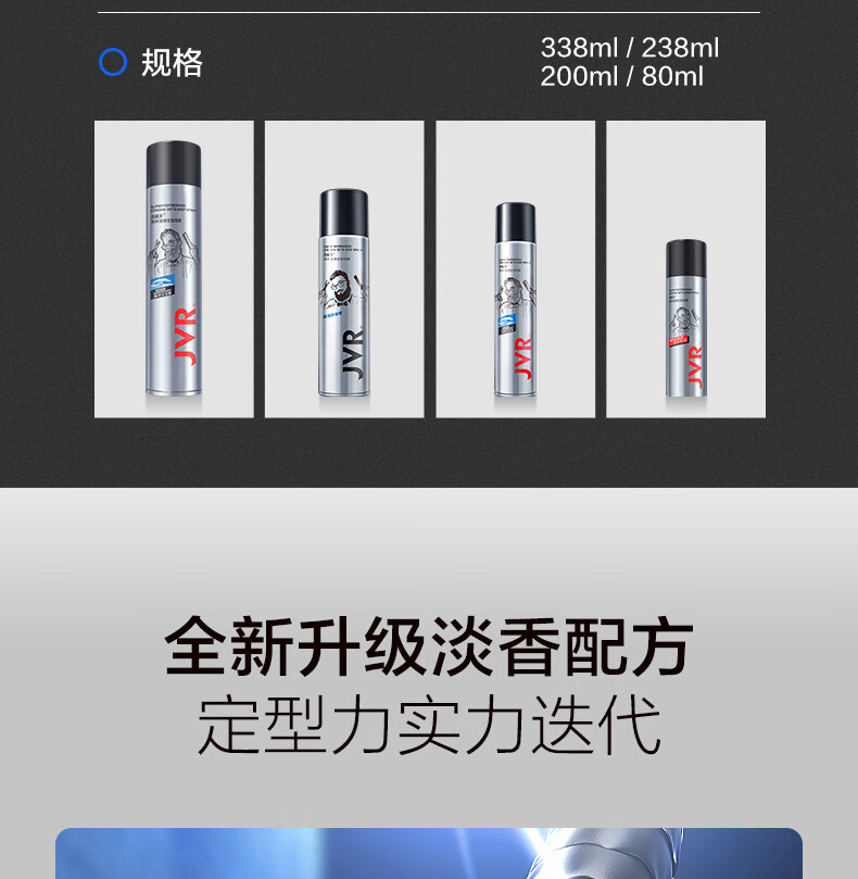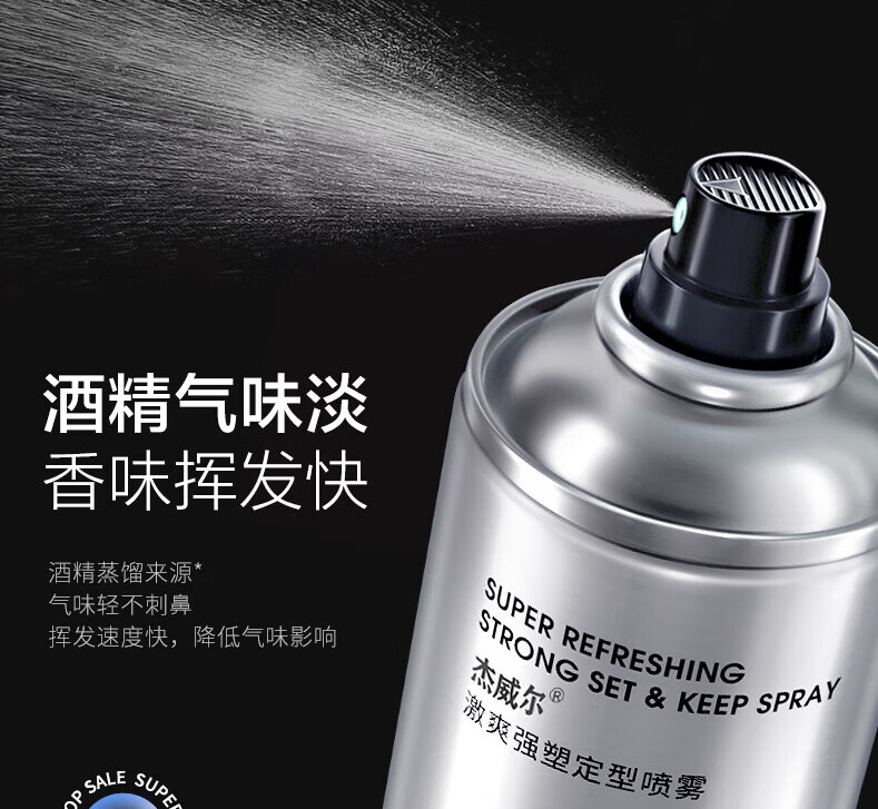 杰威尔激爽强塑定型喷雾男士发胶干胶头发造型速干蓬松持久338ml*2+80ml
